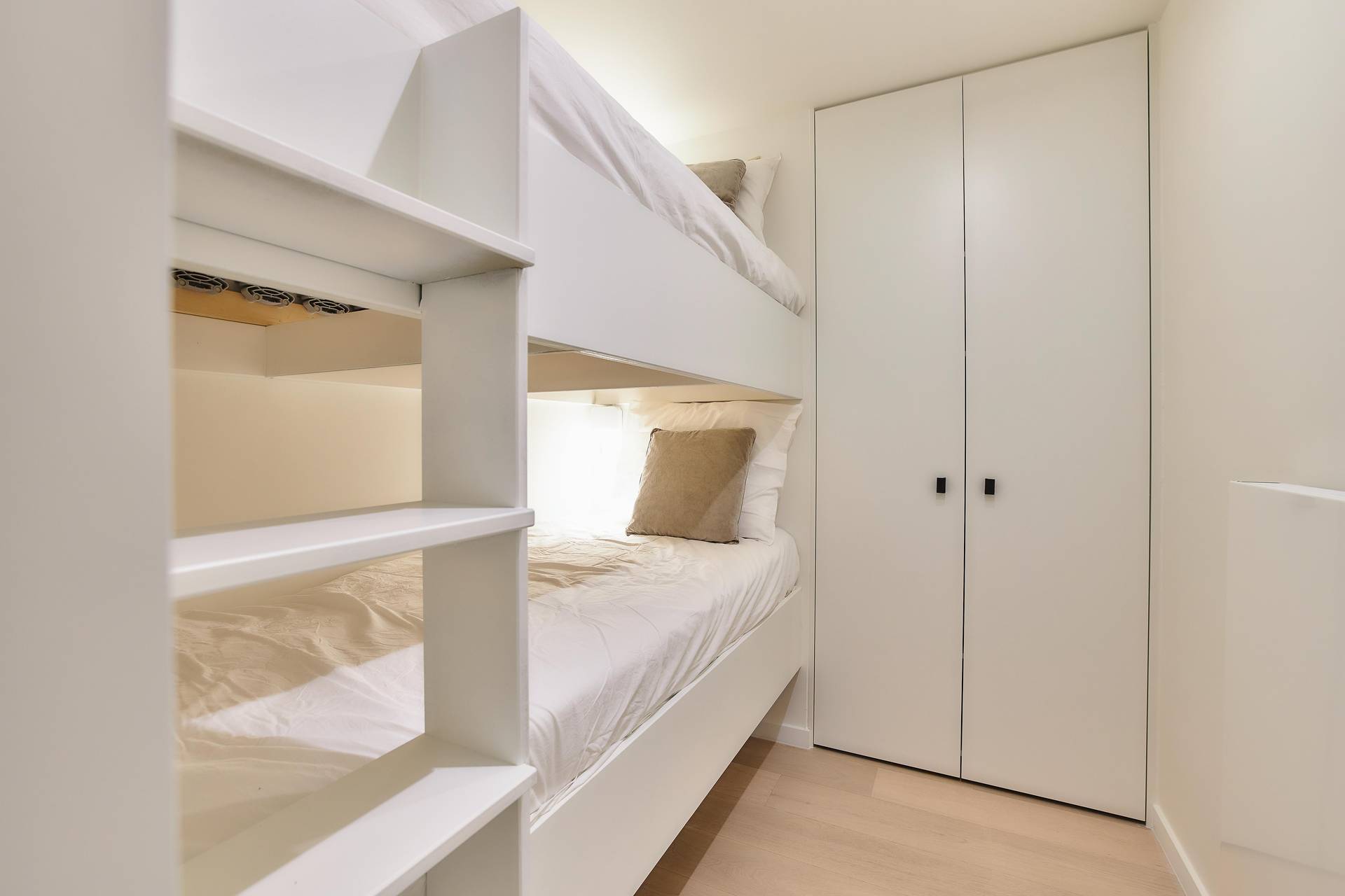 Nachthal. Er zijn 3 slaapkamers, waarvan 2 volwaardige slaapkamers achteraan die uitgeven op een terras. Er is 1 luxueus ingerichte badkamer. 1 Douchekamer. De 3e slaapkamer is een kamer met een stapelbed.
