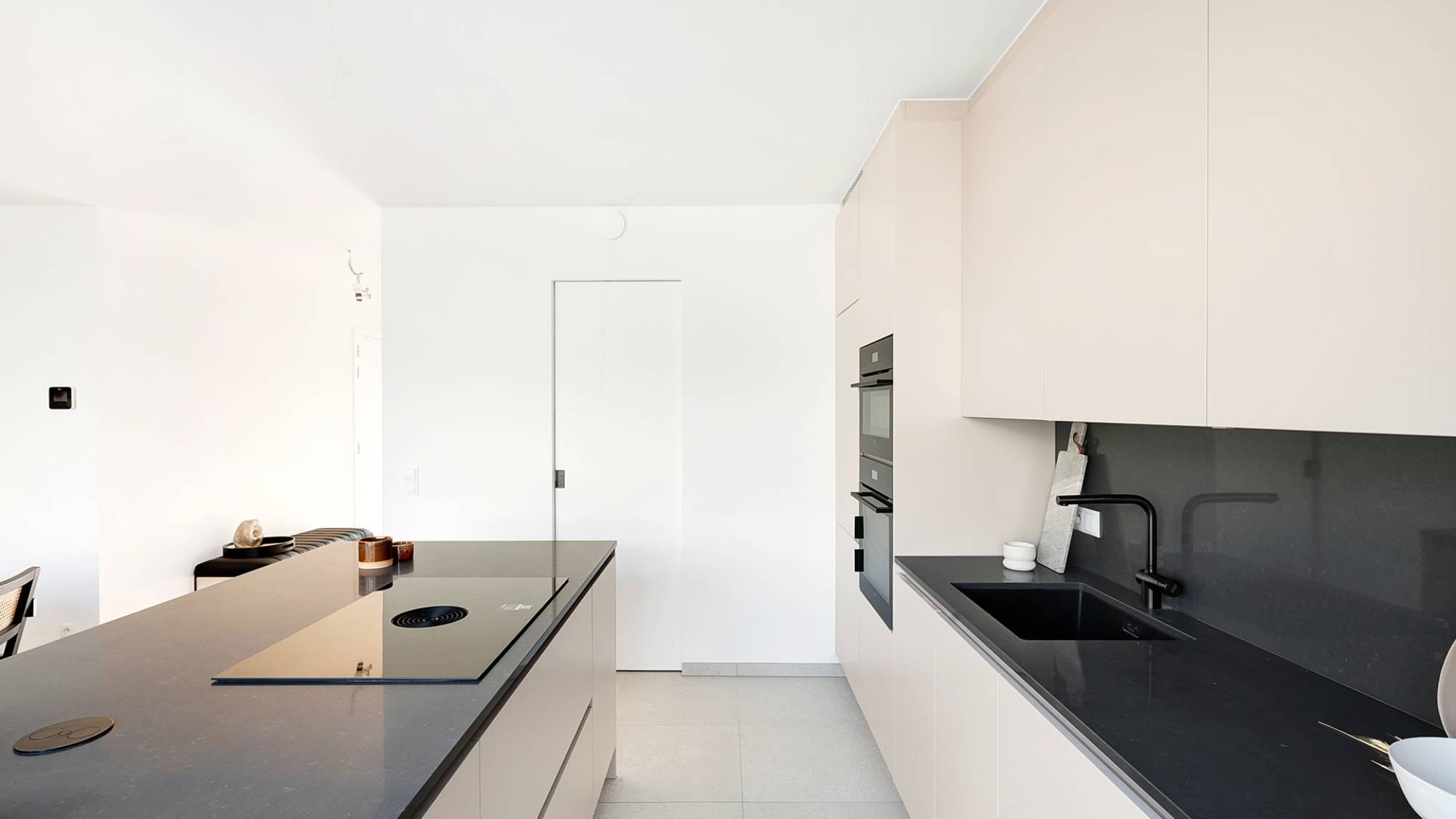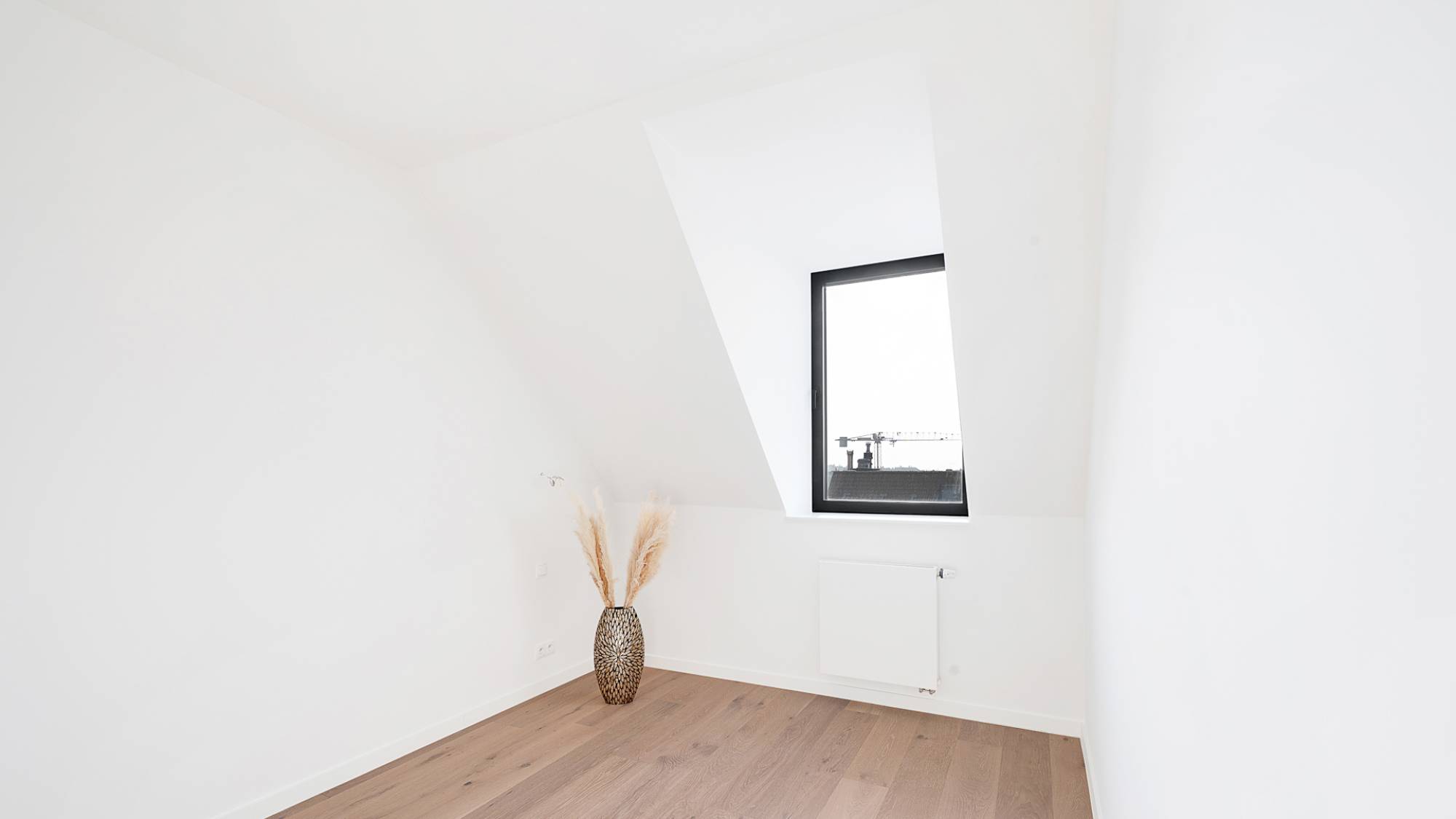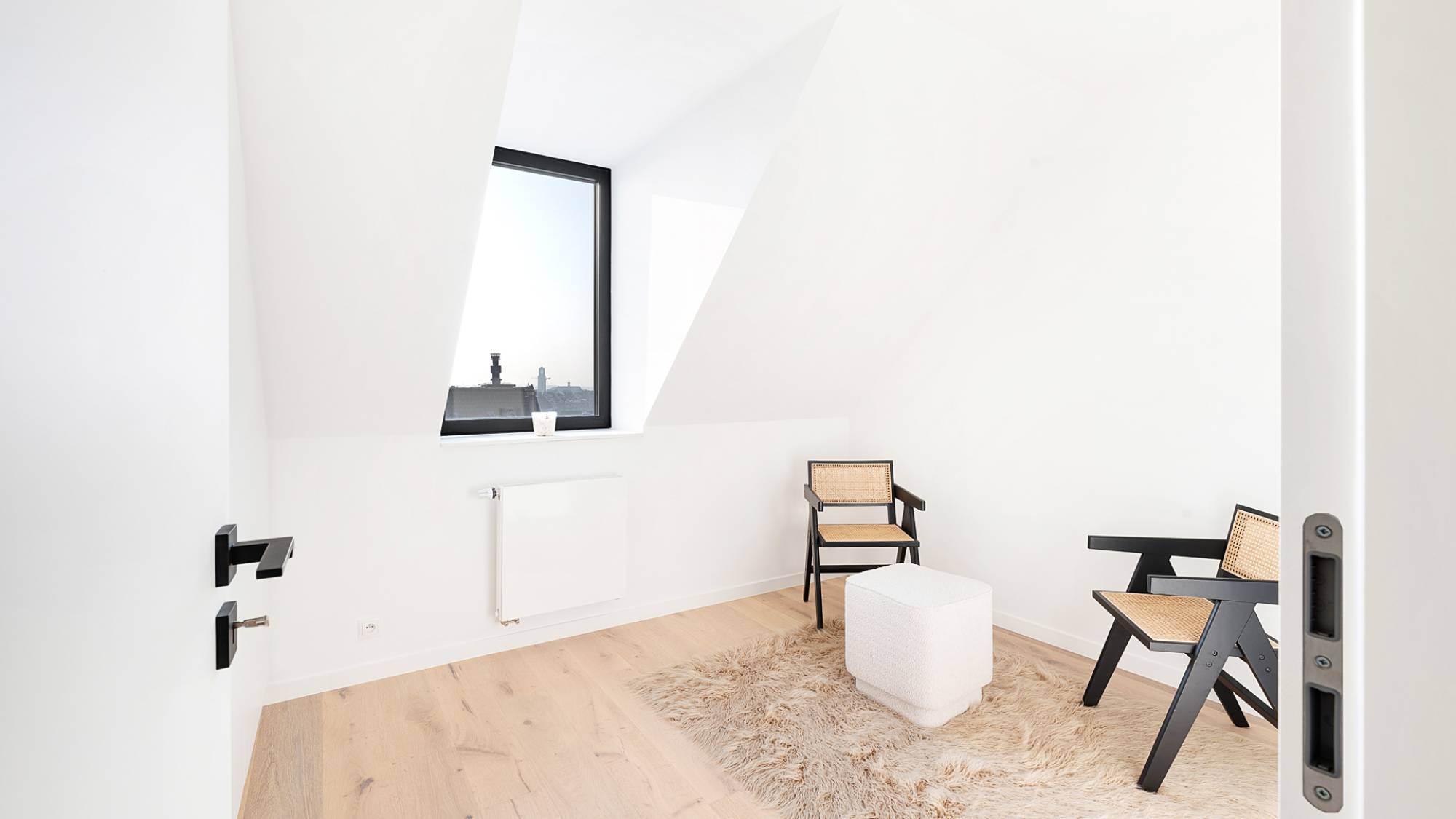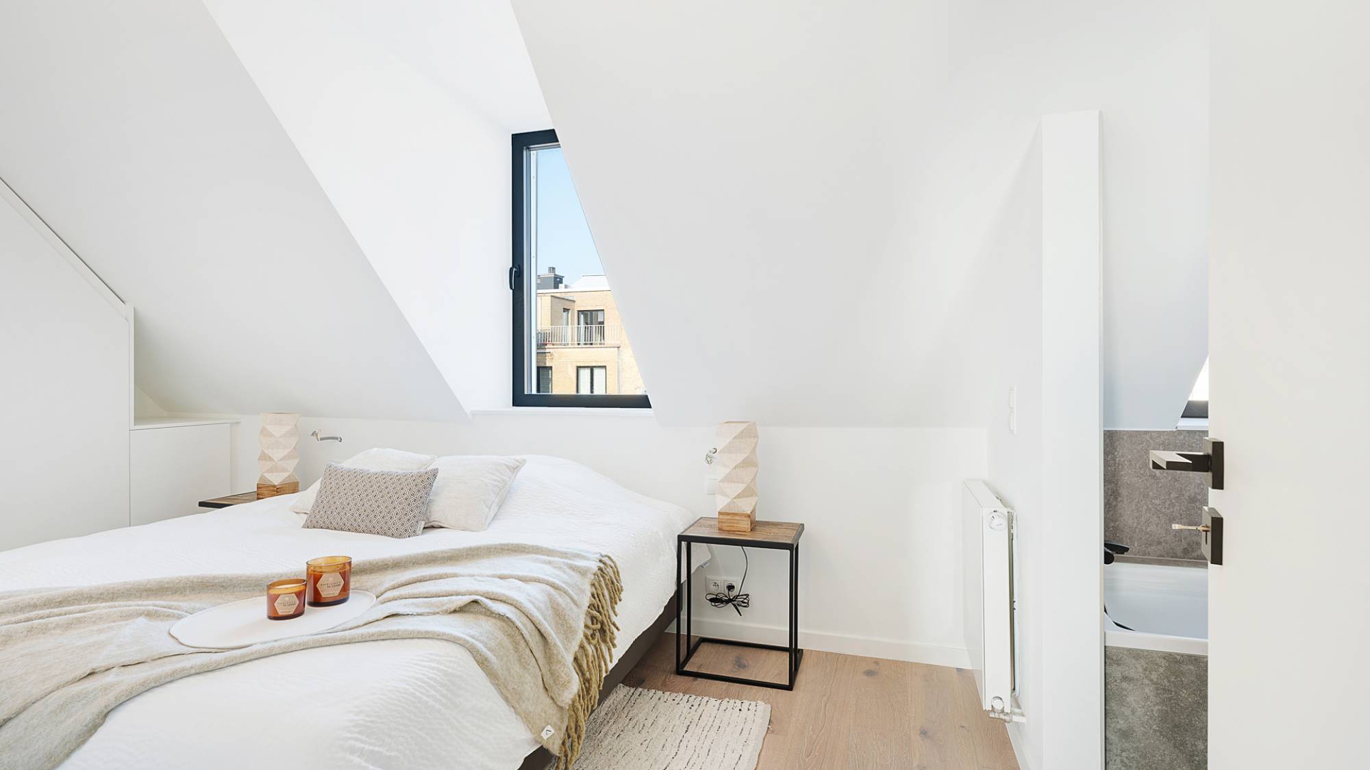Praktisch comfort staat hier centraal, met een aparte berging voorzien van aansluitingen voor wasmachine en droogkast. Op de verdieping wacht een luxueuze master bedroom, uitgerust met ingemaakte kasten en een verfijnde badkamer. Daarnaast zijn er twee stijlvolle slaapkamers, eveneens voorzien van maatwerk kasten, die een moderne douchekamer delen. Alle slaapkamers genieten van airconditioning voor optimaal comfort in elk seizoen. Het appartement is uitgerust met vloerverwarming en beschikt over een privatieve kelder.