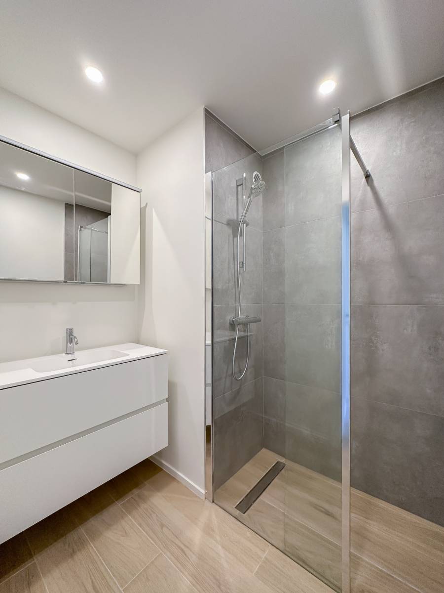 Er zijn 3 slaapkamers, waarvan 2 slaapkamers achteraan. Beide kamers beschikken over ingemaakte kasten. De 3e kamer is een kleinere kamer. Aparte douchekamer.