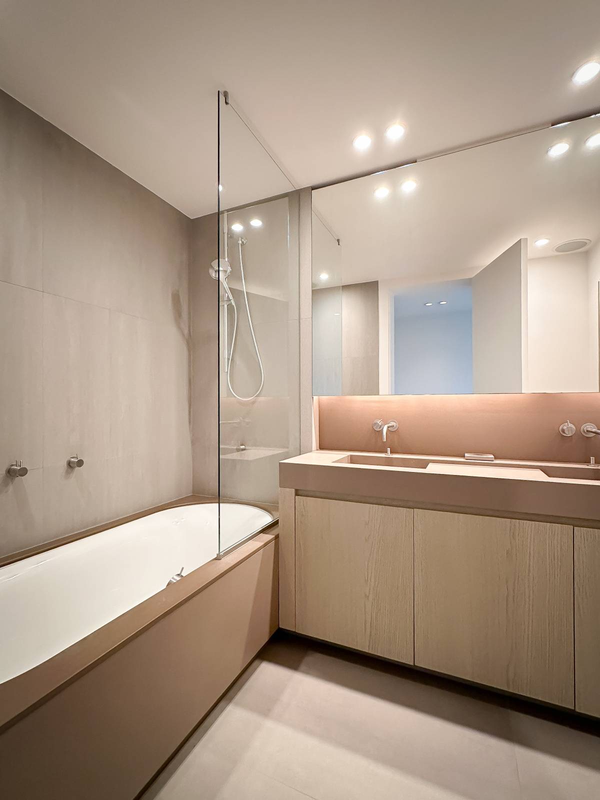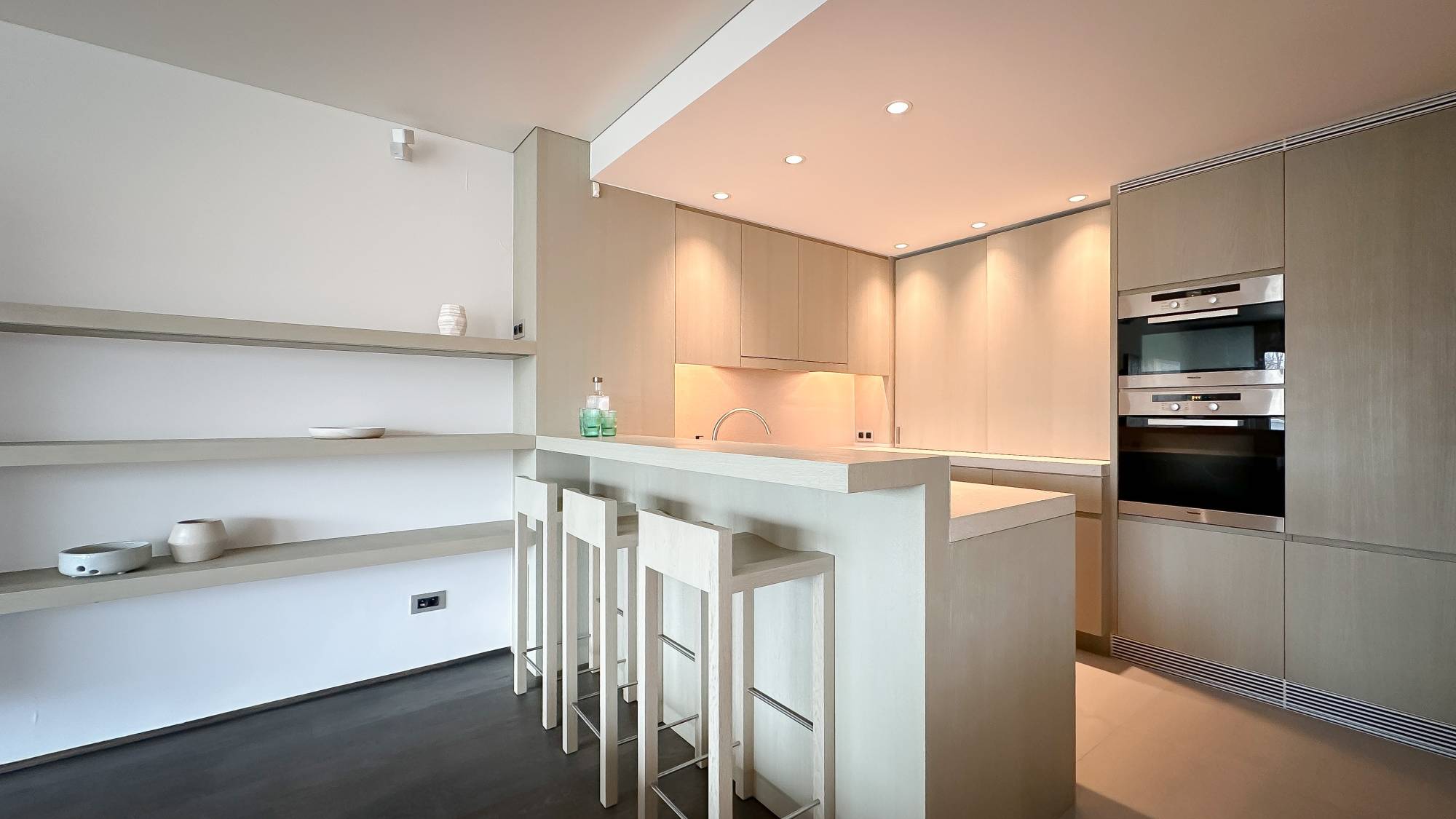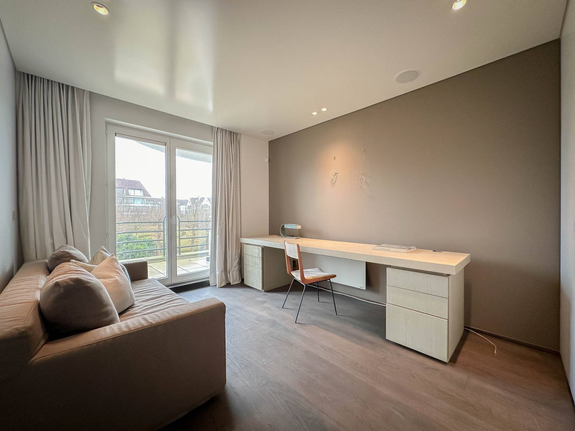 Samenstelling: Inkom met vestiaire en gastentoilet. Open keuken, voorzien van alle comfort, ruime woonkamer met toegang tot het Zuid gerichte terras, genietend van een mooi uitzicht op het groen en volledige privacy. Master bedroom met aparte badkamer met dubbele lavabo, ligbad en toilet. De 2e slaapkamer beschikt over een aansluitende douchekamer. De 3de slaapkamer is ingericht als bureau met zetelbed, deze slaapkamer geniet van toegang tot 2e terrasje.