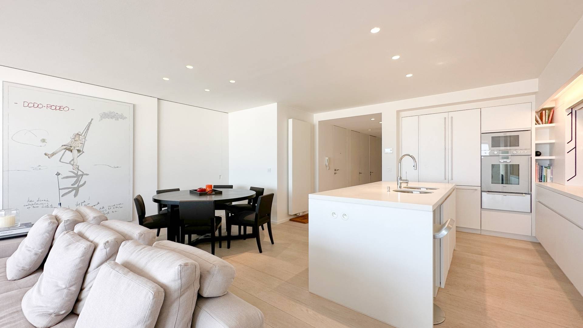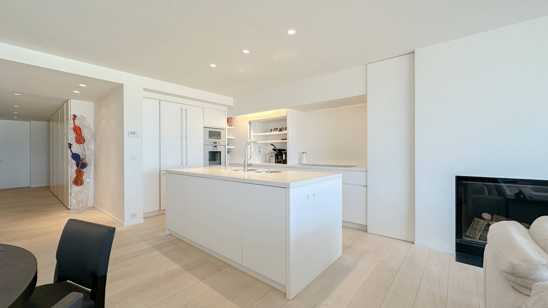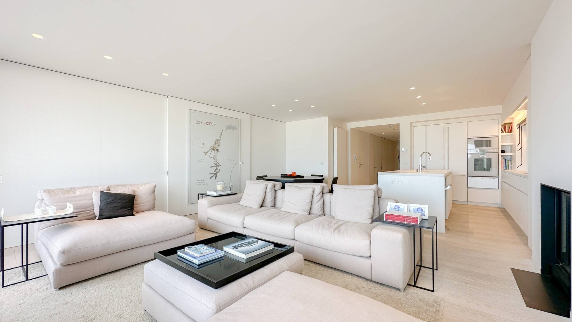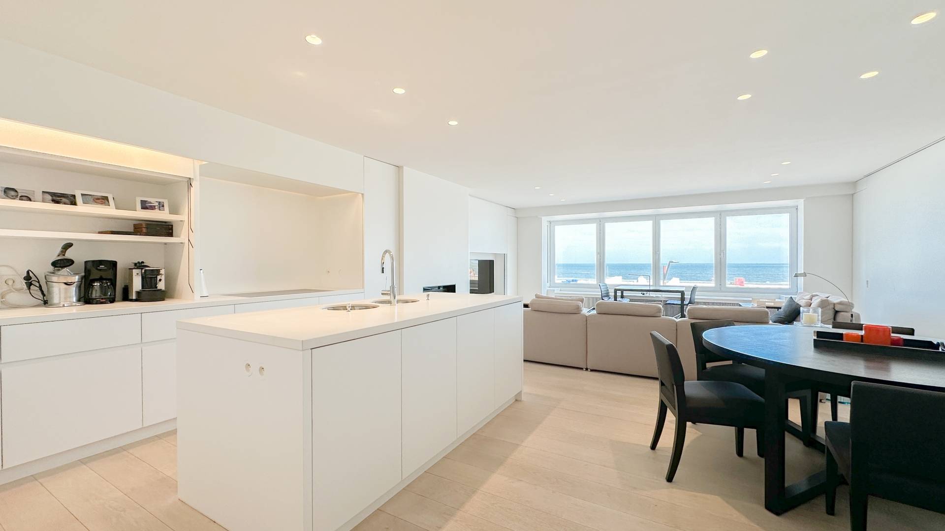 Samenstelling: Inkomhal met gastentoilet en vestiaire. Ruime woonkamer met open haard, en open zicht op zee en over het Rubensplein. Open keuken met keukeneiland en gezellig ontbijthoekje. Eetkamer. Berging voor wasmachine en droogkast.