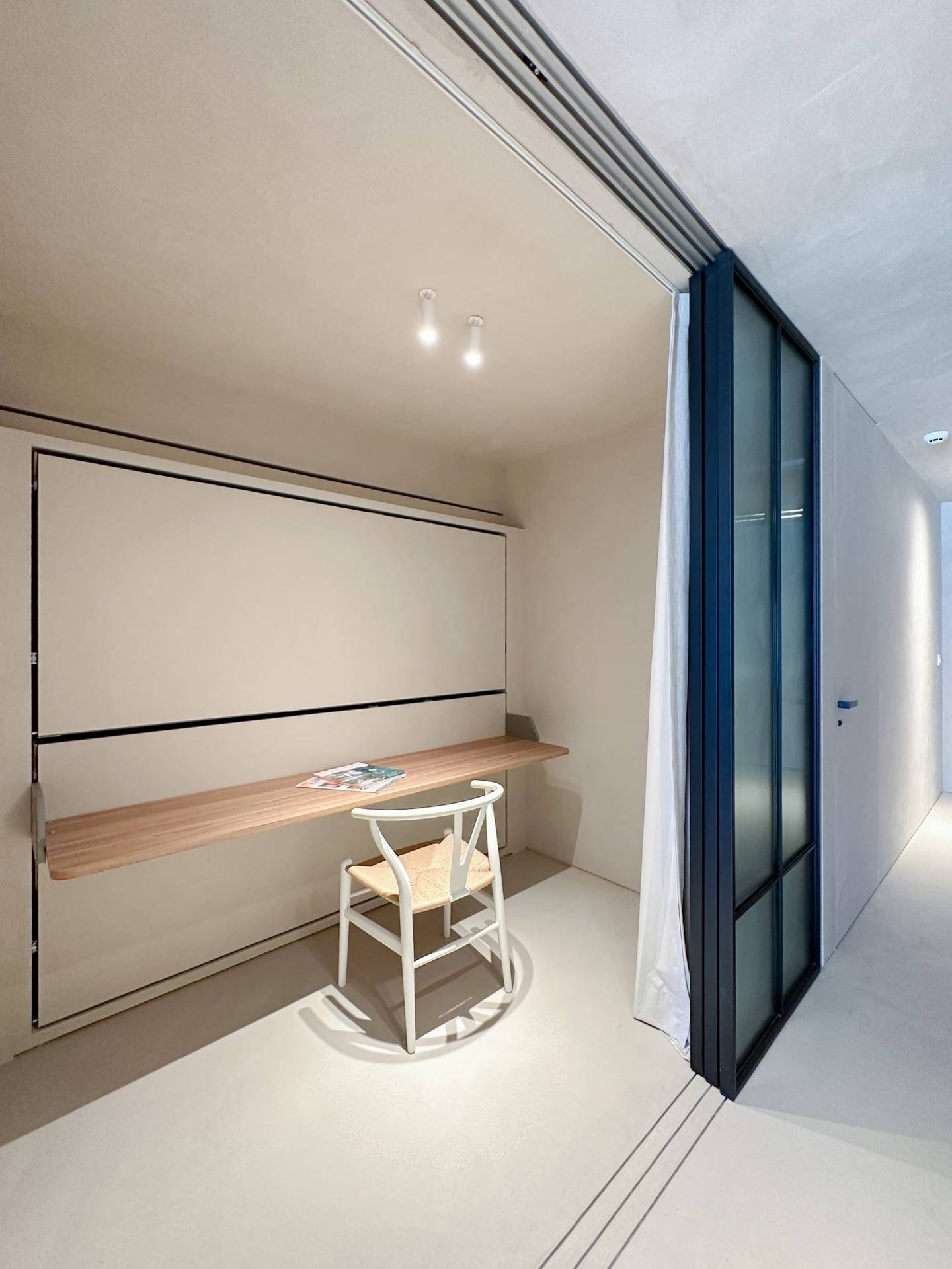 De 3e kamer is een kleinere kamer, met een uitklapbaar stapelbed, die omgetoverd kan worden tot een bureelruimte. Volledig afsluitbaar.