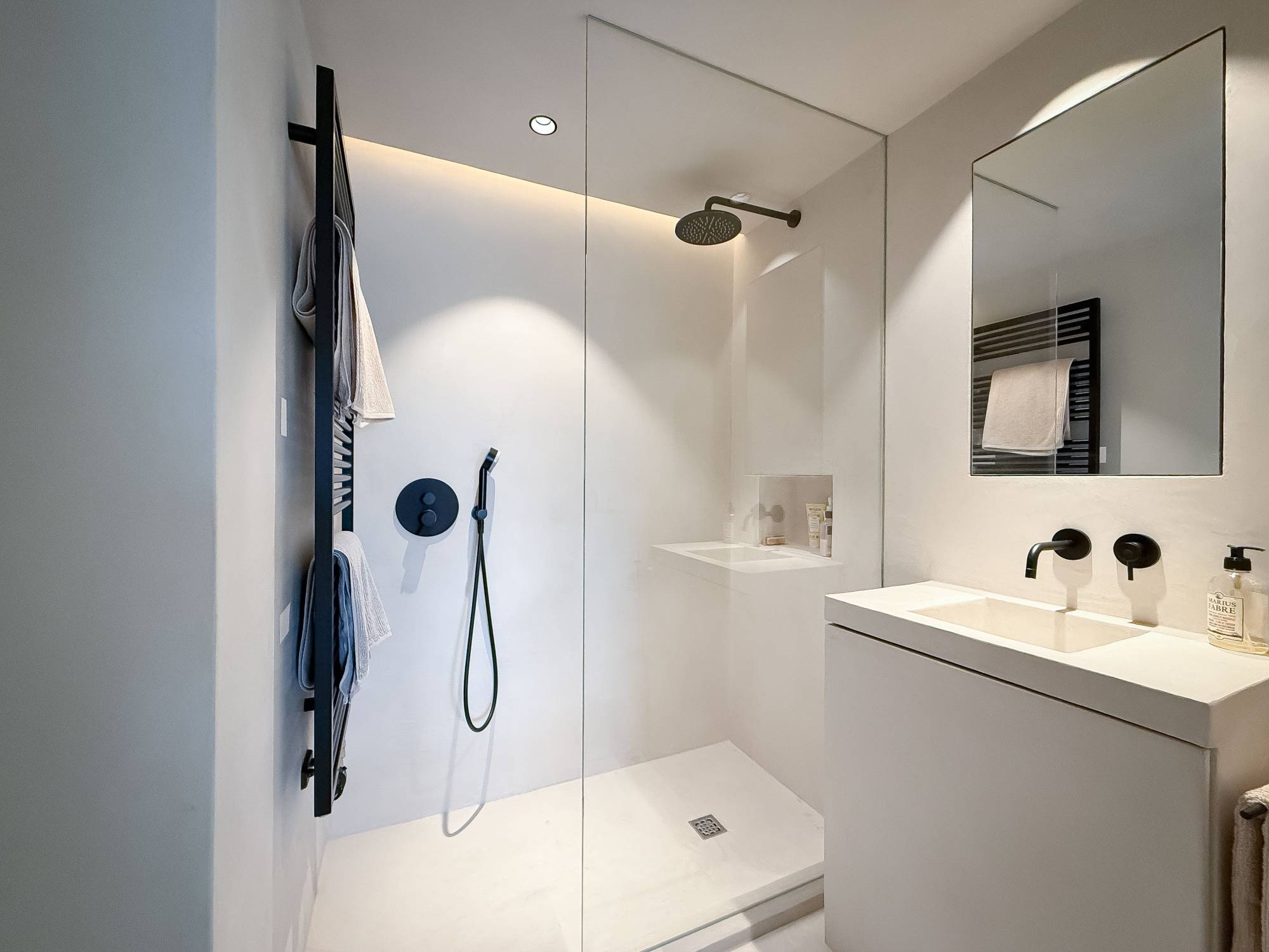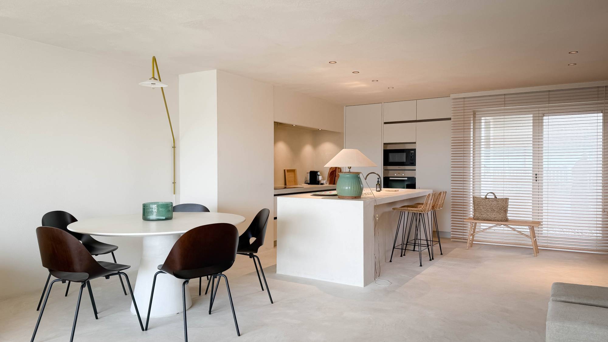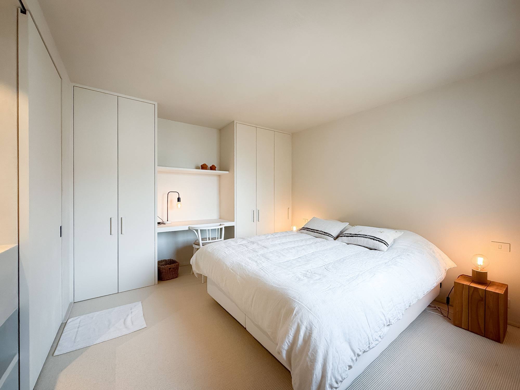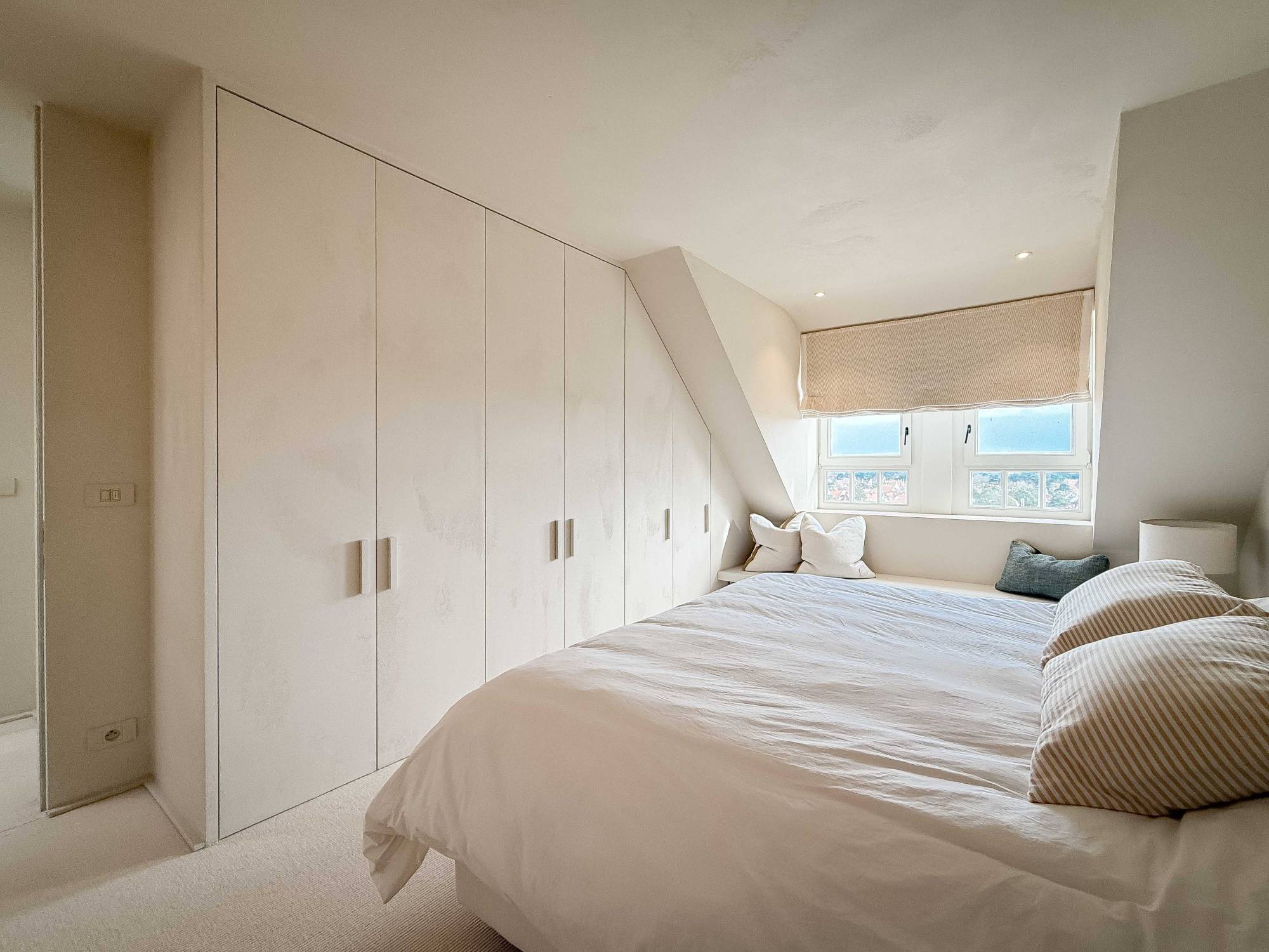 In hartje Zoute, omringd door exclusieve winkels, bevindt zich dit luxueuze en minimalistisch ingerichte duplexappartement. Afgewerkt met hoogwaardige materialen, straalt het een tijdloze elegantie uit. Renovatie door "Nathalie Deboel Interior Design". De grote raampartijen laten overvloedig daglicht binnen en bieden een adembenemend uitzicht op de prachtige villa’s van het Zoute.