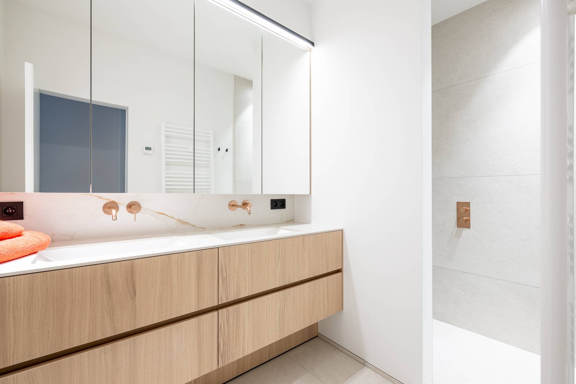 Het appartement telt 3 volwaardige slaapkamers, elk met een doordacht design en ingemaakte kasten. De master bedroom beschikt over een private badkamer, terwijl de overige twee kamers een stijlvolle douchekamer delen.