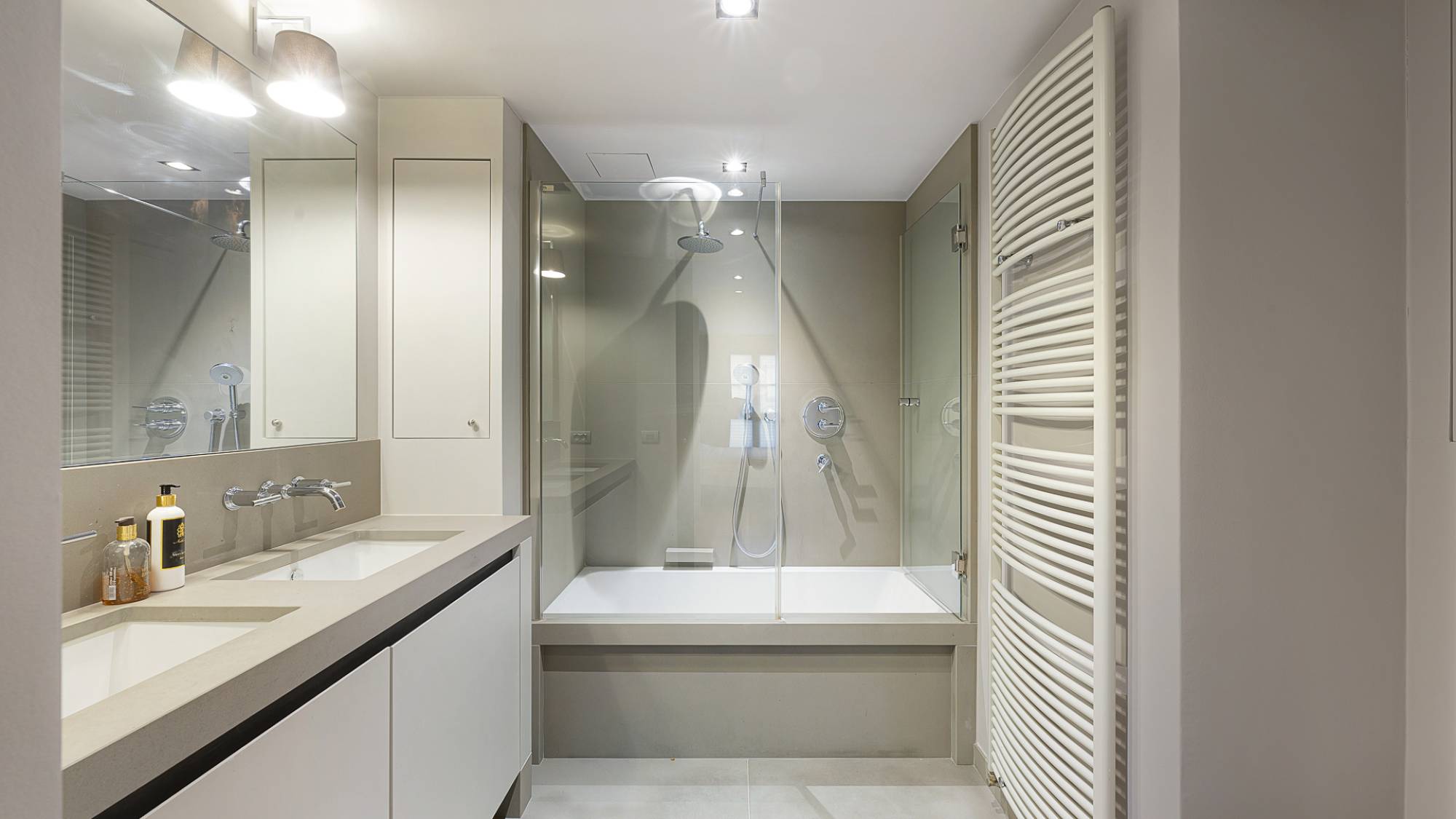 De masterbedroom beschikt over een eigen badkamer, wat een gevoel van luxe en discretie biedt. Daarnaast zijn er twee extra slaapkamers met een afzonderlijke douchekamer, ideaal ingericht voor familie, logees of extra comfort.