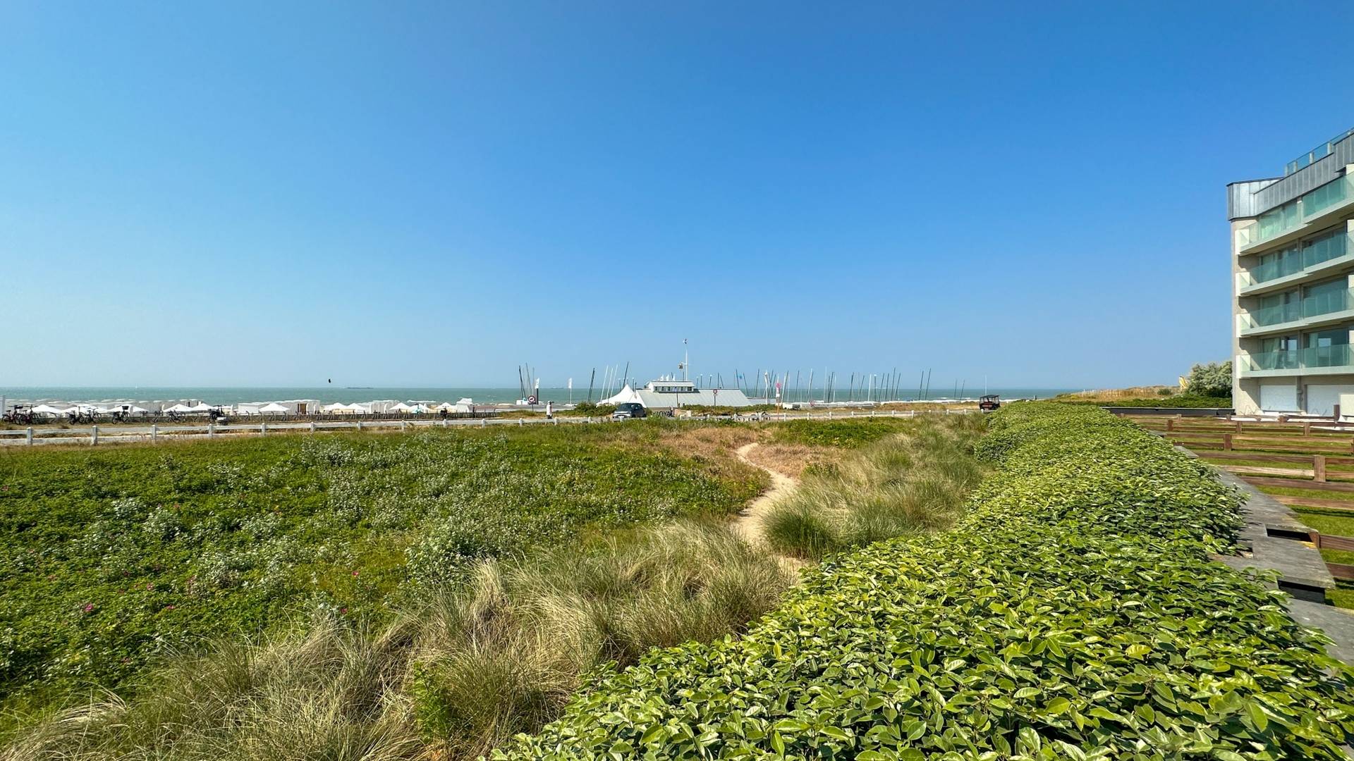 Samenstelling: Inkomhal met gastentoilet en vestiaire. Aangename woonkamer met grote raampartijen die uitgeeft op een mooi terras met tuin. Prachtig open zicht op zee en op de zeilclub RBSC. Cosy eethoek. Open keuken met keukeneiland en gezellige ontbijthoek.