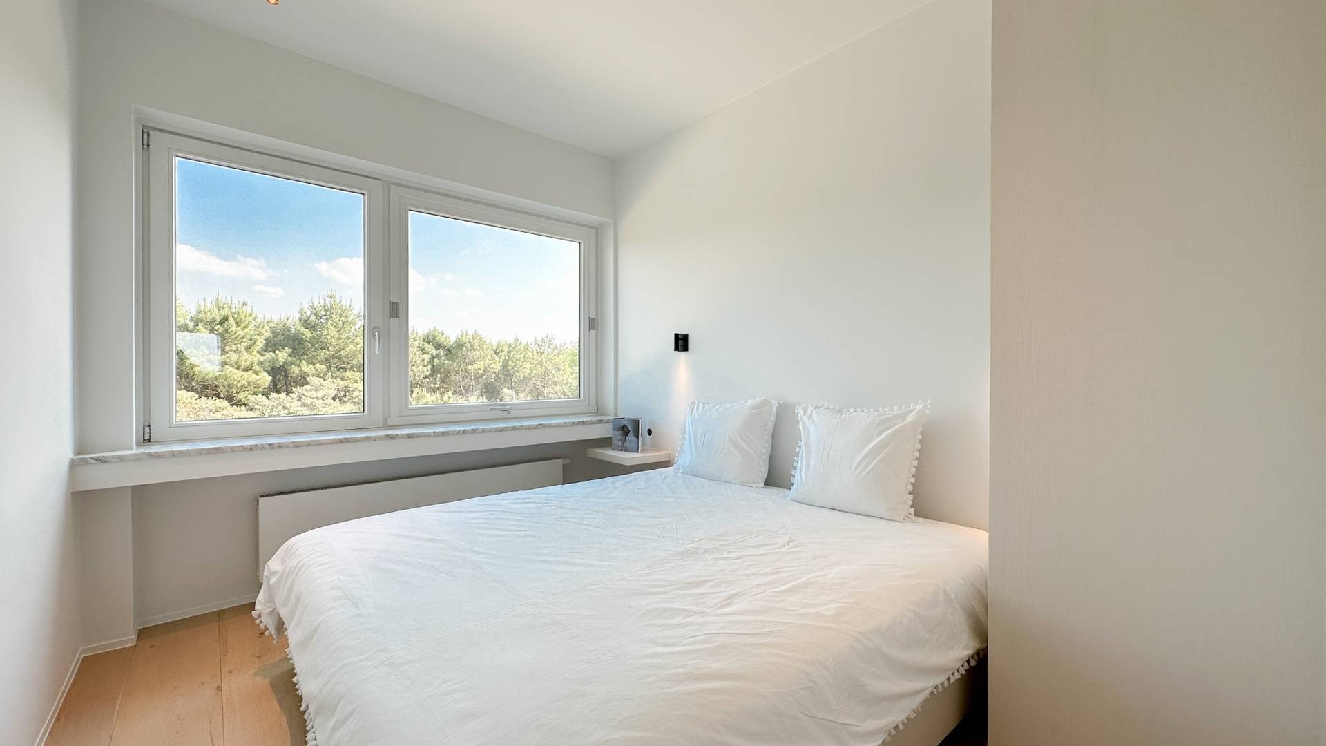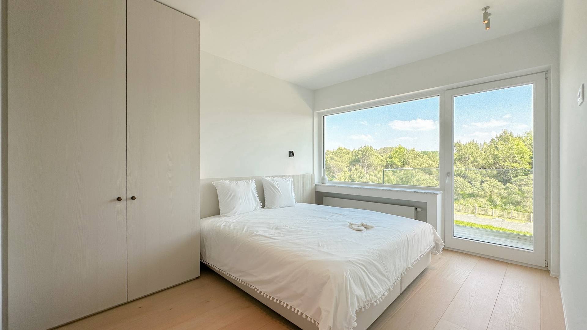 Er zijn 3 volwaardige slaapkamers, waarvan 2 die zich achteraan bevinden. De master bedroom, uitgevend op een zonnig terras, geniet van een prachtig open zicht op de Zwinbosjes en beschikt over een ensuite douchekamer. Afzonderlijke douchekamer voor de 2 andere slaapkamers. Tal van ingemaakte kasten.