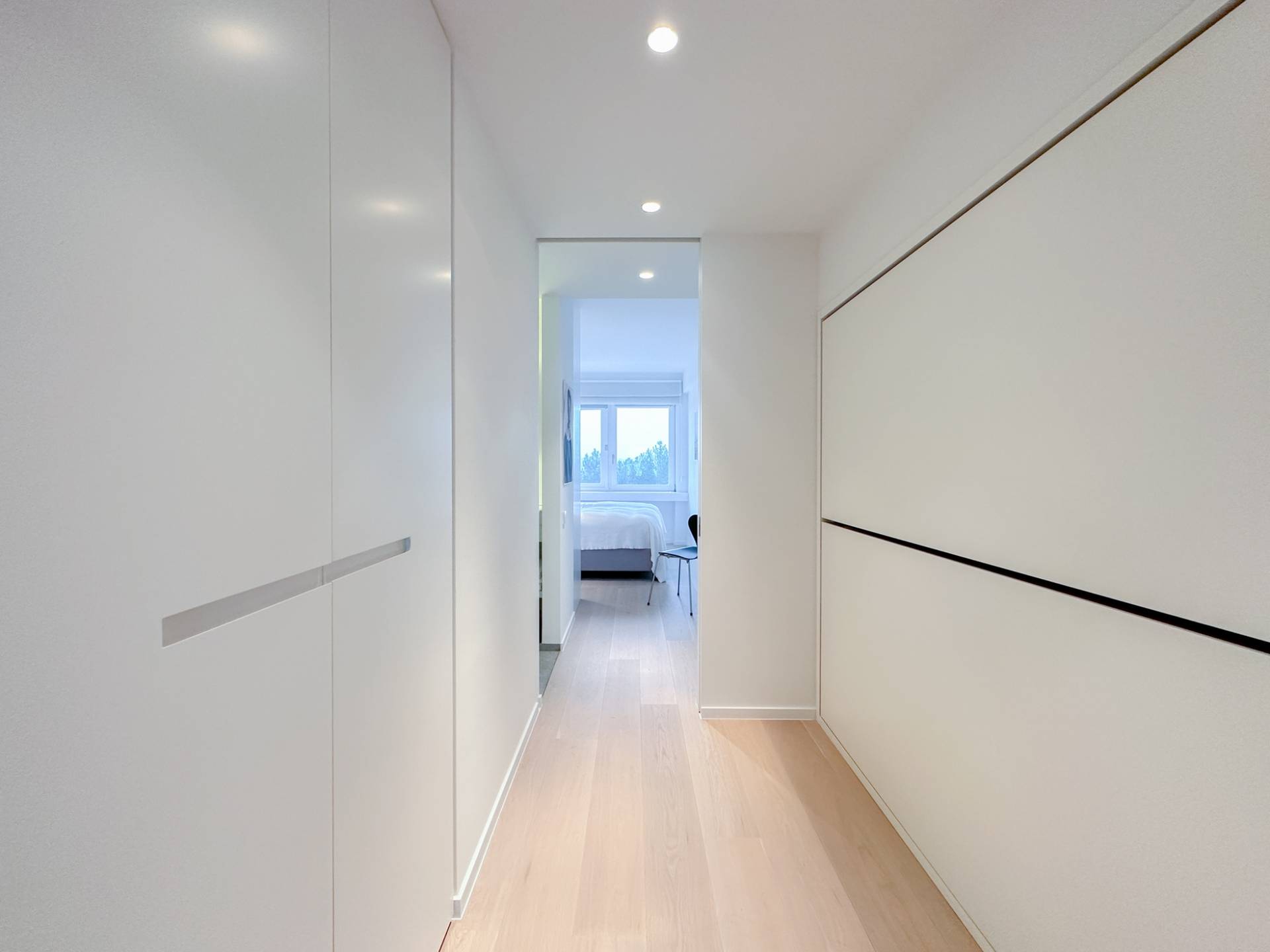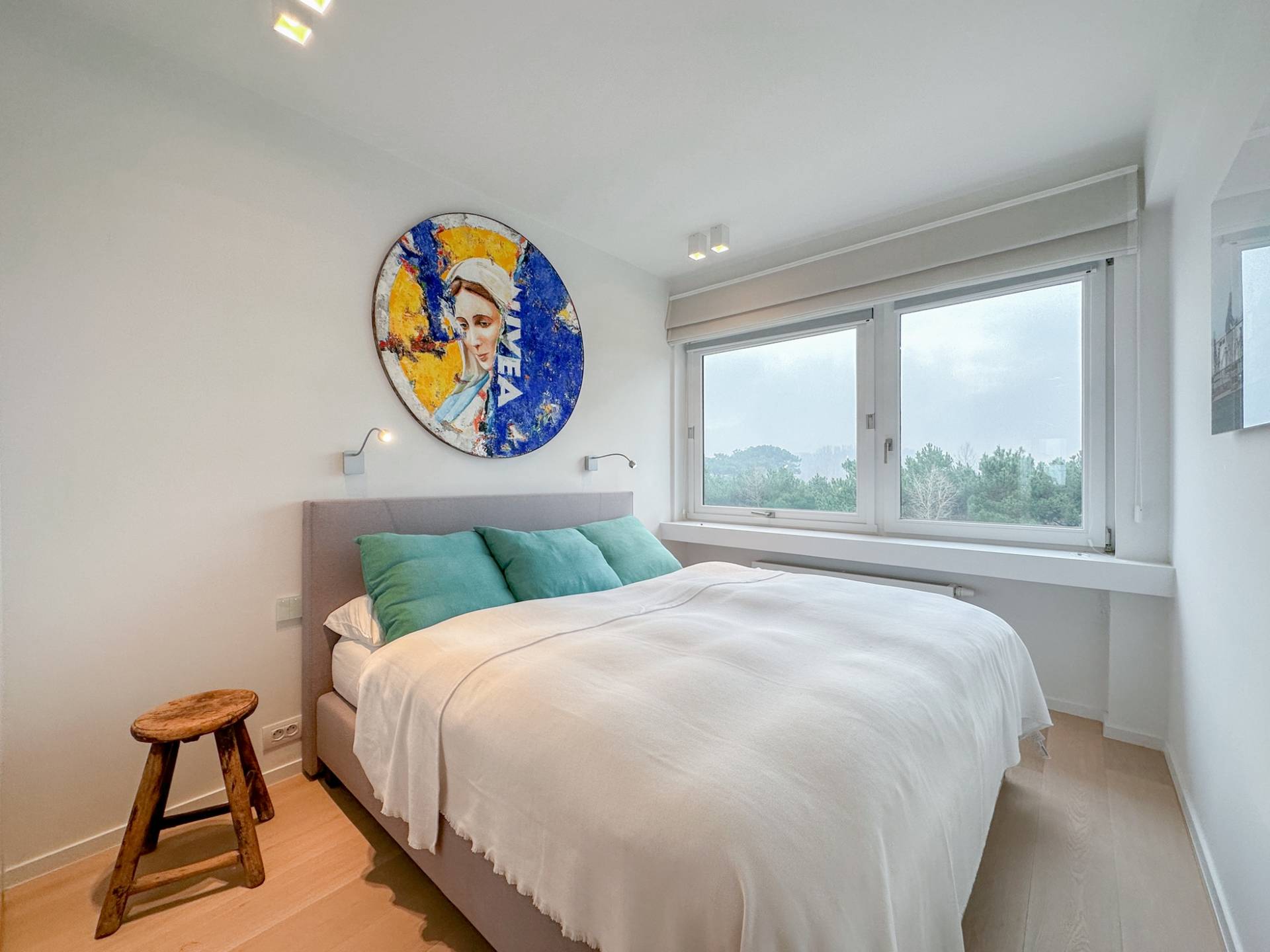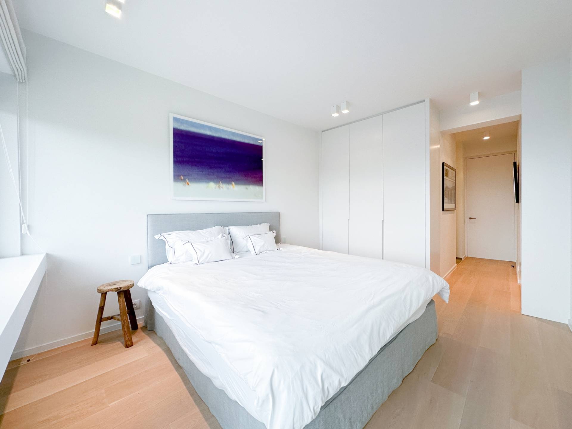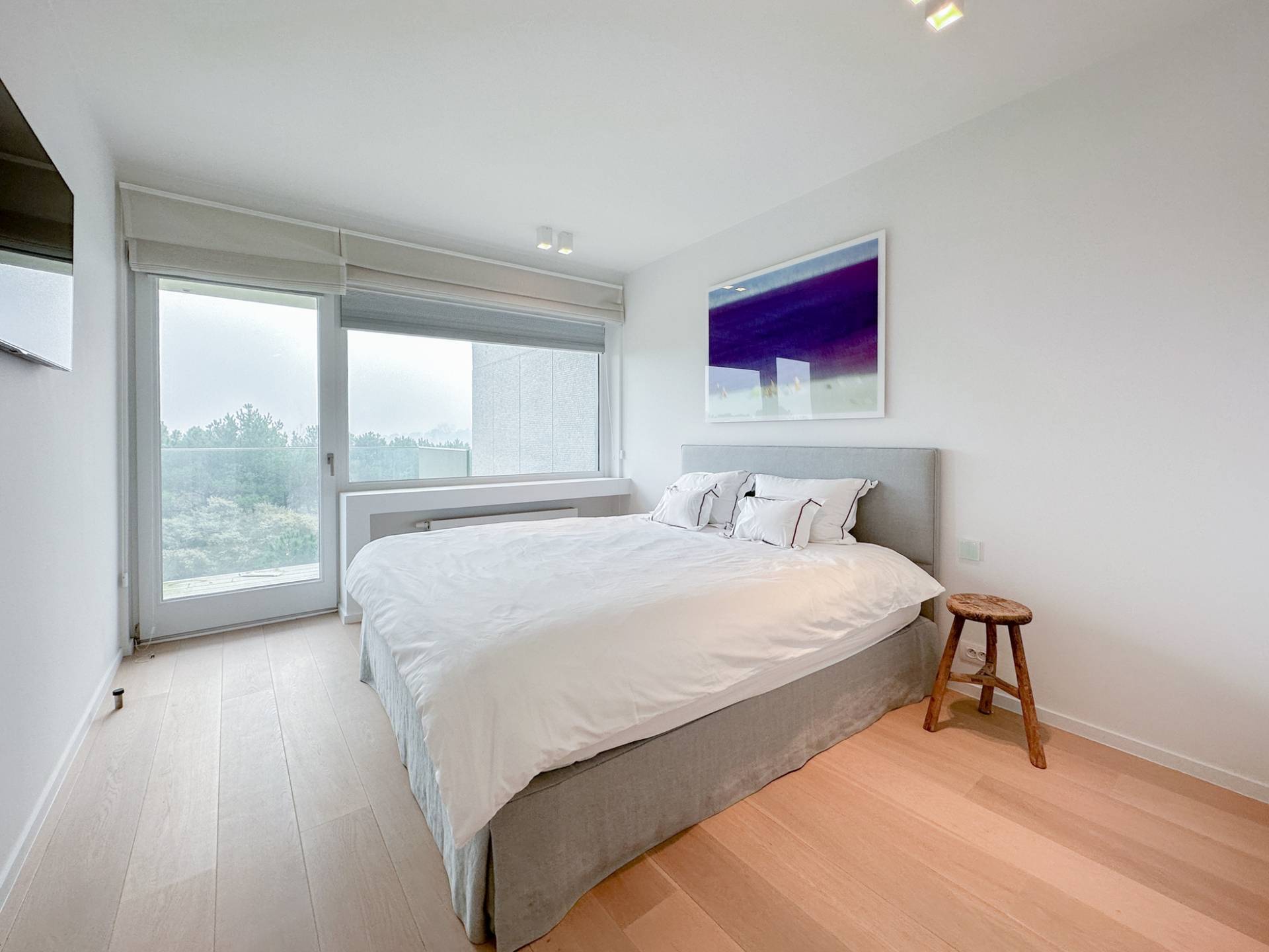 De hoofdslaapkamer beschikt over ingemaakte kasten en een luxueus ingerichte badkamer in Carrara marmer (ligbad-dubbele lavabo-toilet). 2e Terras, zongericht, met mooi zicht op de Zwinbosjes. De 2e slaapkamer geniet eveneens van het mooie zicht, beschikt over ingemaakte kasten en een douchekamer in natuursteen. De 3e kamer is een slaaphoek met een opklapbaar stapelbed.