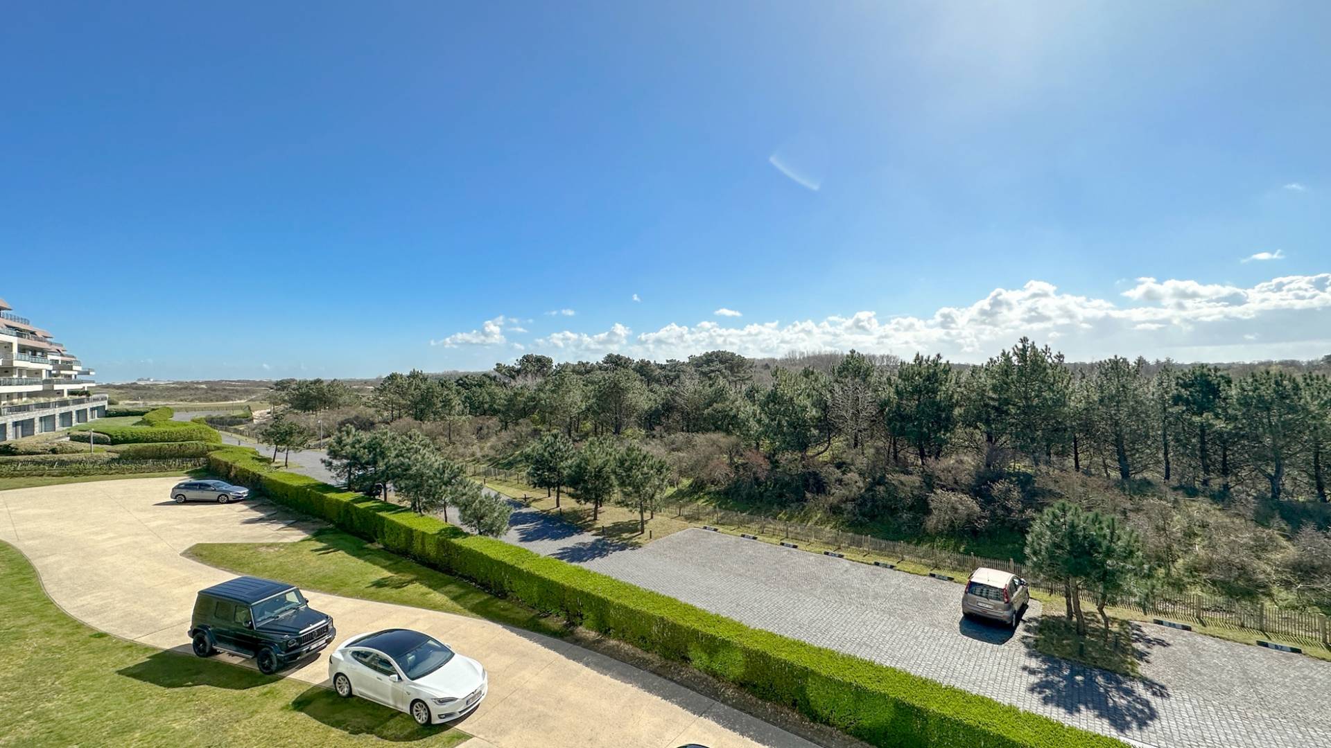 Het appartement bevindt zich op de 2e verdieping, en geniet van een prachtig FRONTAAL ZEEZICHT, alsook de kamers achteraan bieden een fenomenaal mooi zicht op de ZWINBOSJES.
