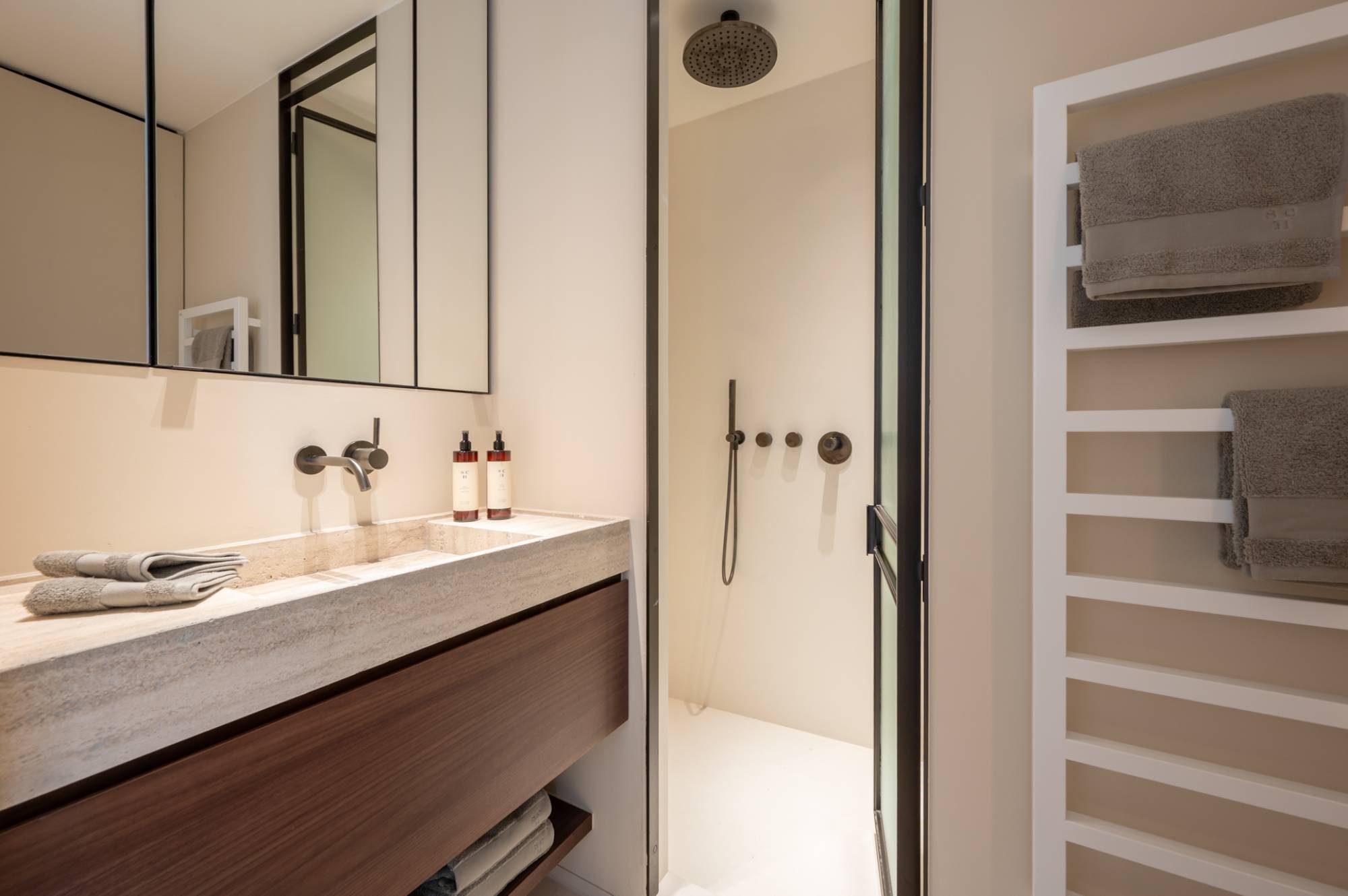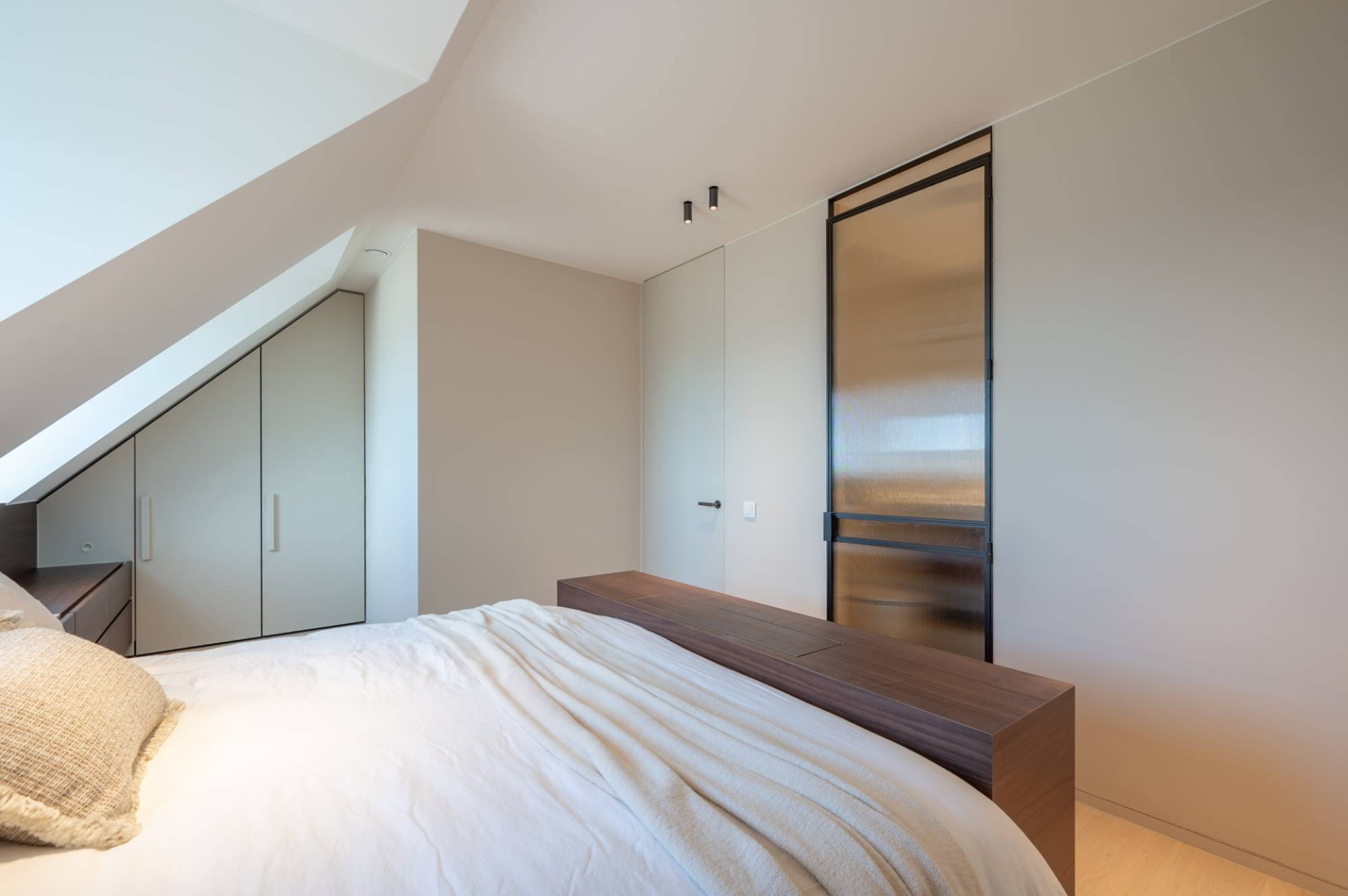 De masterbedroom beschikt over een privébadkamer, terwijl de tweede en derde slaapkamer een gedeelde badkamer hebben. Natuurstenen accenten, ingetogen maatwerk en de subtiele balans tussen hedendaags en tijdloos design maken van dit penthouse een woonervaring van uitzonderlijke kwaliteit.