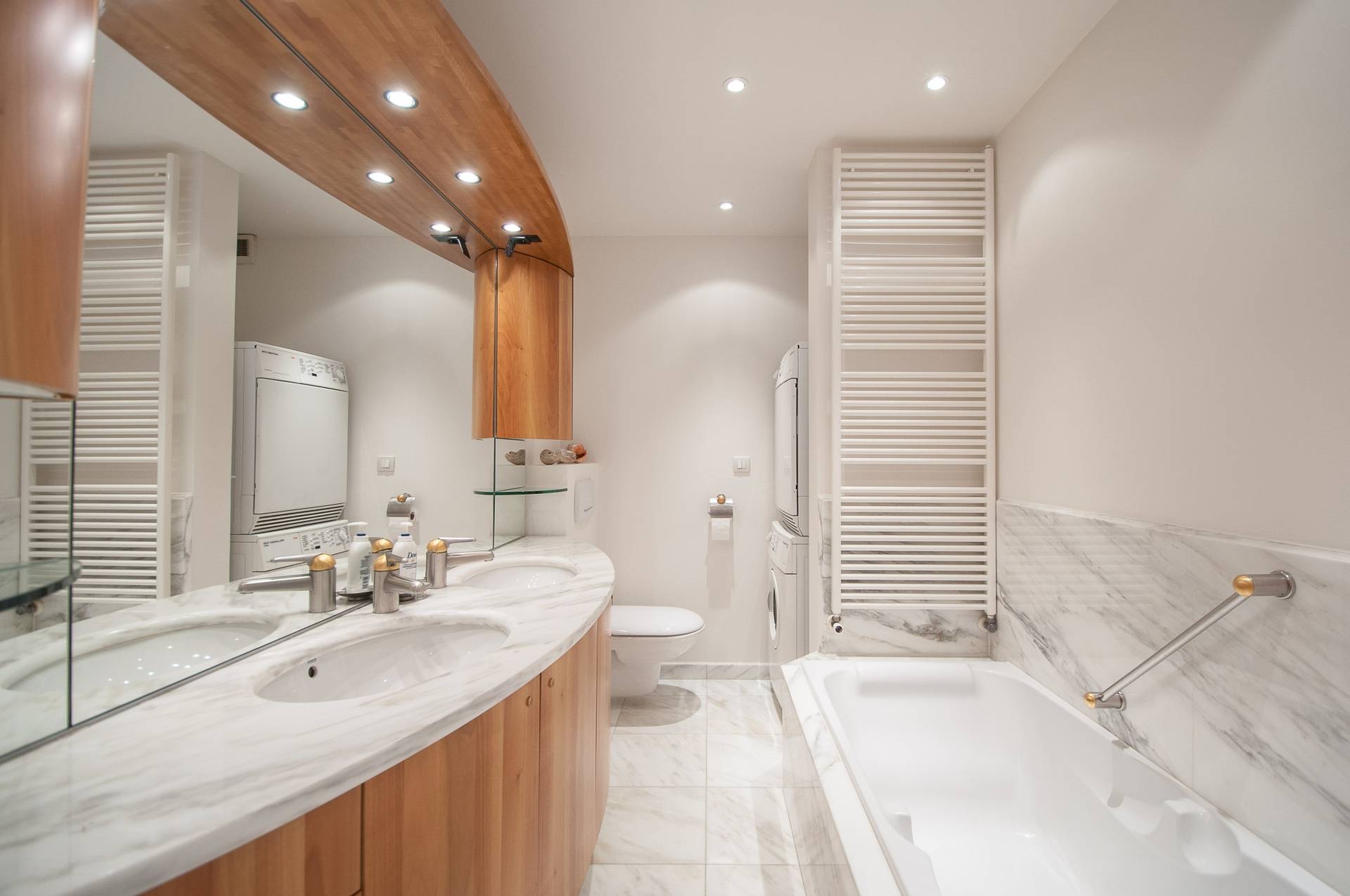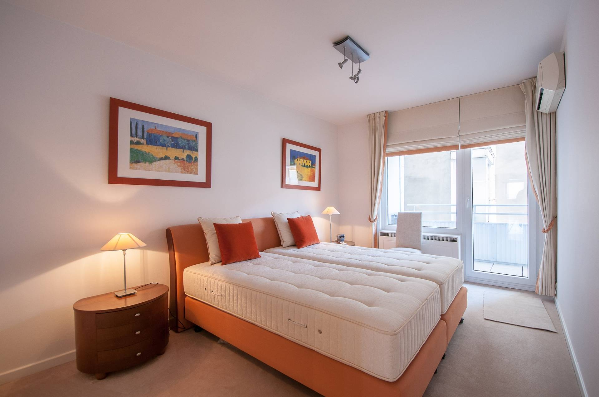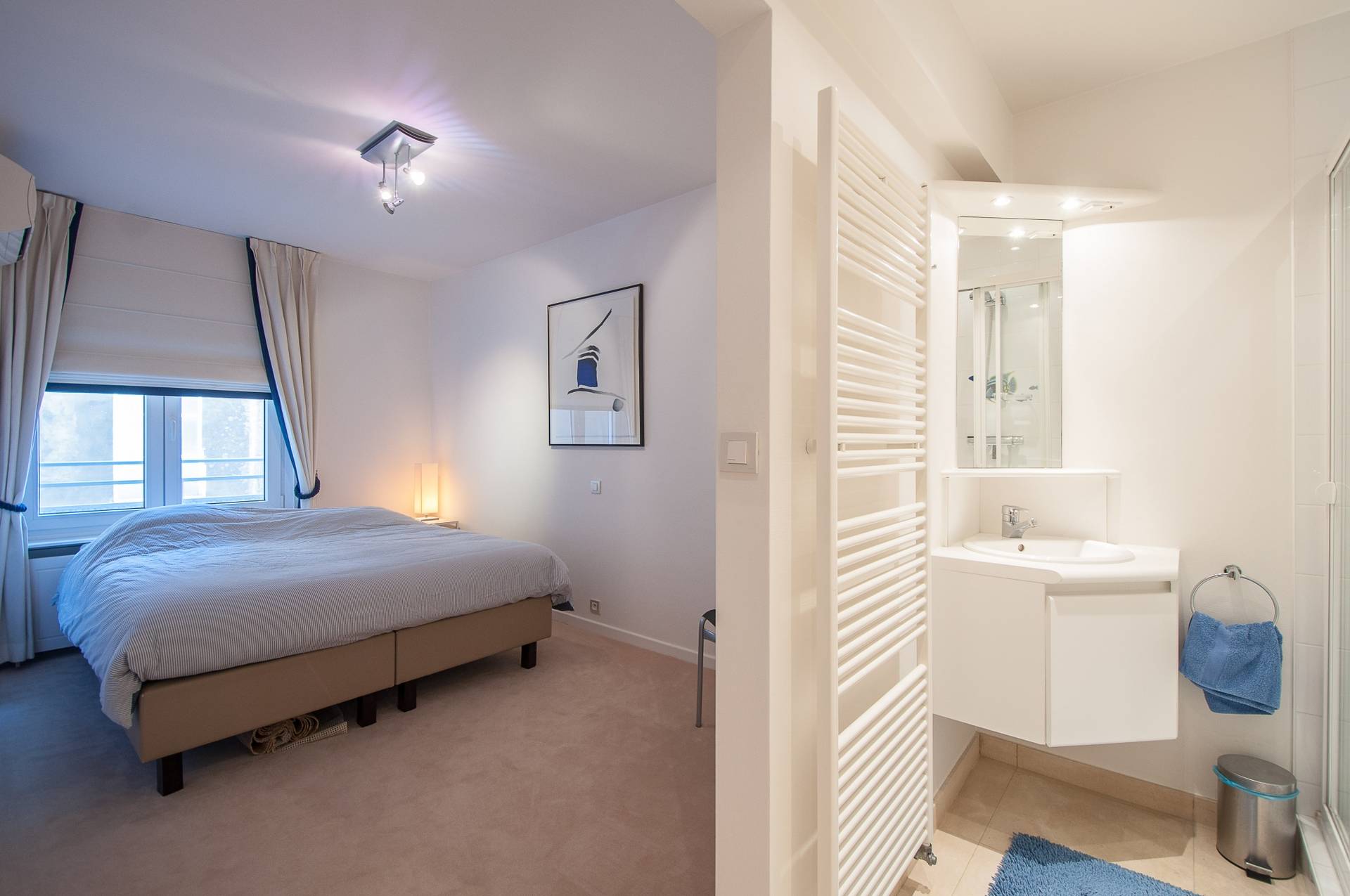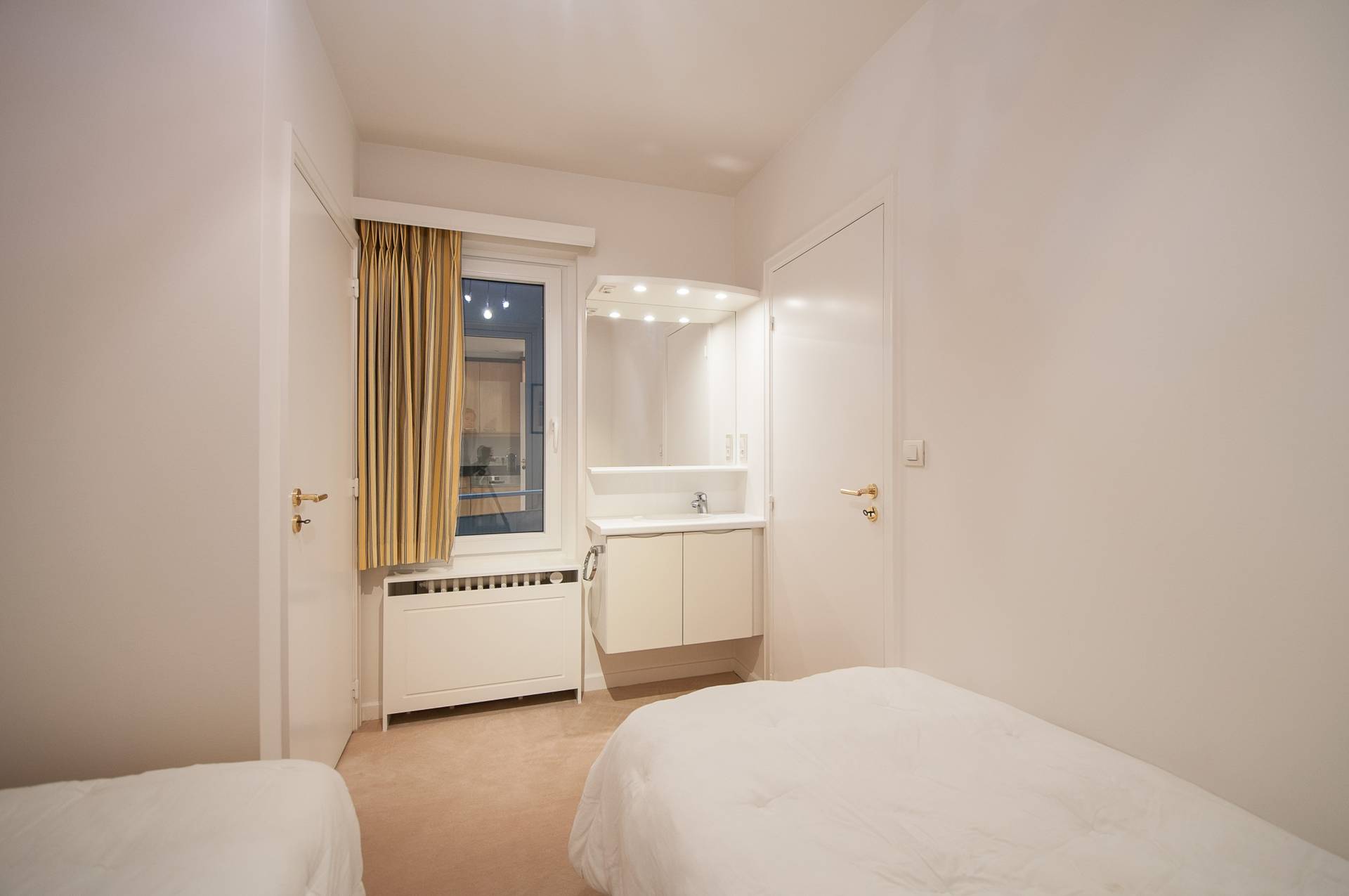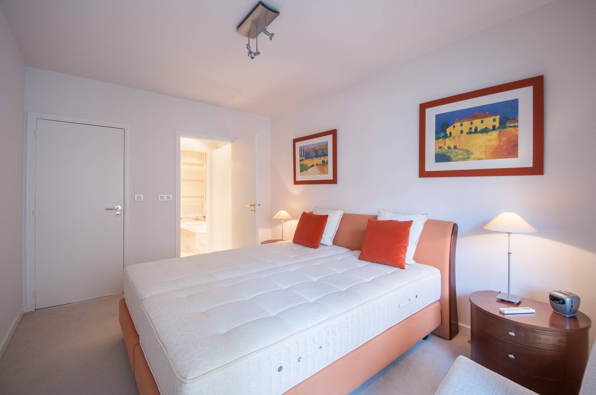 Er zijn 3 volwaardige slaapkamers. Master bedroom met dressing en complete badkamer, voorzien van dubbele lavabo, ligbad en toilet. Ruimte voor wasmachine en droogkast. De 2e kamer beschikt over een eigen douchekamer. 3e slaapkamer met lavabomeubel en ingemaakte kasten.