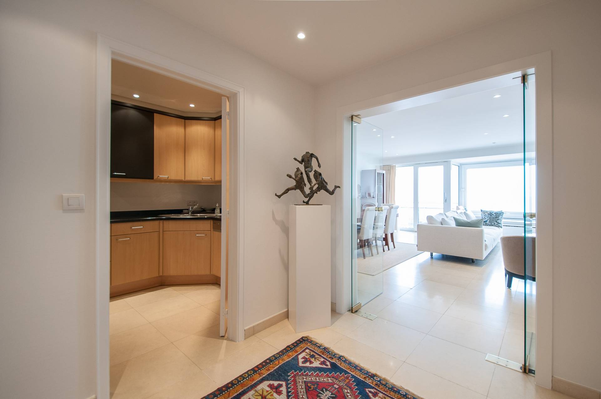 Samenstelling: Inkomhall met gastentoilet en vestiaire. Zeer aangename woonruimte die uitgeeft op een mooi terras, en genietend van frontaal zeezicht. Eethoek. Afzonderlijke keuken, voorzien van alle hedendaagse comfort.