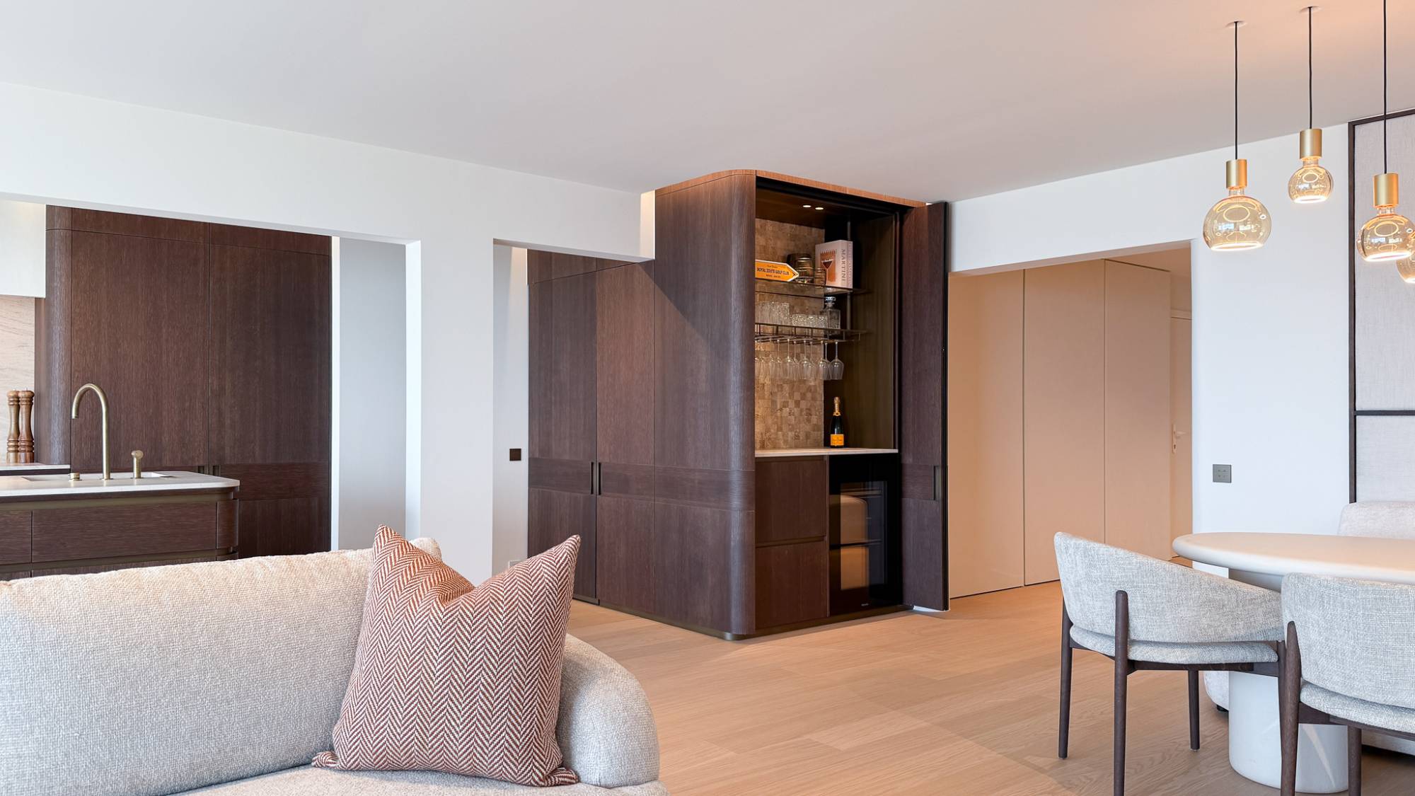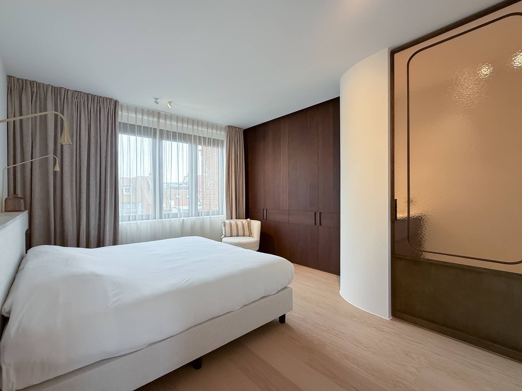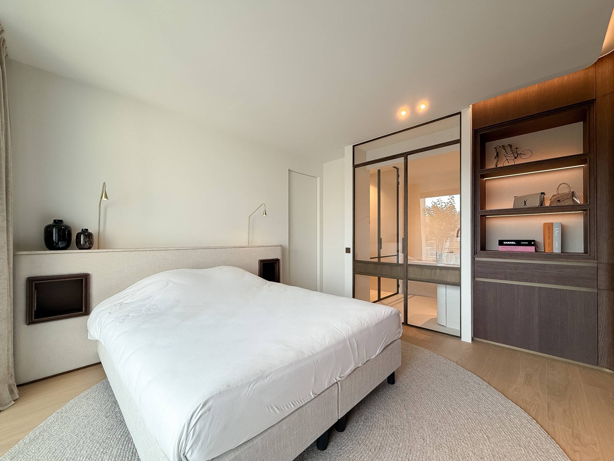 De renovatie werd tot in de puntjes uitgevoerd, met hoogwaardige materialen en maatwerkmeubilair. De gevel is volledig vernieuwd en voorzien van nieuwe aluminium raamprofielen. Vloerverwarming garandeert een aangenaam binnenklimaat het hele jaar door, en het appartement is voorbereid op de installatie van airconditioning.