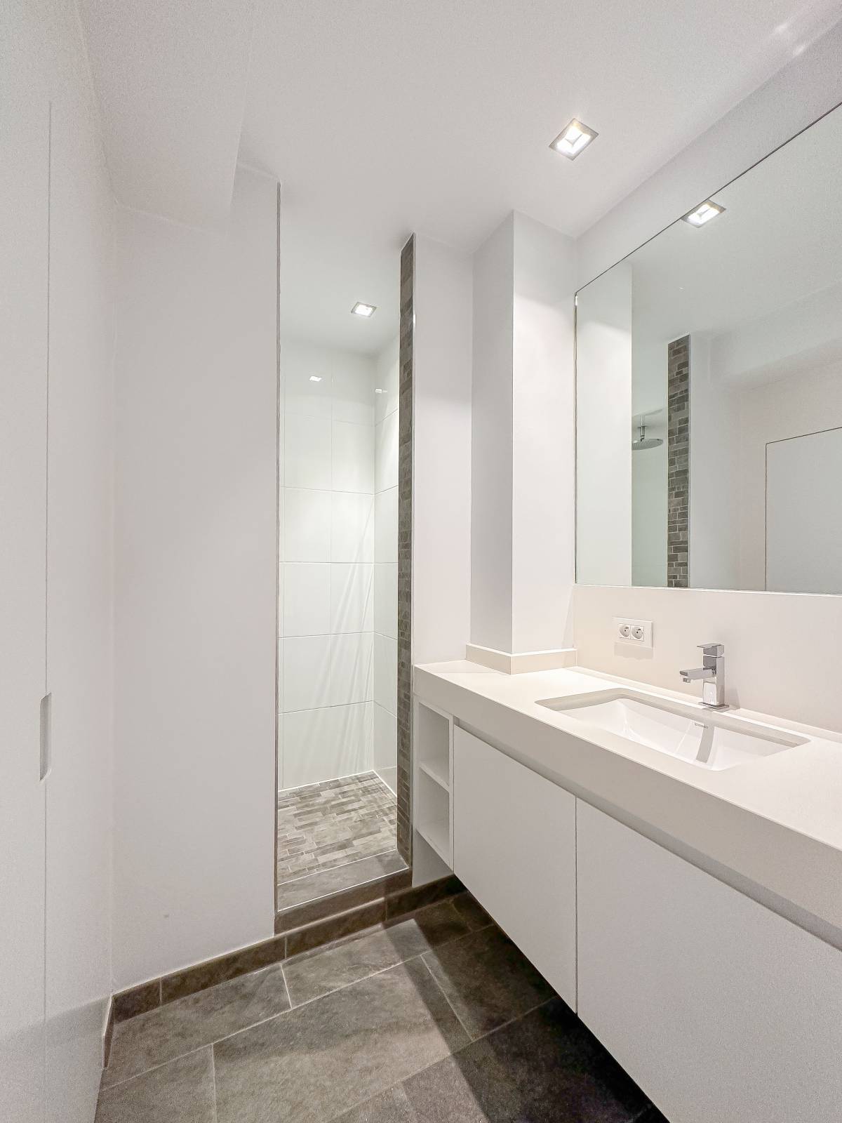 Nachthall. 3 Slaapkamers, waarvan 2 volwaardige slaapkamers met ingemaakte kasten. De master bedroom beschikt over een complete badkamer. Zonnig terras achteraan! Afzonderlijke douchekamer. De 3e kamer is een kleinere kamer met bureelhoek, stapelbed en ingemaakte kasten.
