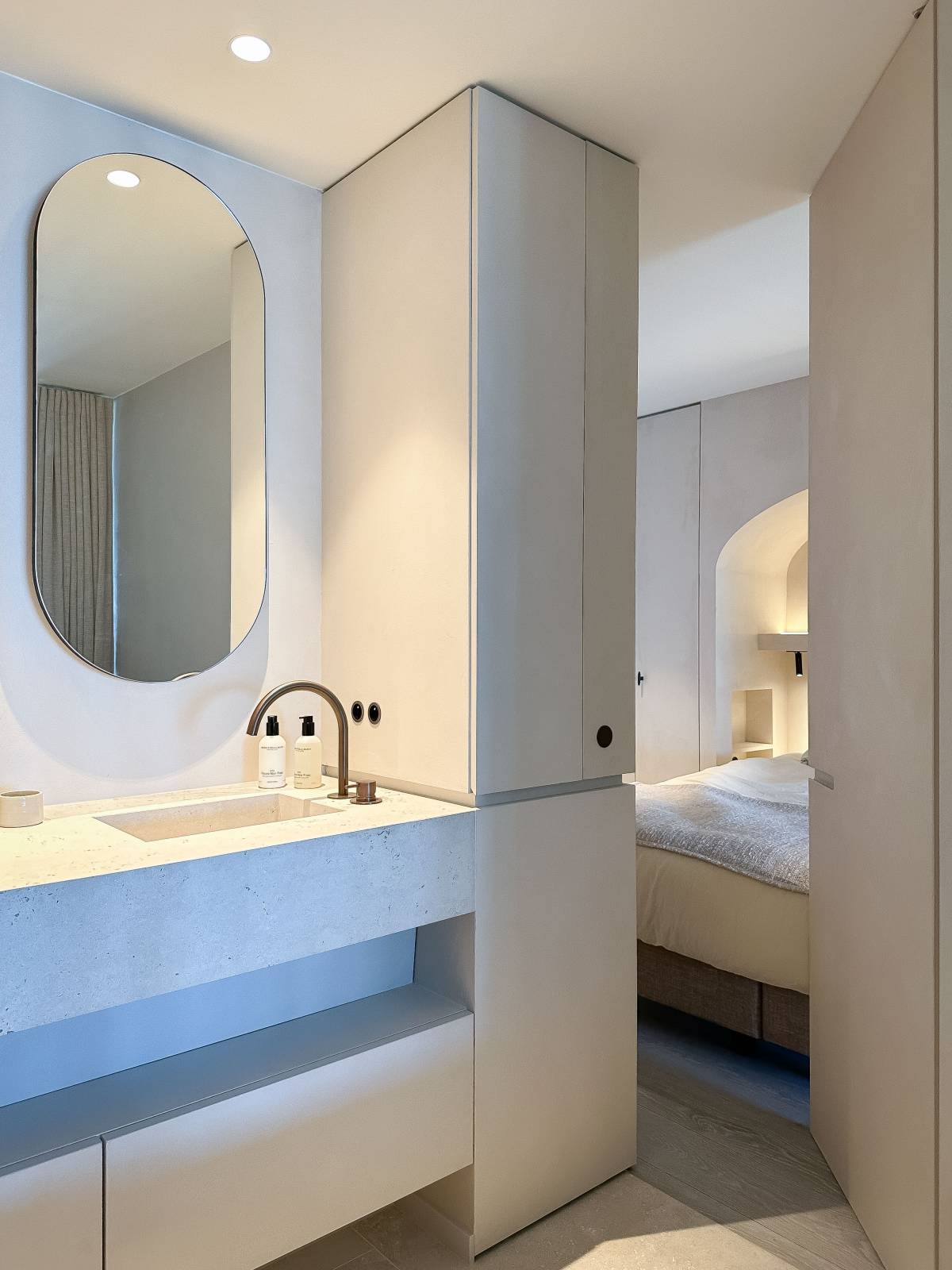 Aan de andere zijde van het appartement bevinden zich nog twee ruime slaapkamers, elk met ingemaakte kasten en een eigen ensuite douchekamer, wat zorgt voor optimaal comfort en privacy.