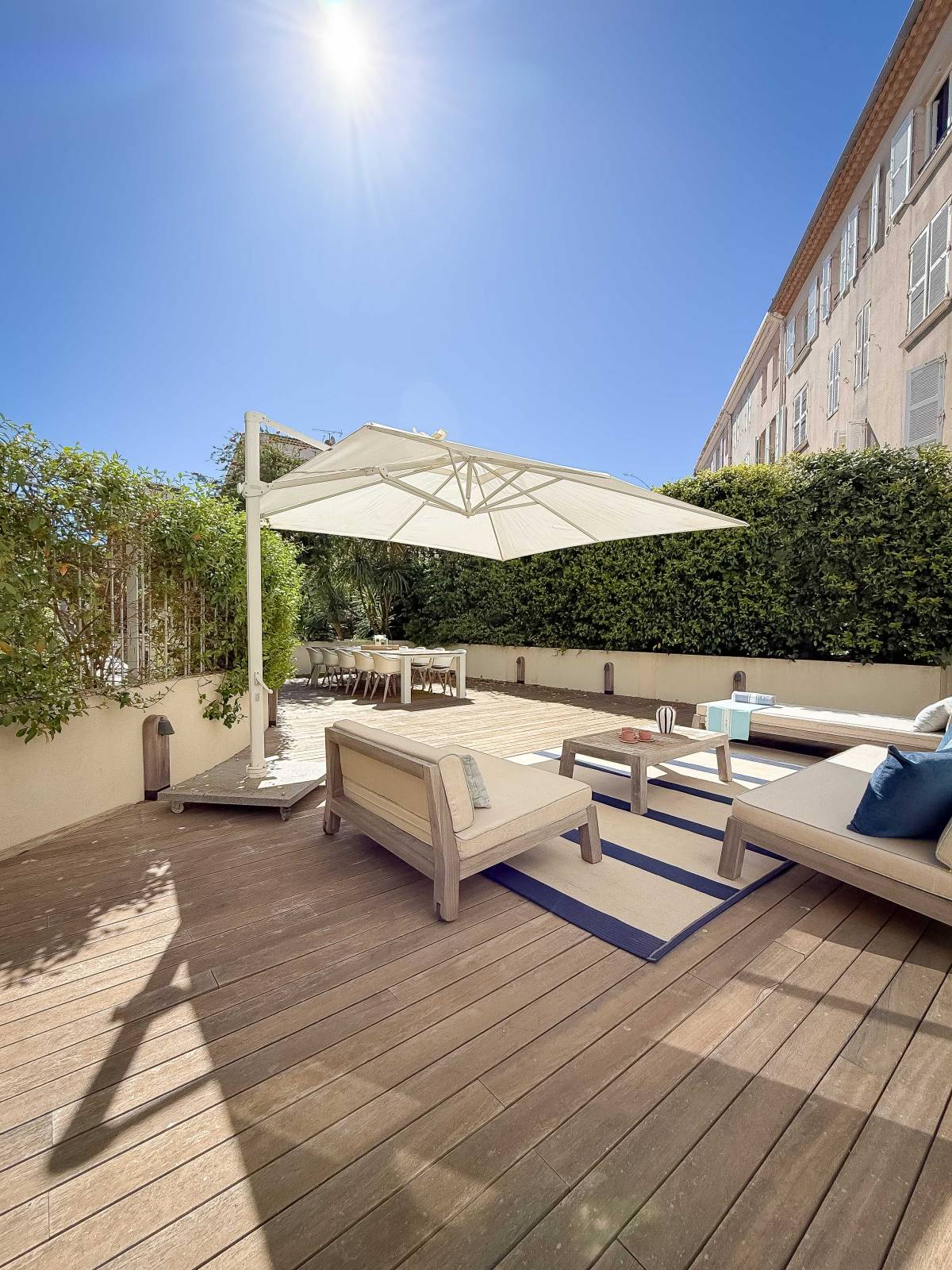 Ideaal gelegen in het centrum van Saint-Tropez, biedt dit uitzonderlijke gelijkvloers appartement 122 m² aan verfijnde leefruimte, aangevuld met een prachtig terras van 97 m² dat uitkijkt op de binnenplaats van een beveiligde residentie.