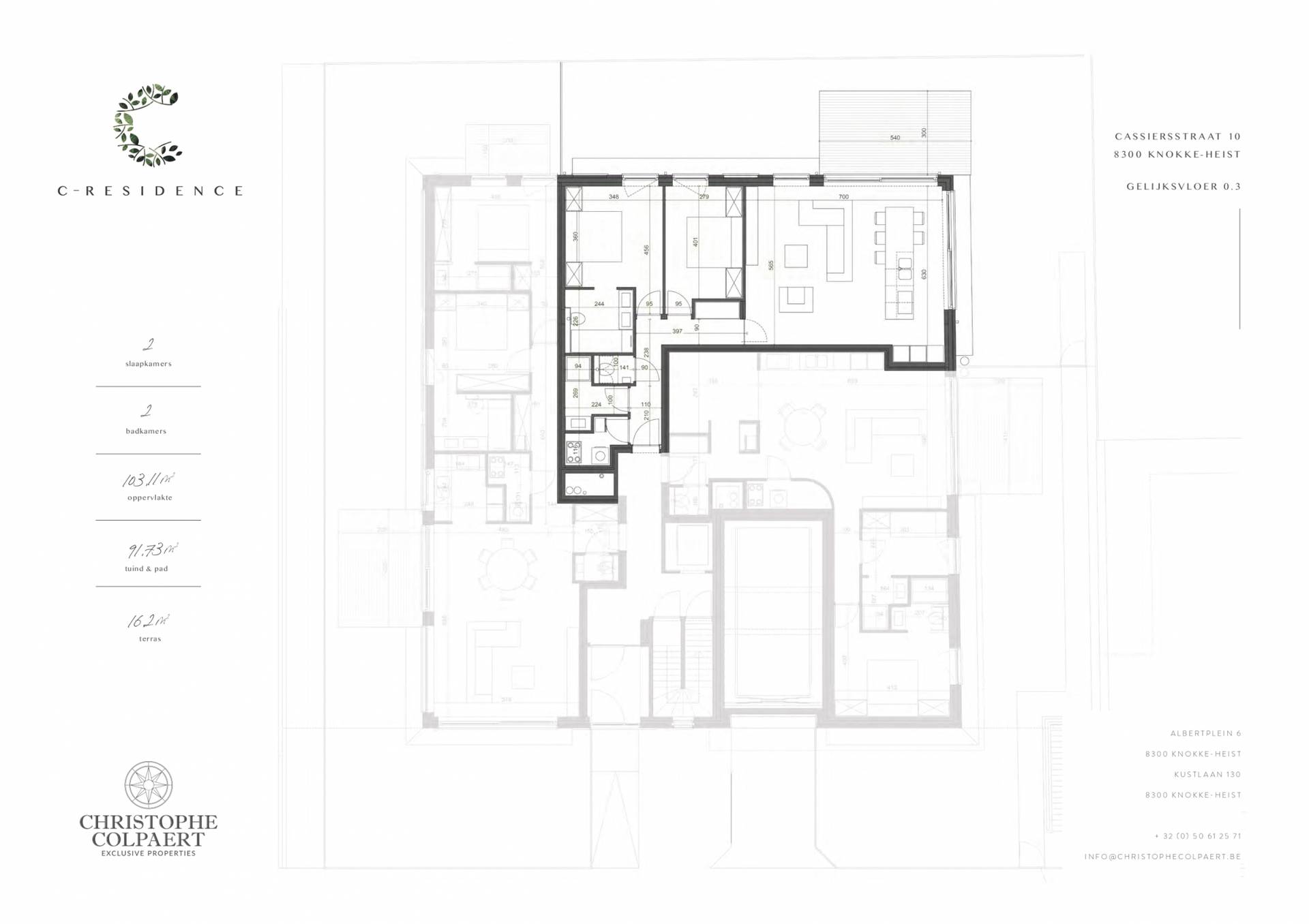 Alle appartementen in de C-Residence worden voorzien van een keuken en ingemaakte kleerkasten door Diapal, vloerverwarming,...