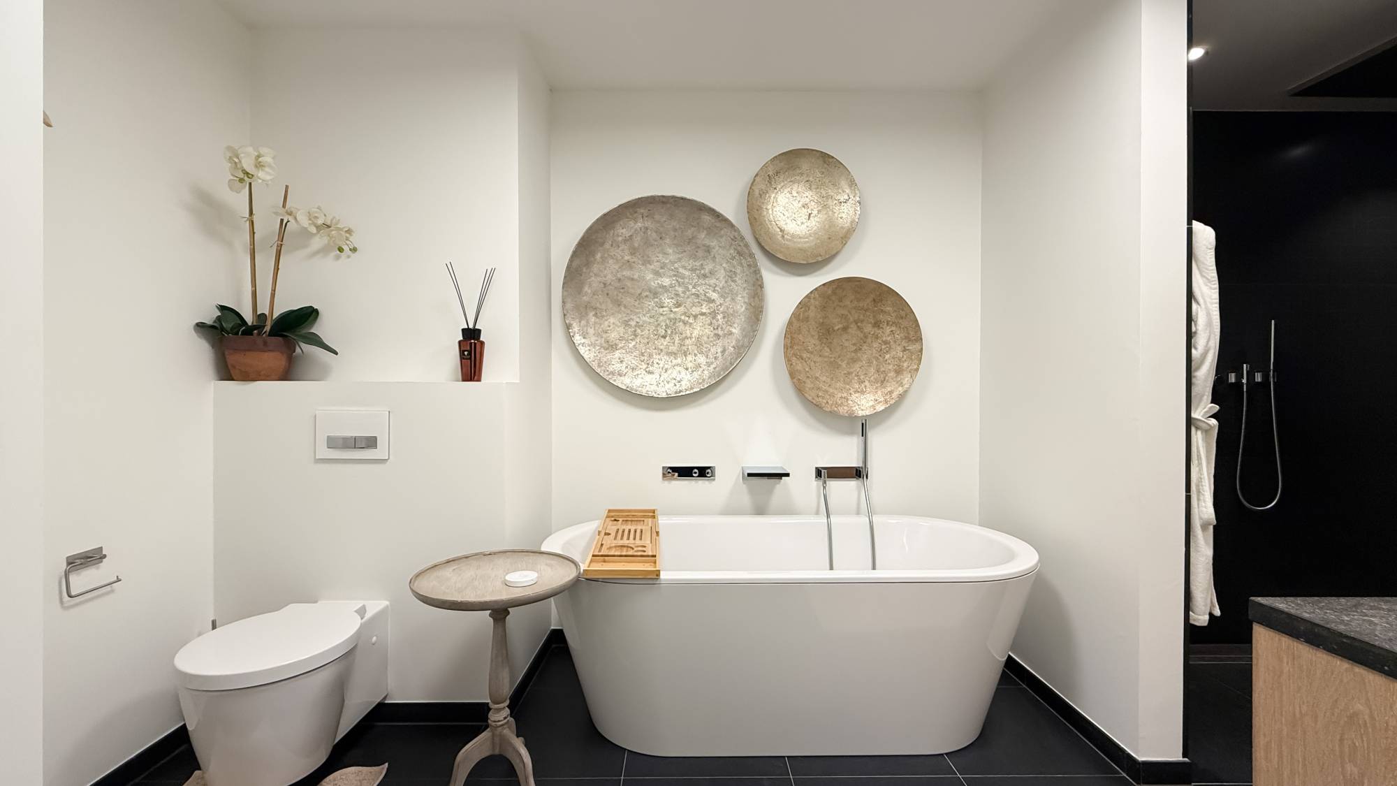 De afwerking straalt tijdloze klasse uit, met natuurlijke materialen, warme texturen en subtiele details die een serene luxe creëren doorheen het interieur.