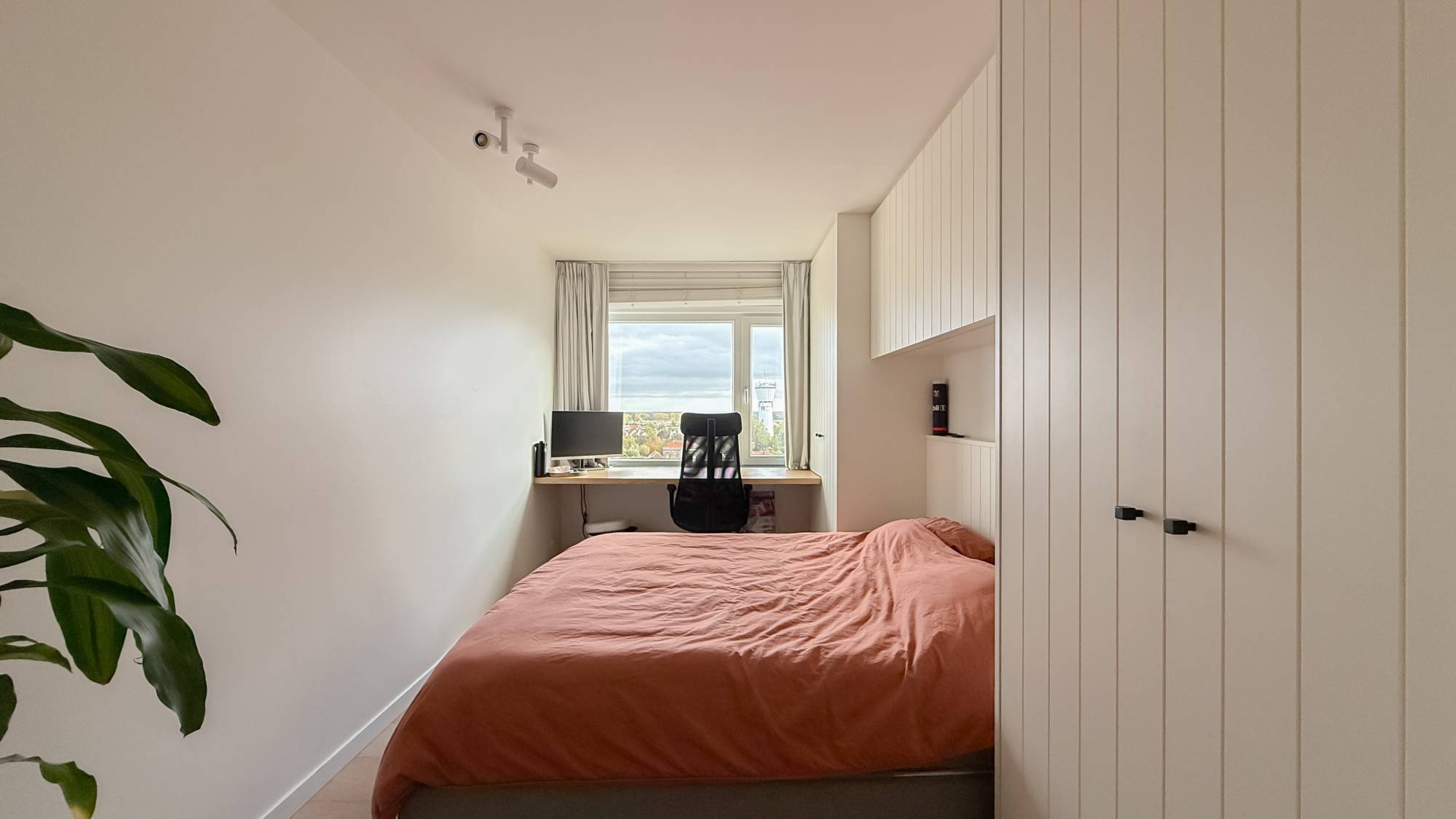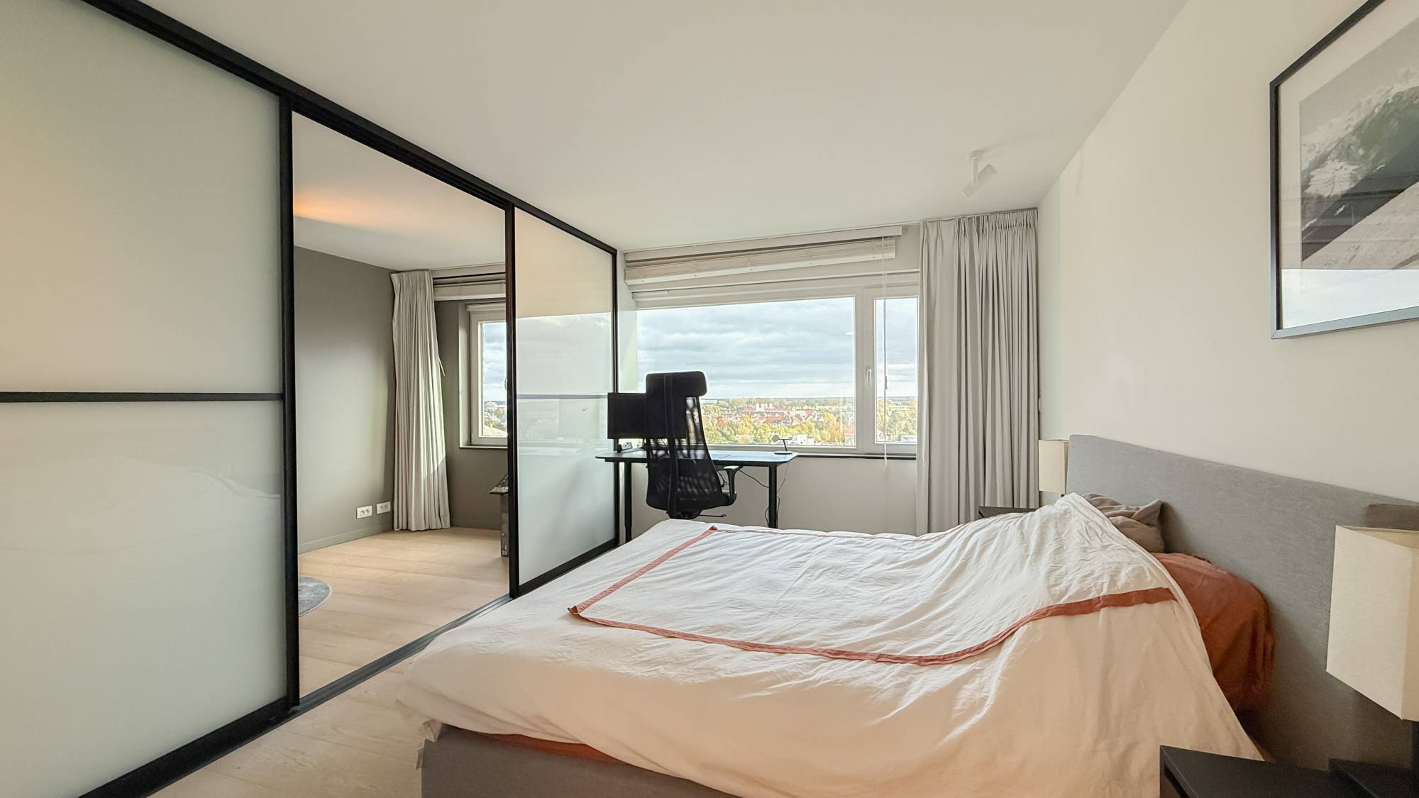 De master suite is een oase van rust met een dressing en luxueuze ensuite badkamer. Daarnaast zijn er meerdere slaapkamers met ingemaakte kasten en badkamers, wat het appartement ideaal maakt voor familie of gasten. Een aparte bureauruimte en extra zitgedeelte voegen flexibiliteit toe aan de indeling.