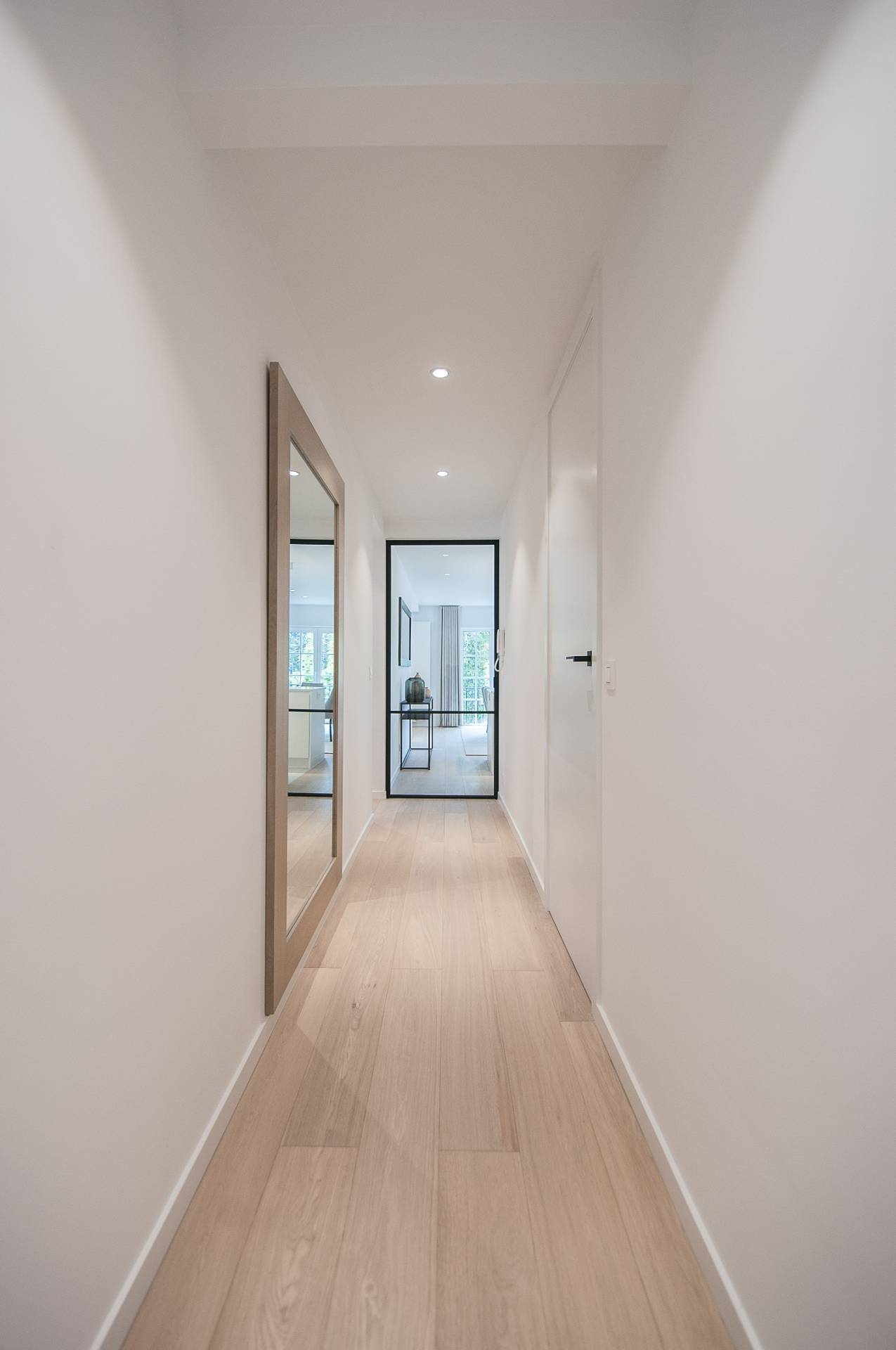 Samenstelling: Royale inkomhall met gastentoilet en vestiaire. Lichtrijke woonkamer die open zicht biedt op het groen. Aansluitend gezellige eethoek. Open keuken met keukeneiland, volledig ingericht met MIELE huishoudapparaten. Afzonderlijke berging met aansluiting voor wasmachine en droogkast.