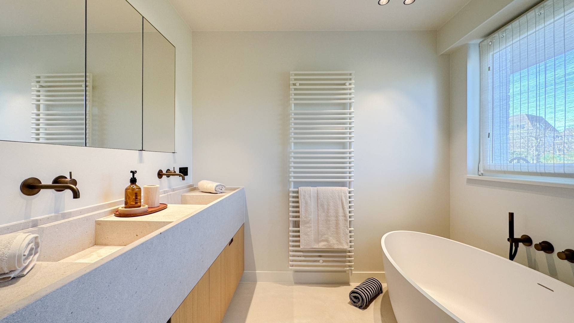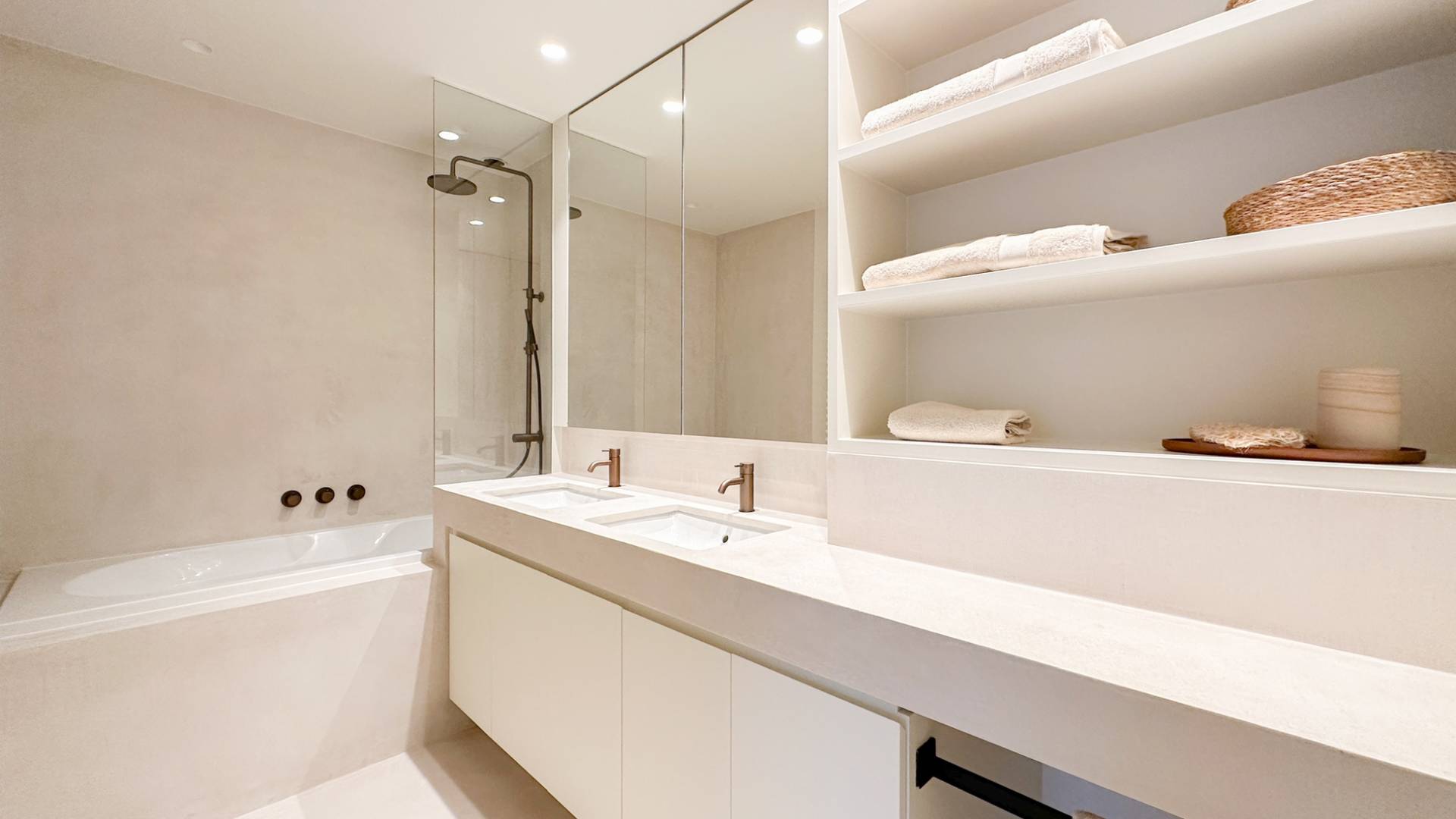 Er zijn 2 mooie slaapkamers die uitgeven op een terras. De master bedroom beschikt over een luxueus ingerichte badkamer en ruime dressing. De 2e slaapkamer beschikt over een eigen douchekamer.