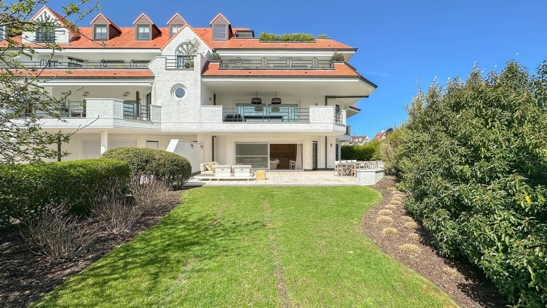 Luxueus ingericht 4-slpk. TUINAPPARTEMENT (245m2) in het exclusieve domein "Tennis Gardens", een privé park van 5ha op een spatje van de zee en wandelafstand van de "Royal Tennis Club" en het Zwin.