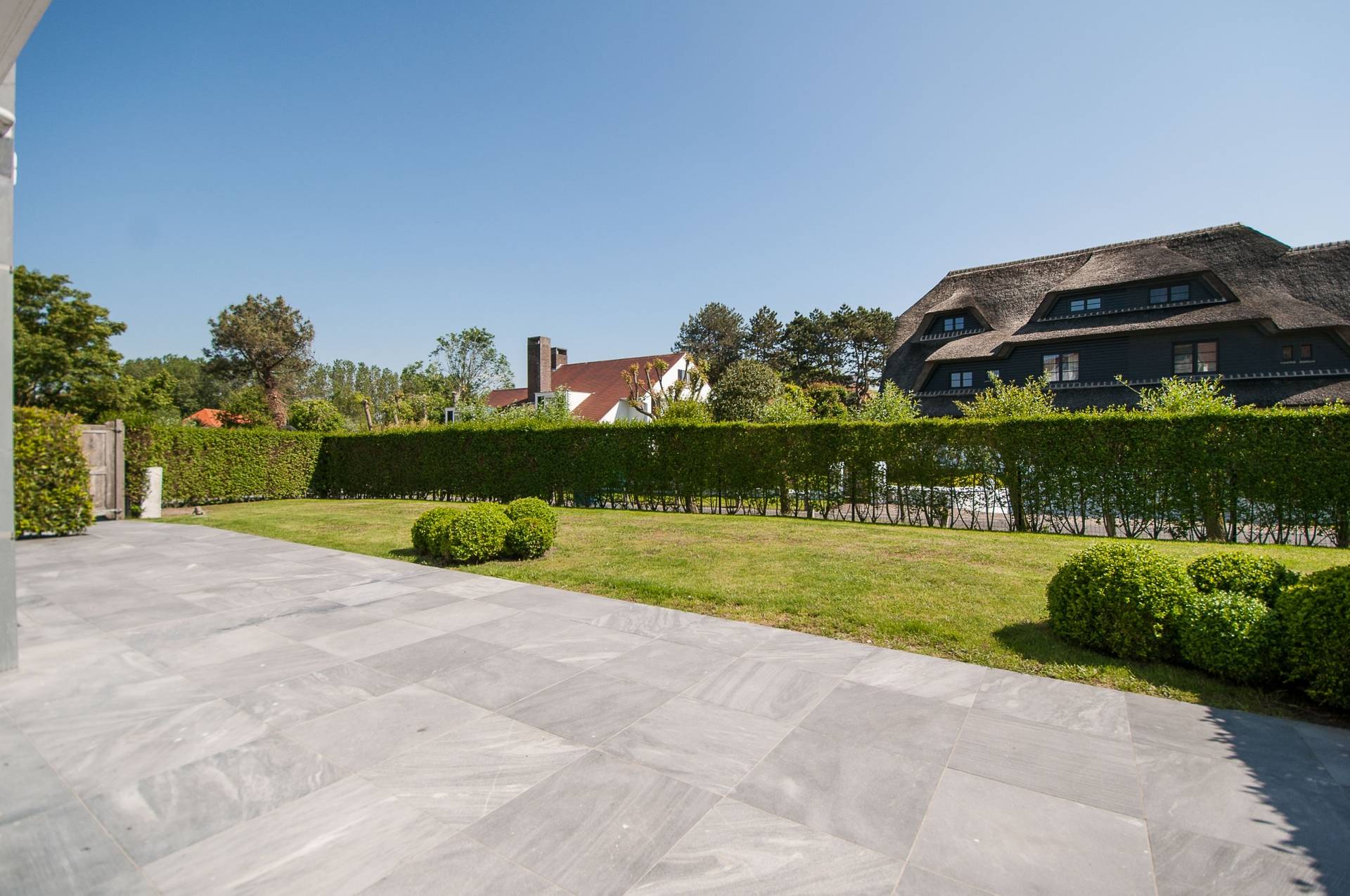 Samenstelling: Royale inkomhal met tal van ingemaakte kasten en ruim gastentoilet. Aangename woonkamer die uitgeeft op een overdekt zonneterras, omgeven door de tuin. Eethoek voor 10 personen. Open keuken, volledig geïnstalleerd, en voorzien van Miele huishoudapparatuur.