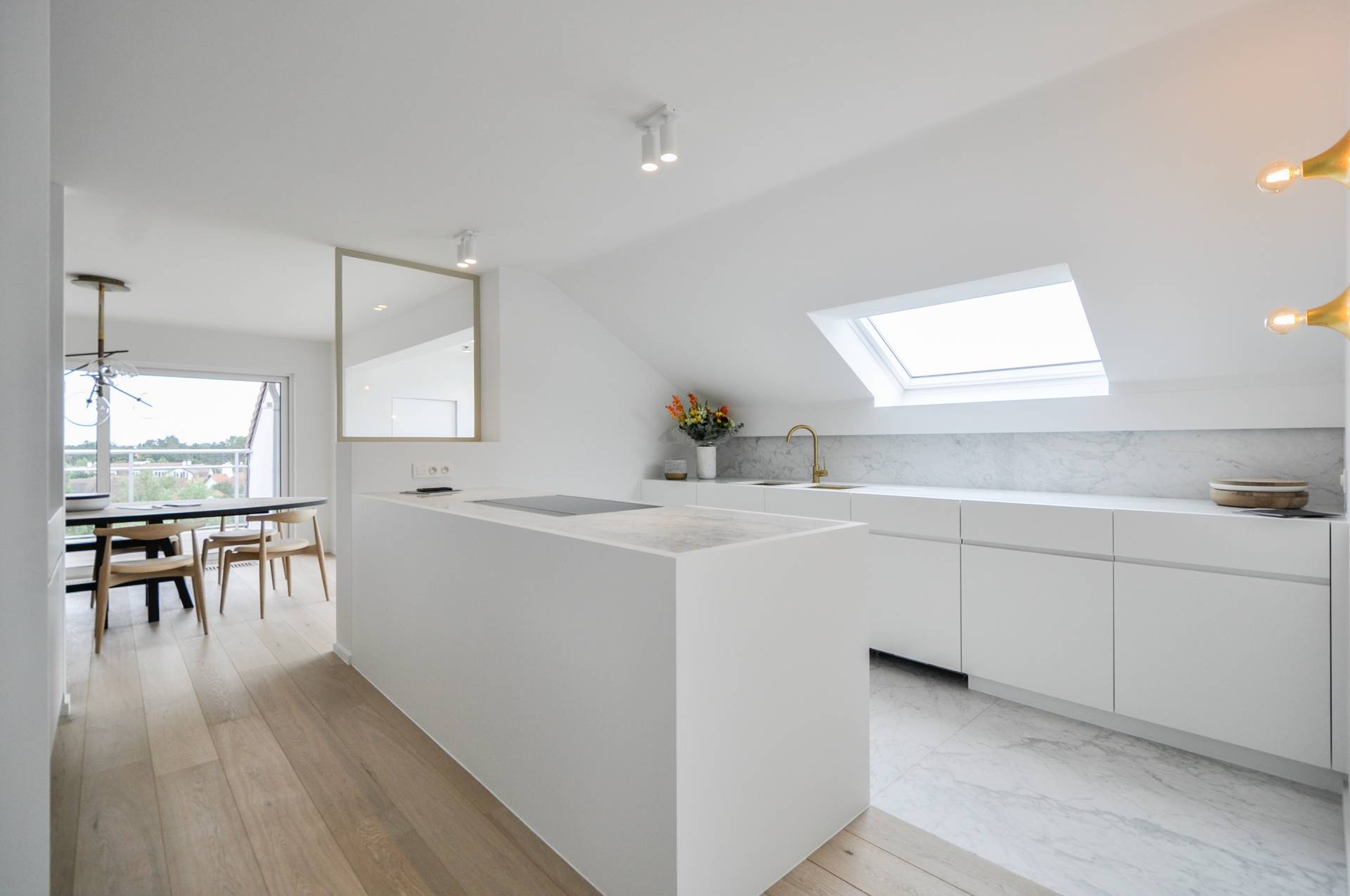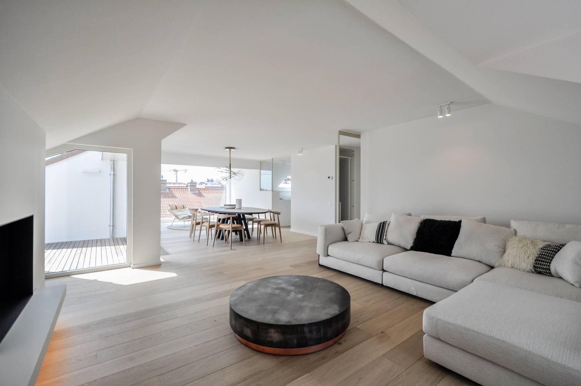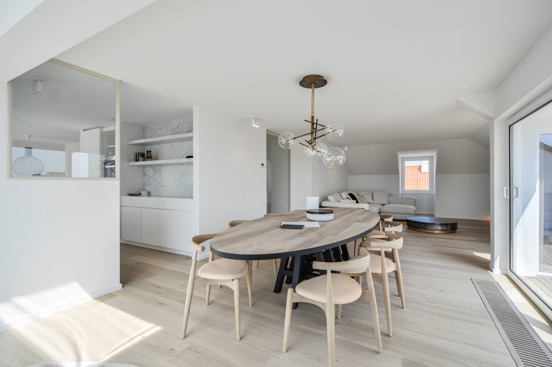 EXCLUSIEF: SUBLIEM GERENOVEERD en uitzonderlijk ruim PENTHOUSE appartement (4 slpk.), gelegen in een kleine villaresidentie in een paadje in het Zoute, vlakbij het Albertplein...