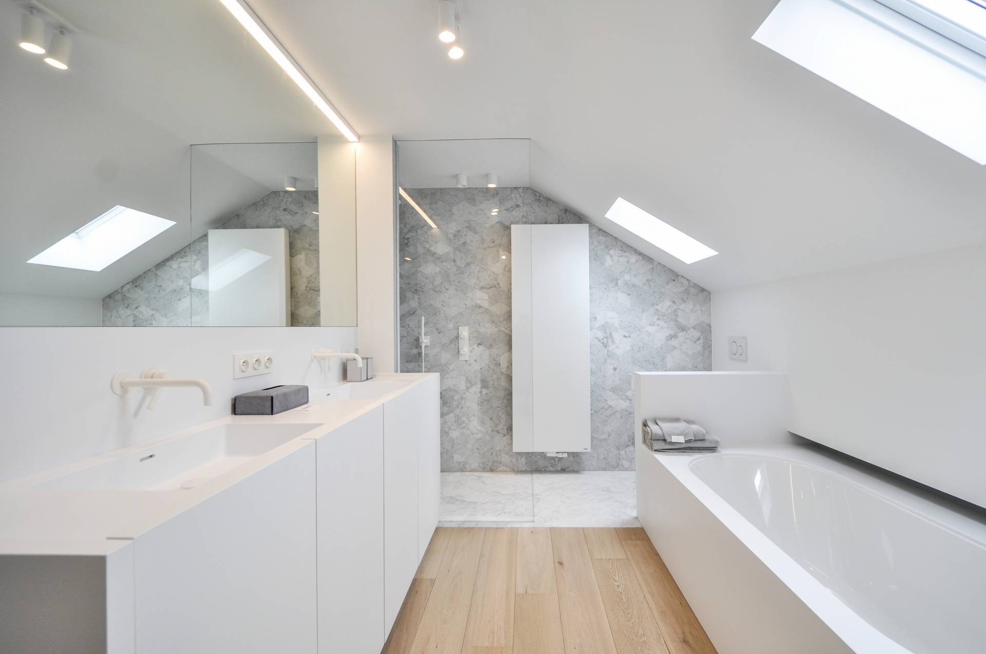 Masterbedroom met dressing en complete badkamer, voorzien van ligbad, douche, dubbele lavabo en toilet. Er zjn nogmaals 3 ruime slaapkamers, en 2 luxueus ingerichte douchekamers. Afzonderlijk toilet.
