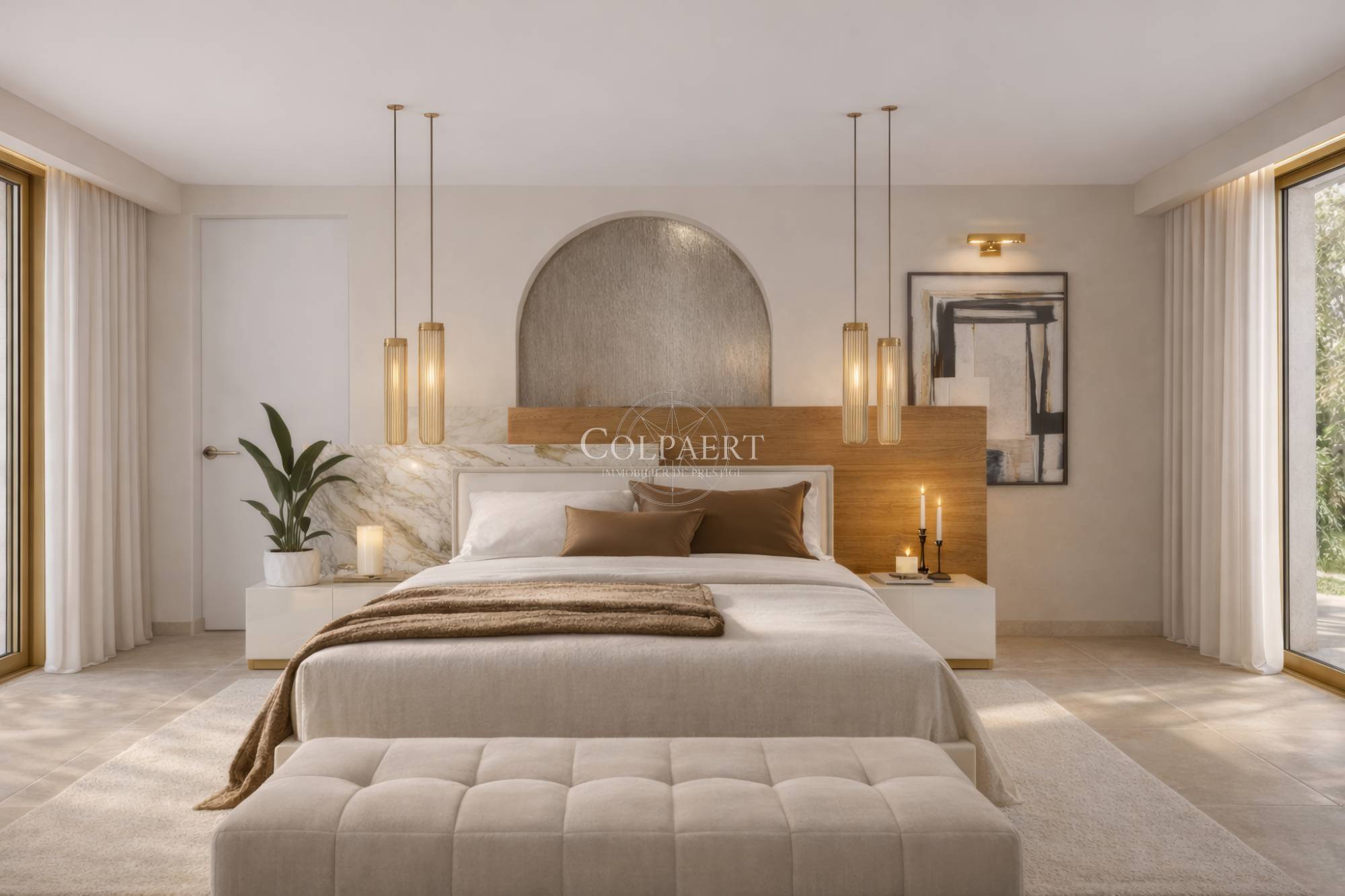 De vier slaapkamers, elk met een eigen terras, stralen een bepaalde intimiteit uit. De appartementen worden met elkaar verbonden en beveiligd, en een lift bedient de verdiepingen van elk appartement, waardoor optimaal comfort wordt gegarandeerd.