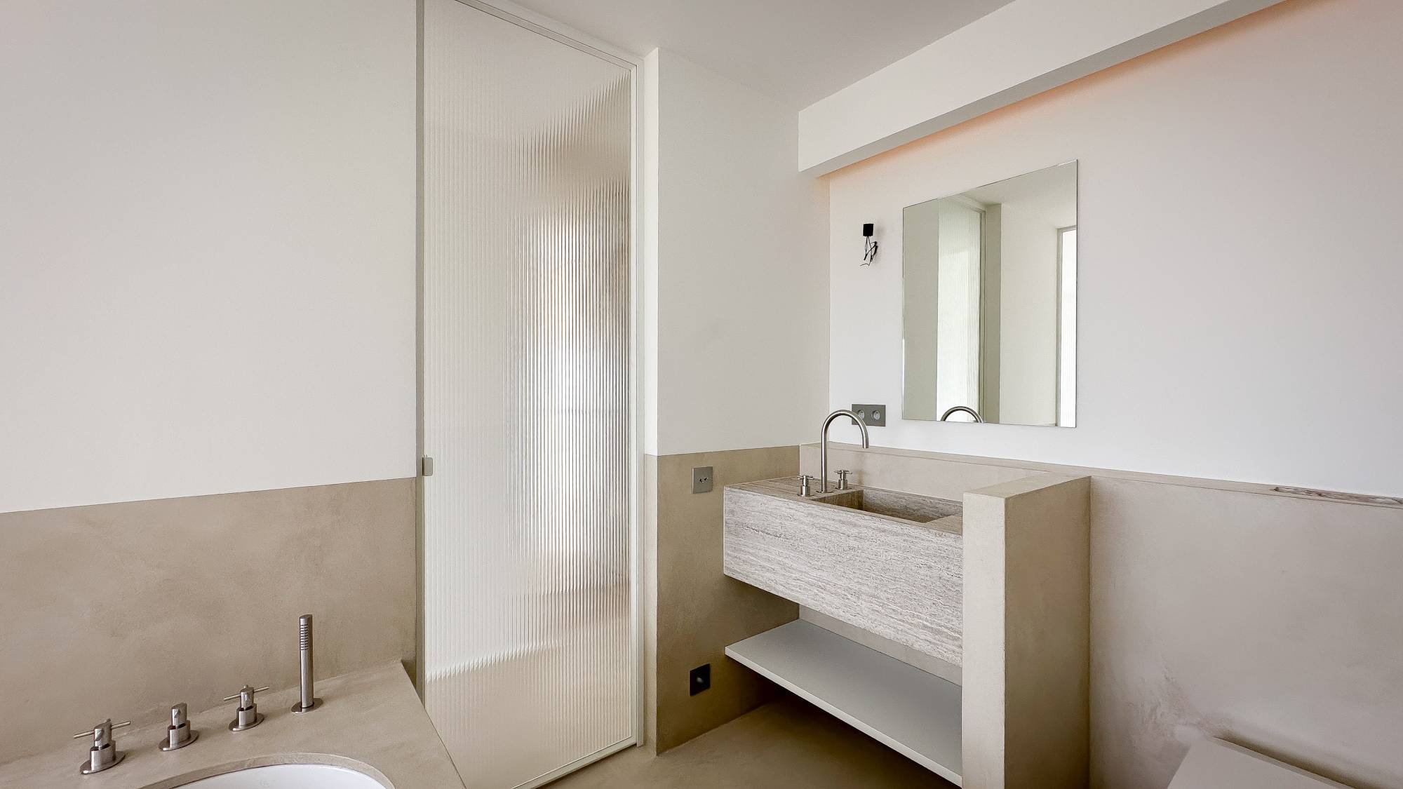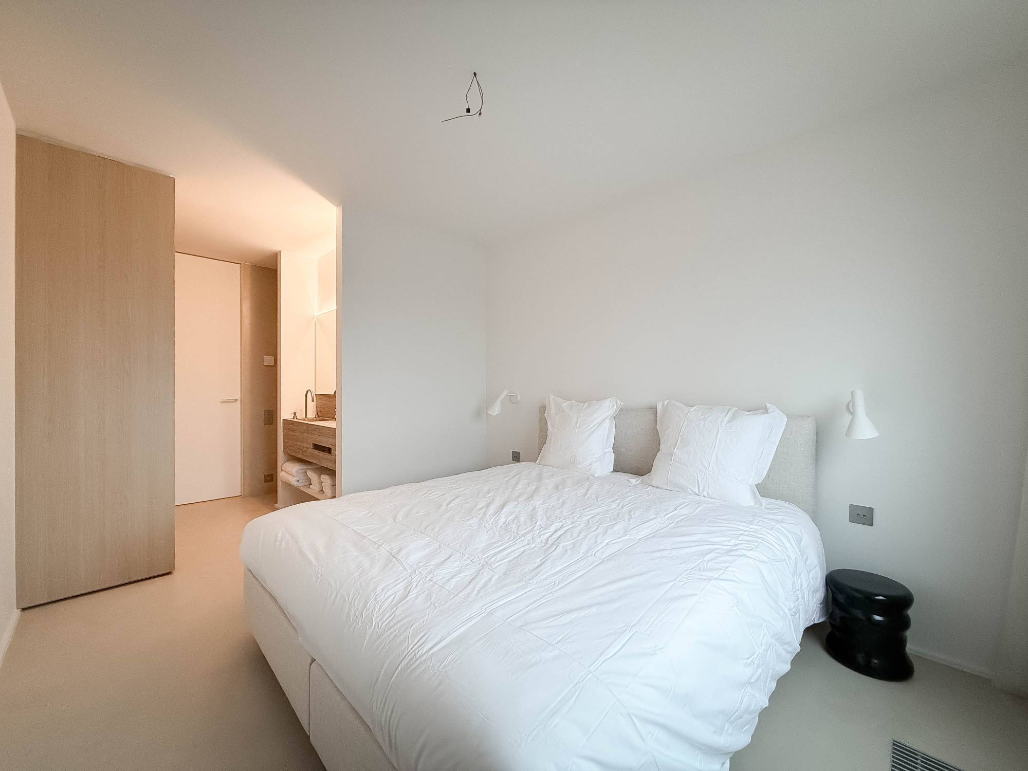 Er zijn 2 volwaardige slaapkamers met ingebouwde kasten. Elke kamer beschikt over een ensuite badkamer of doucheruimte, afgewerkt in natuursteen en voorzien van Vola kranen.