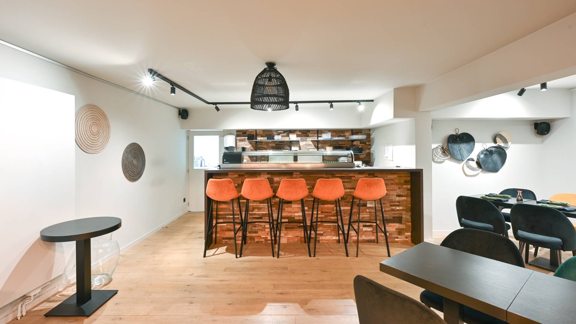 Indeling: Inkom, restaurant met +/- 34 zitplaatsen verspreid doorheen het pad met tussenin een bar. Achteraan bevindt zich de stockageruimte met koelcel en de volledige uitgeruste keuken. De keuken werd in 2021 geplaatst. Toiletten man/vrouw.