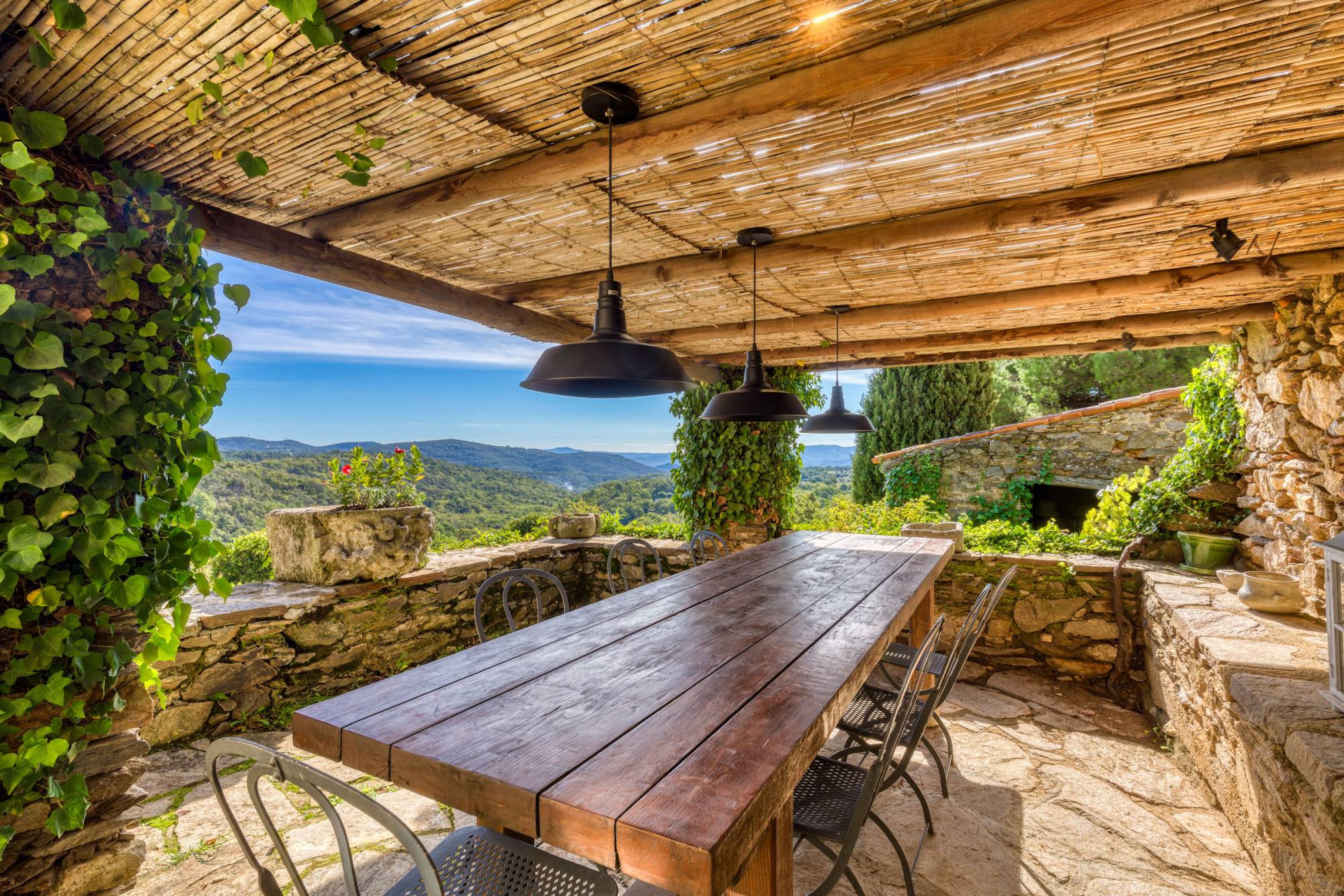 De Bastide heeft een privétoegang via een betonnen weg die in 2022 is aangelegd, wat zorgt voor een elegante aankomst en een panoramisch uitzicht. Op de begane grond bevindt zich een ruime, uitnodigende keuken met een bijkeuken waar het gezin samen kan komen, grenzend aan een eetkamer. Een grote woonkamer, compleet met biljart en bar, biedt de ideale plek voor ontspanning. De lichte en ruime wintertuin kan worden omgebouwd tot een atelier, vergaderruimte of fitnessruimte.