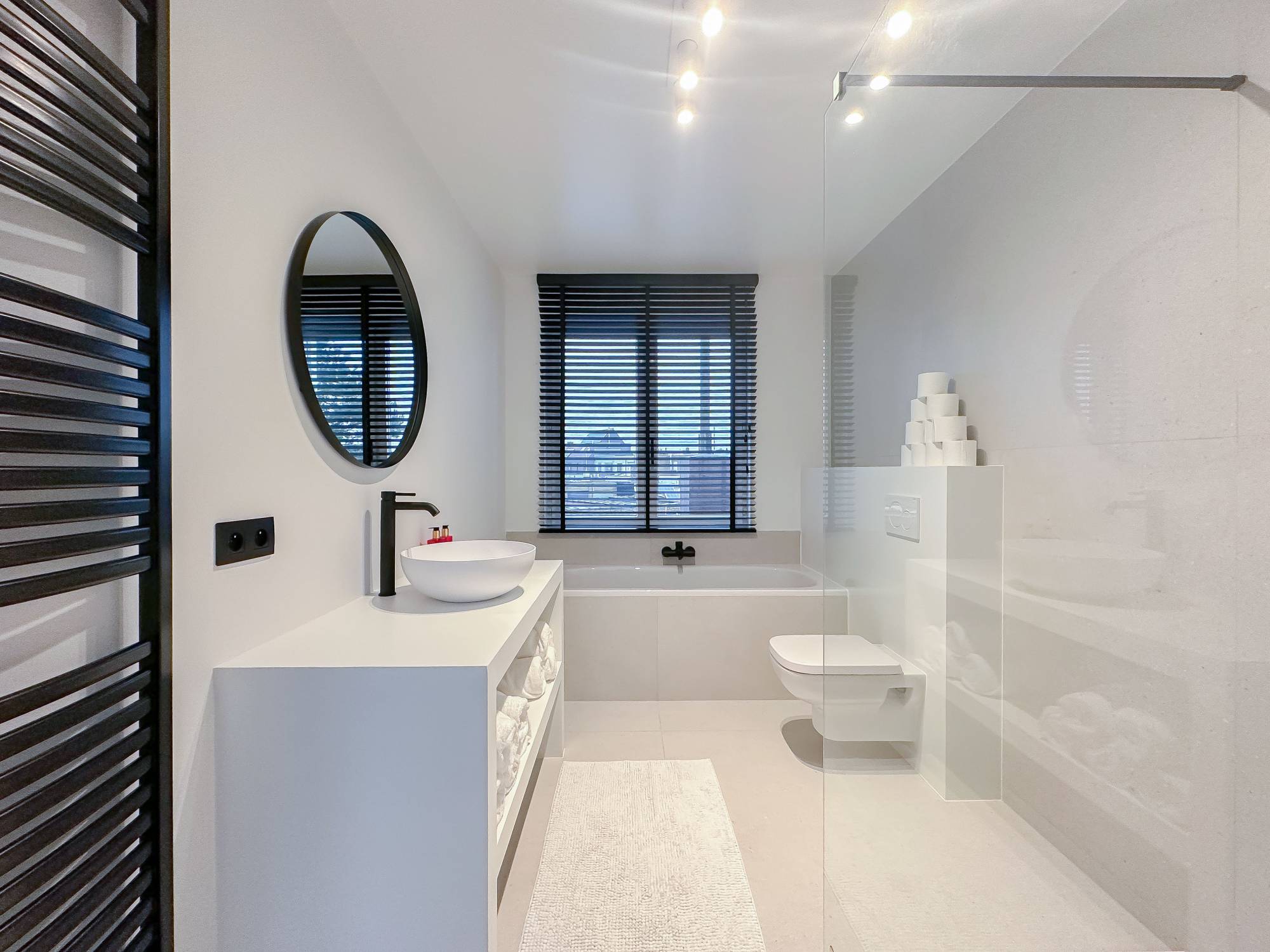 Op de bovenverdieping bevinden zich drie slaapkamers, waarvan twee zijn voorzien van ingebouwde kasten. De ruime, volledig gerenoveerde badkamer beschikt over een ligbad, inloopdouche, wastafel en een toilet.