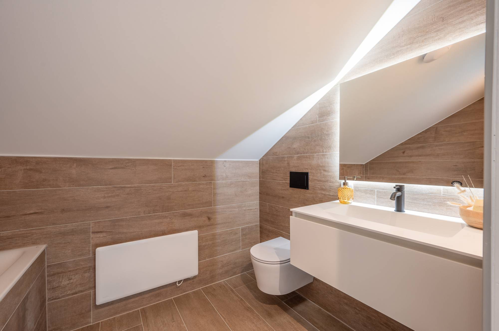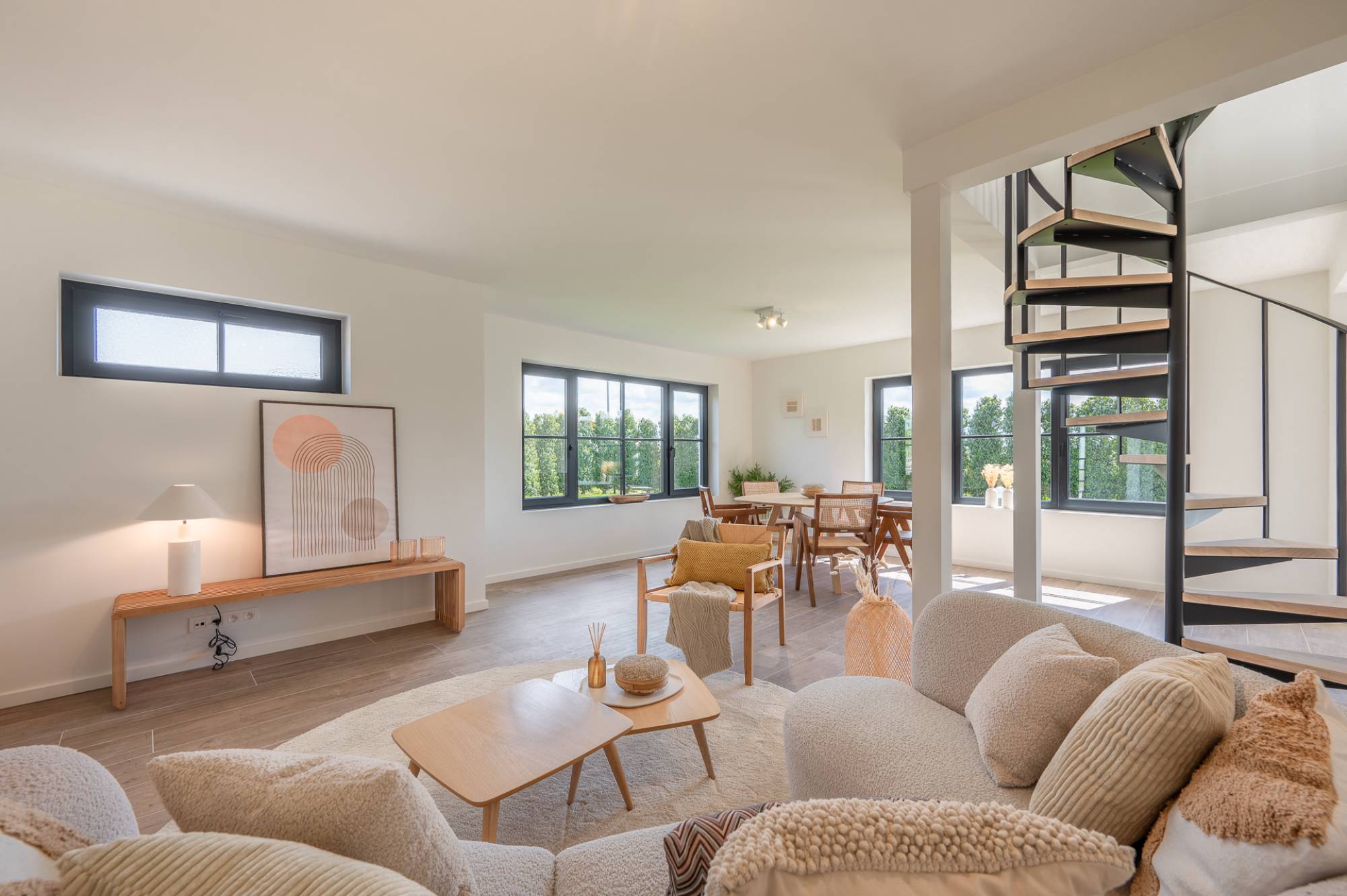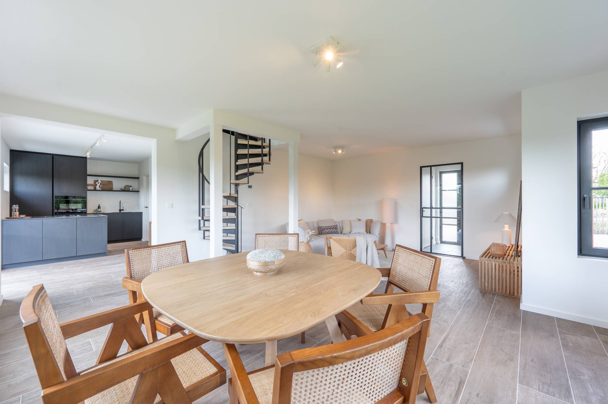 Via de ruime oprit bereikt u de eerste woning, die bijzonder energiezuinig is en beschikt over een prachtige, zuidgerichte tuin. De woning is luxueus gerenoveerd en voorzien van zonnepanelen en een geothermische warmtepomp.