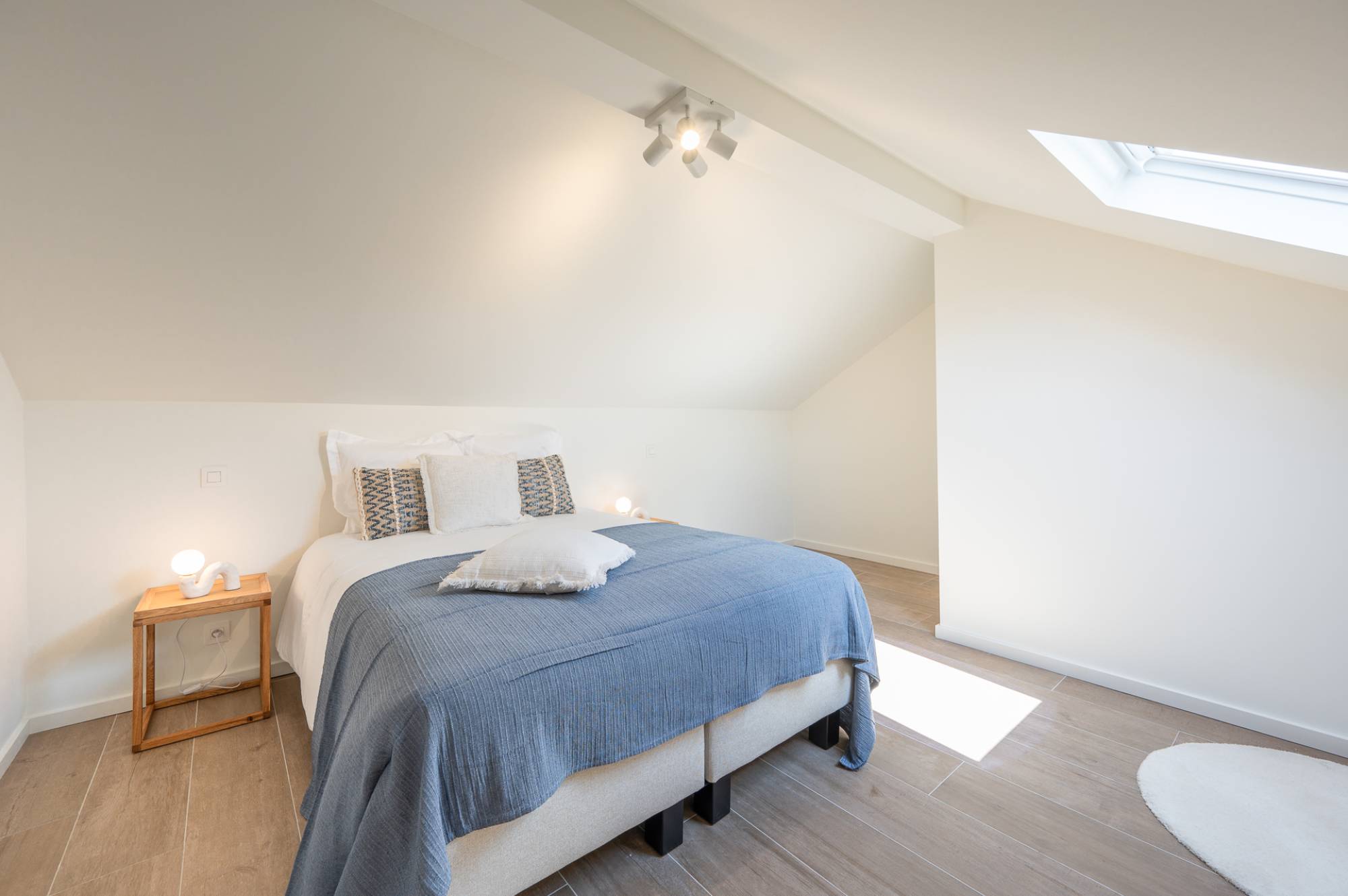 Indeling: Inkomhal met gastentoilet en vestiaire. Aangename leefruimte bestaande uit een zithoek, eetplaats en een volledig ingerichte keuken. Op de gelijkvloerse verdieping bevinden zich twee slaapkamers en een badkamer. Op de eerste verdieping zijn er nog eens twee slaapkamers en een tweede badkamer.