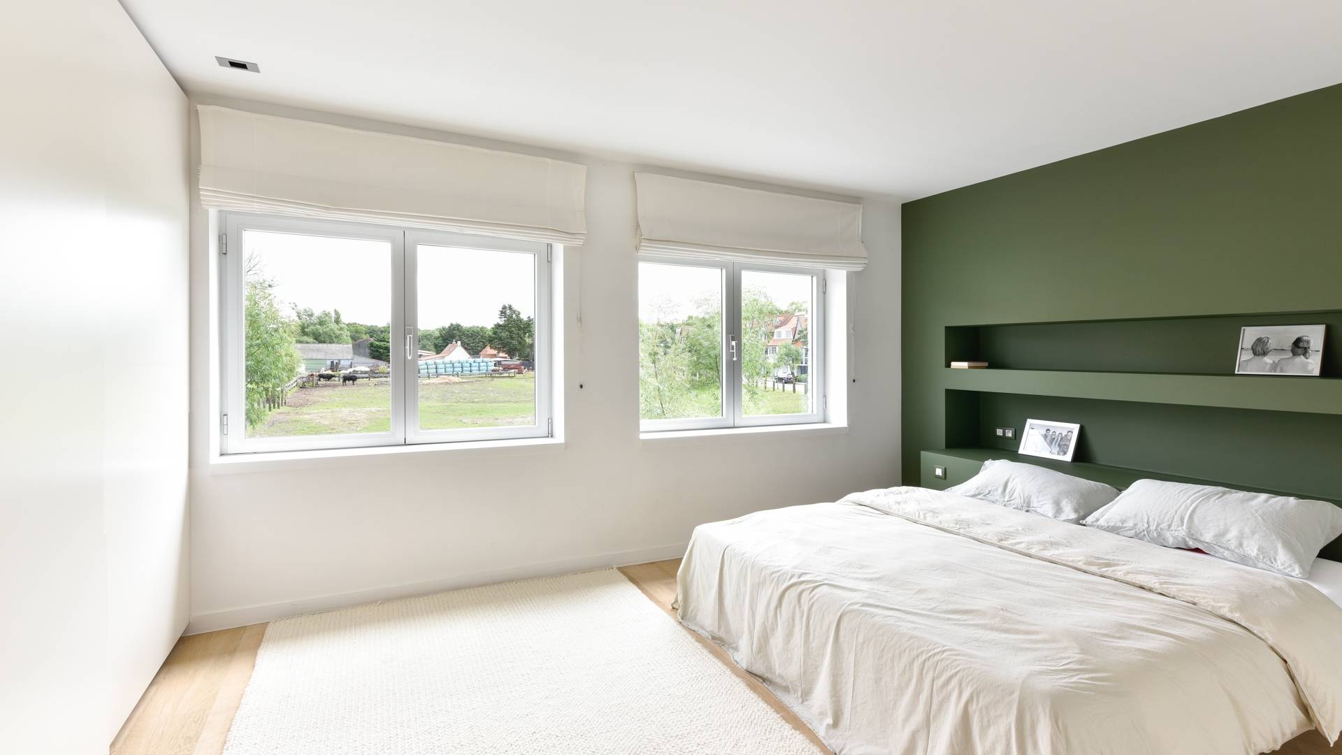 Op de 1e verdieping bevinden er zich 2 slaapkamers en 1 douchekamer. De tweede slaapkamer geeft uit op een aangenaam terras.