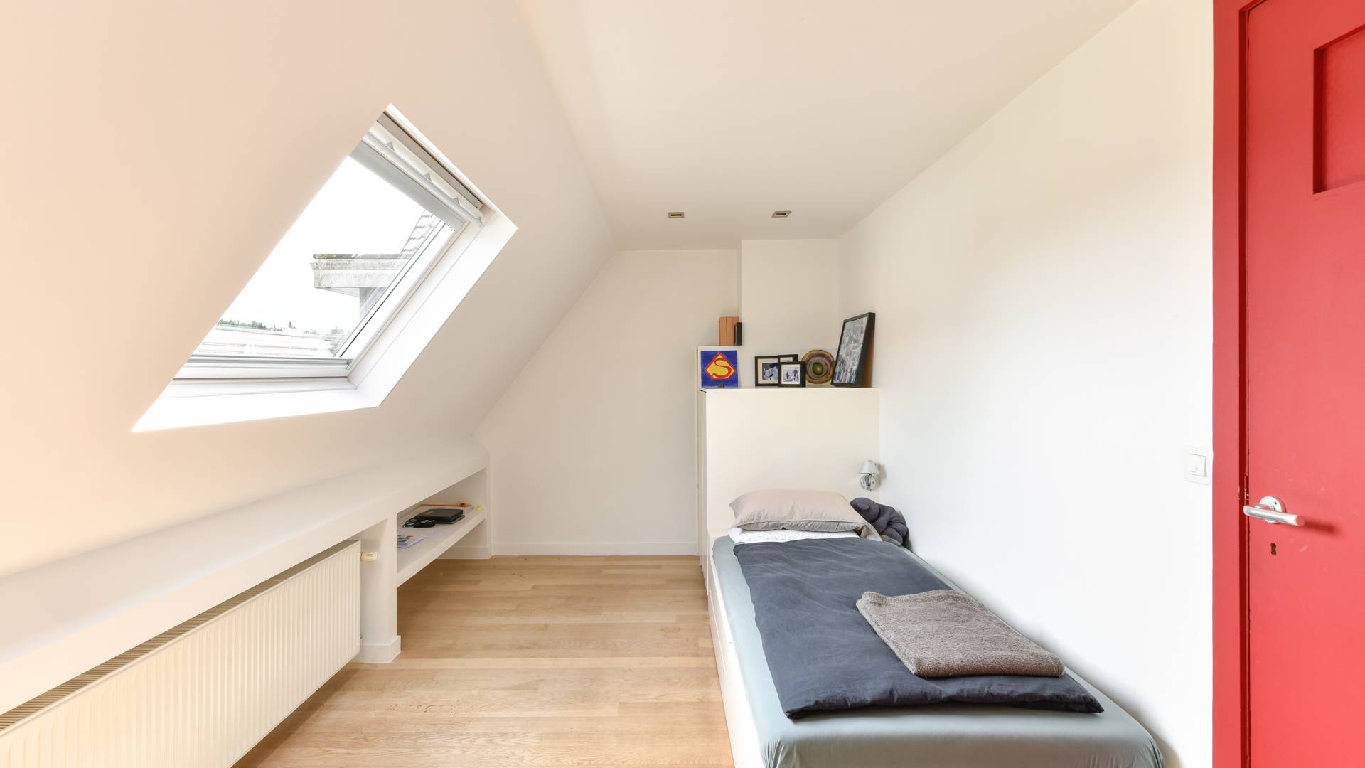 Op de 2e verdieping bevindt zich een 3e slaapkamer met afzonderlijke douchekamer en toegang tot de zolderverdieping die ingericht werd als 4e slaapkamer.