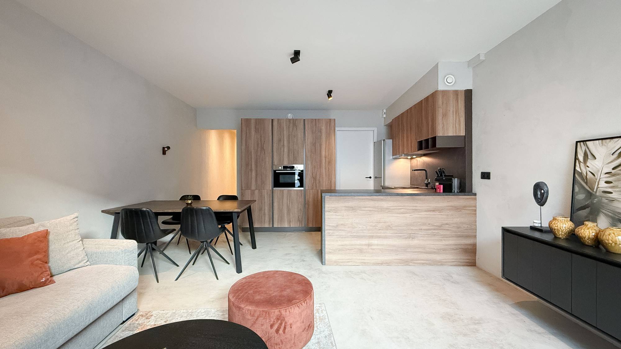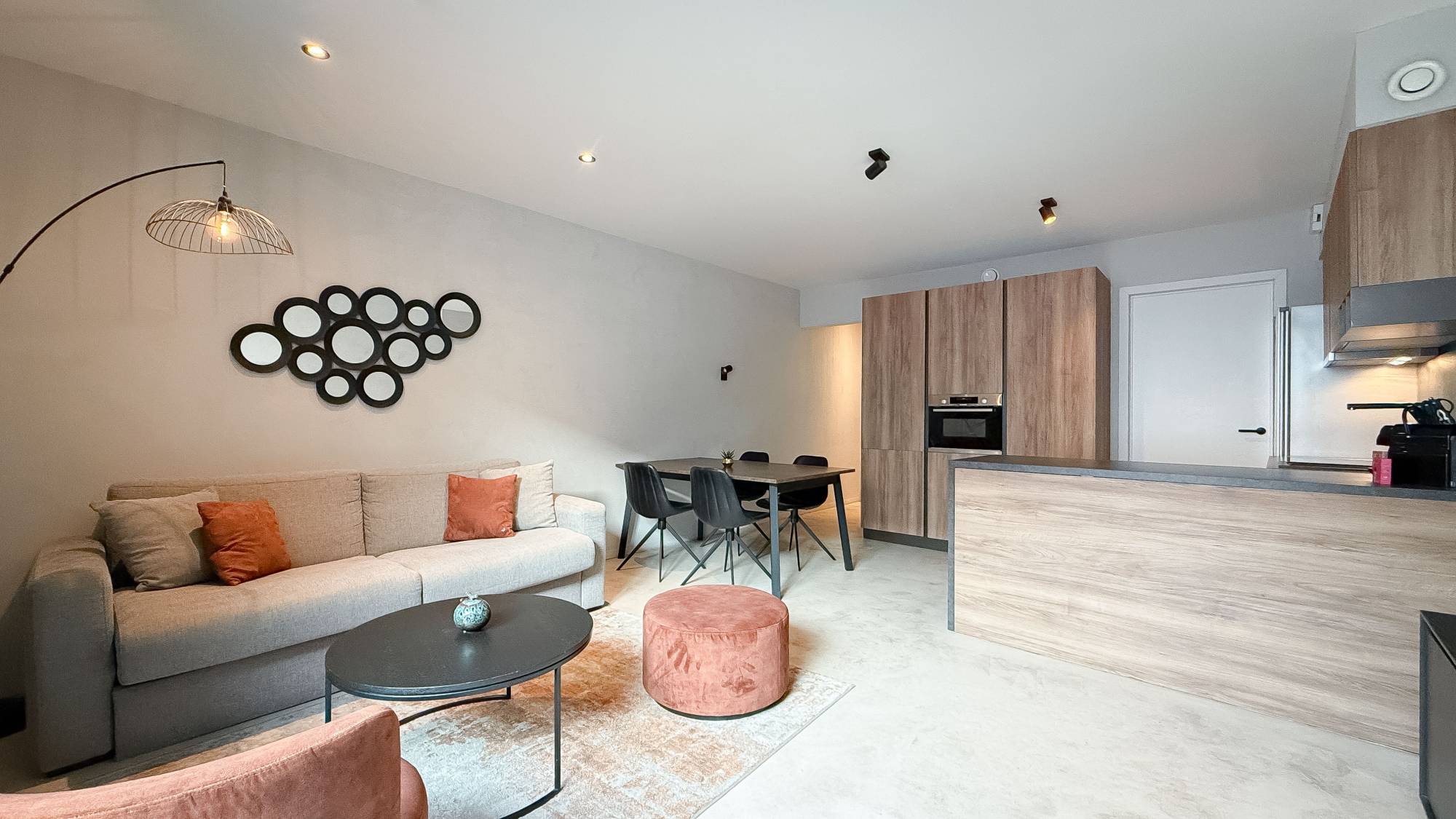 Dit nieuwbouwappartement biedt een ideale combinatie van comfort en ligging. Het beschikt over een ruime woonkamer met open keuken, een Zuidwest gericht terras, een moderne douchekamer met inloopdouche en enkele lavabo, een apart toilet, en een royale slaapkamer met tweepersoonsbed. Dit appartement kan tevens perfect ingericht worden als kantoorruimte.