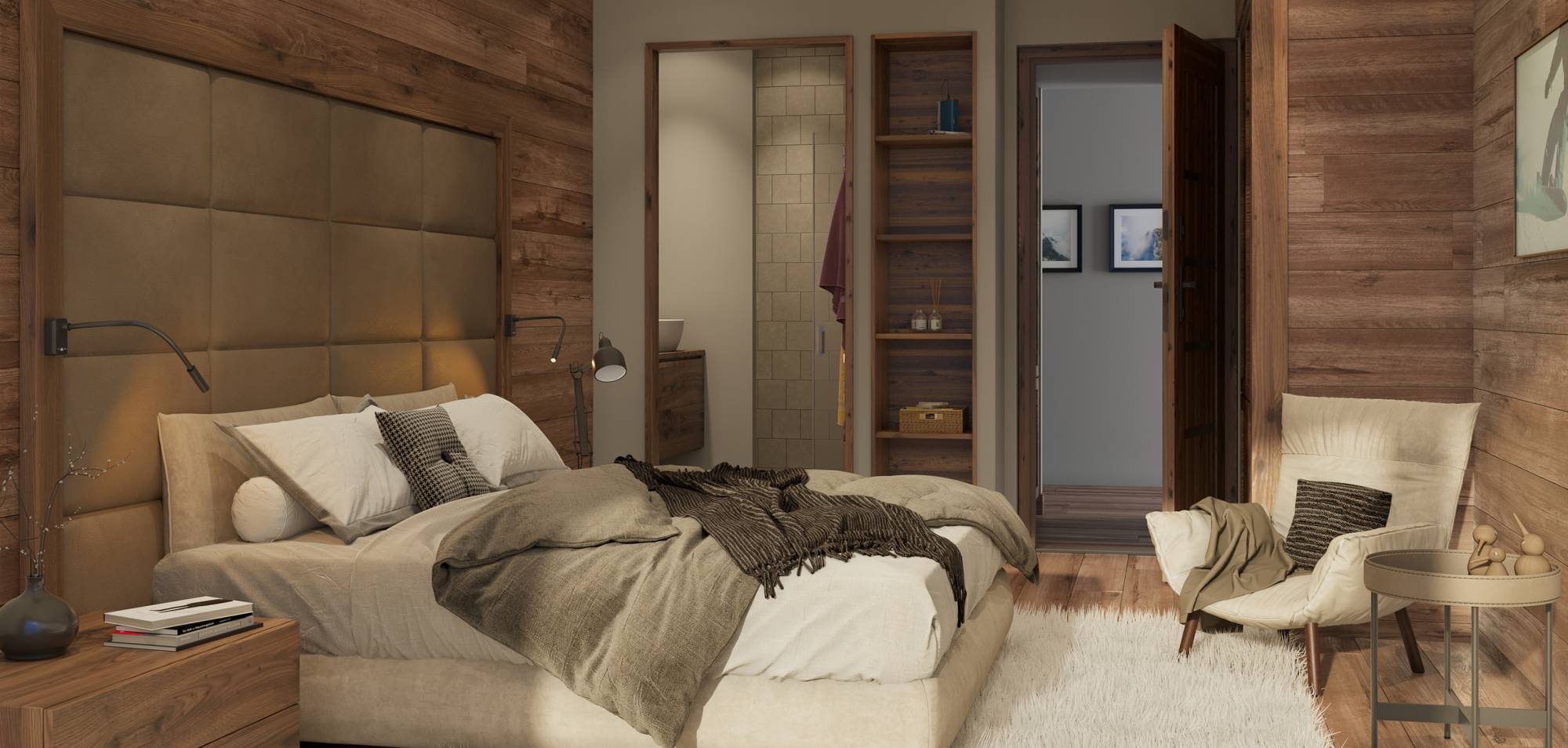 Elk appartement heeft een grote woonkamer met open keuken, 3 tot 4 slaapkamers die kunnen worden aangepast aan uw behoeften, een skiruimte, een kelder en twee garages.