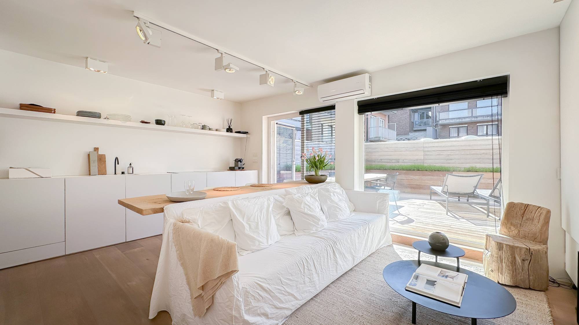Tijdloze en hedendaags ingerichte studio, met zeer groot terras, centraal gelegen nabij de Zoutelaan...