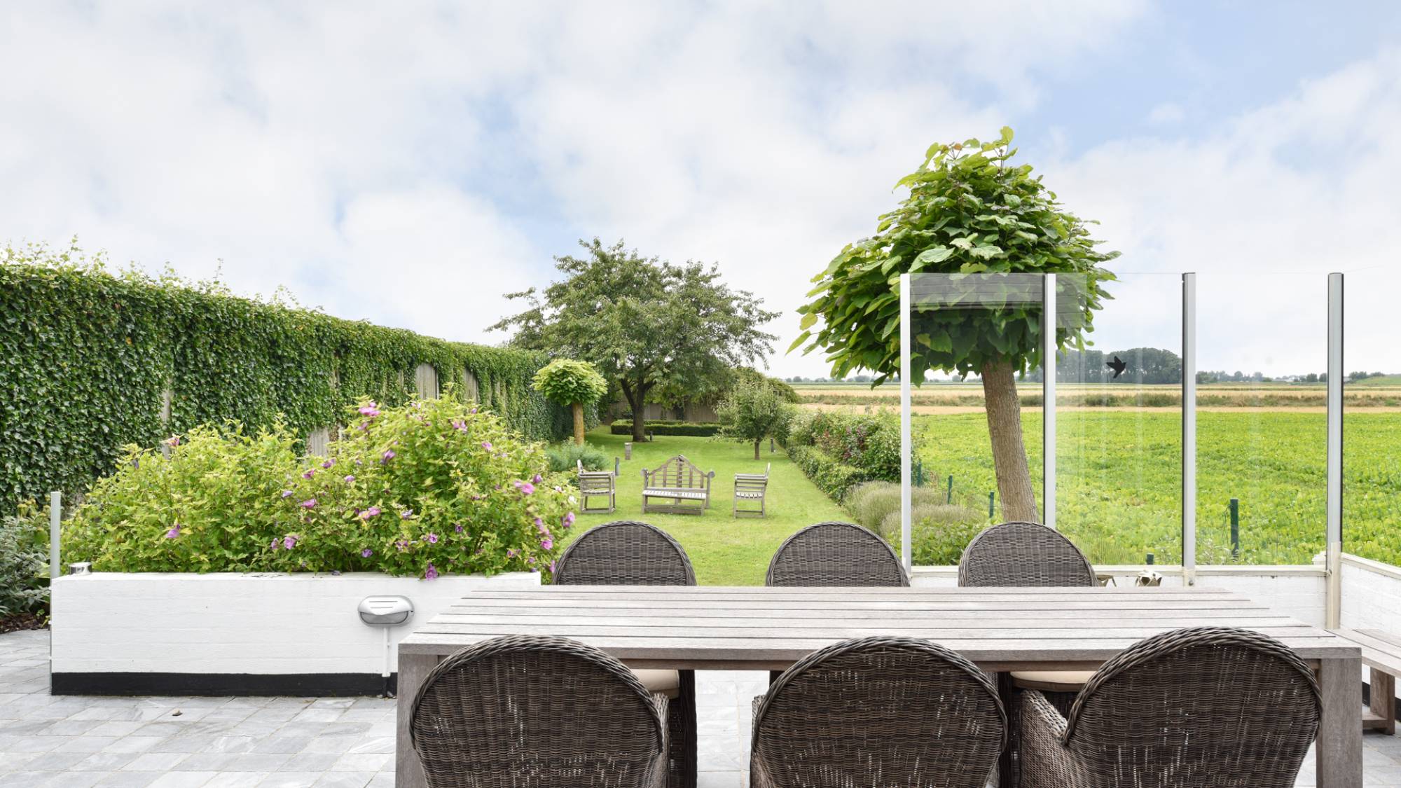 De woning beschikt over een garage en een ruime oprit geschikt als extra parkeerplaatsen. Verder kan de woning ook nog uitgebreid worden met 120m2 en naast de verschillende terrassen beschikt de tuin eveneens over een vijver.