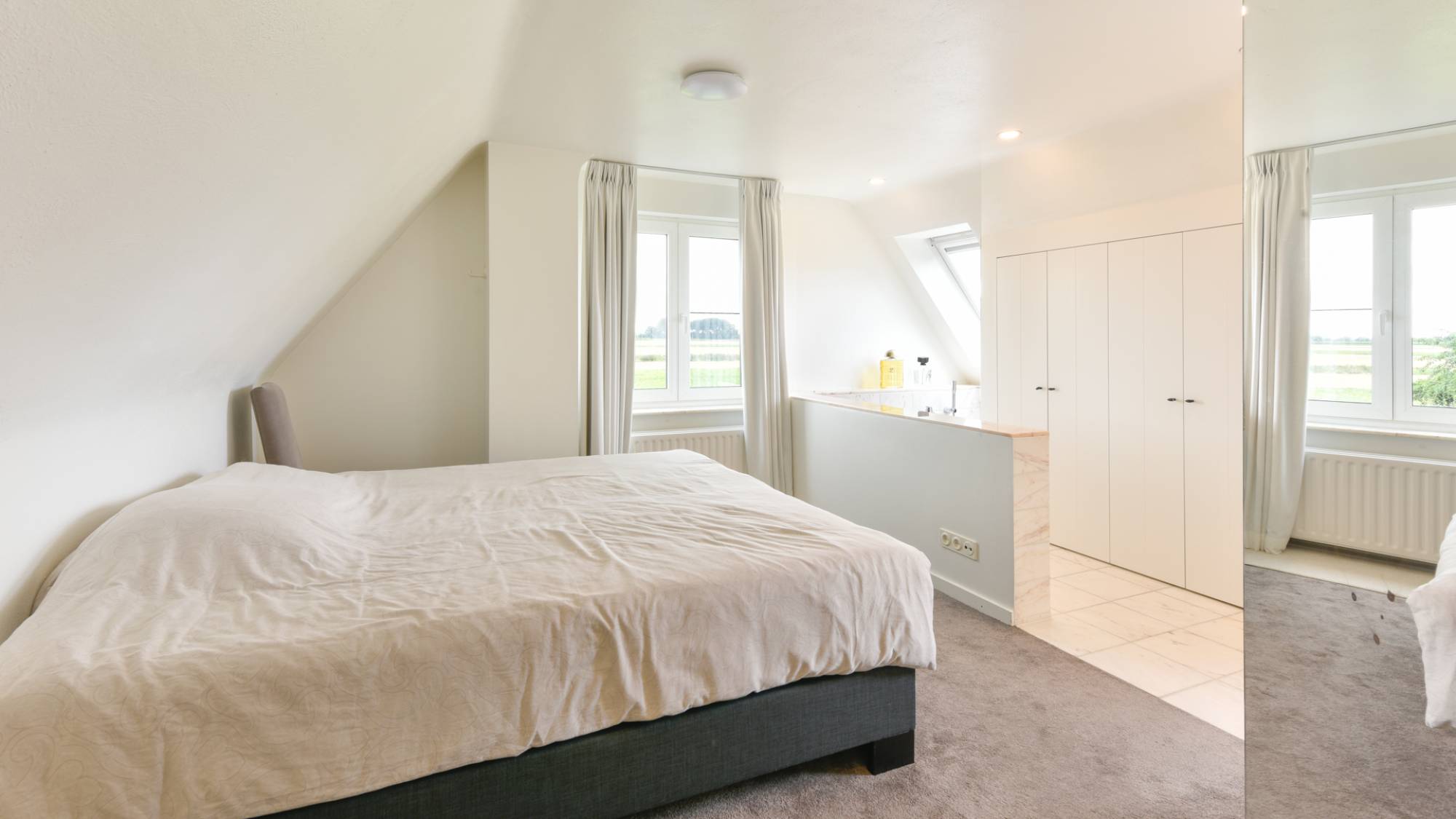 Op de bovenverdieping bevinden er zich twee slaapkamers met telkens ingemaakte kasten en ieder een aansluitende bad-/douchekamer.
