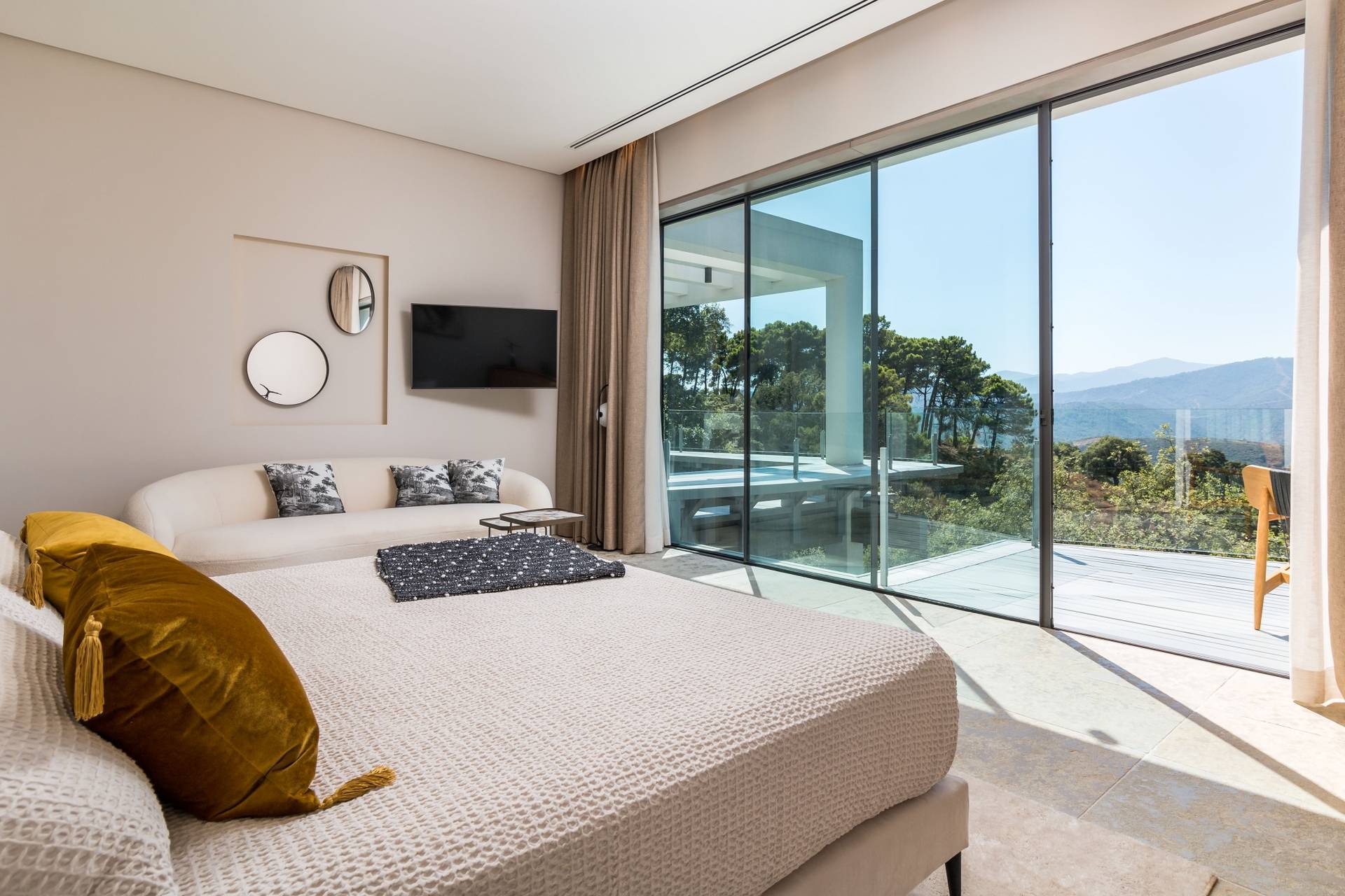 Schitterende terrassen met uitzicht op de bergen, zwembad en jacuzzi. Garage voor 4 auto's. De villa wordt volledig gemeubileerd verkocht.