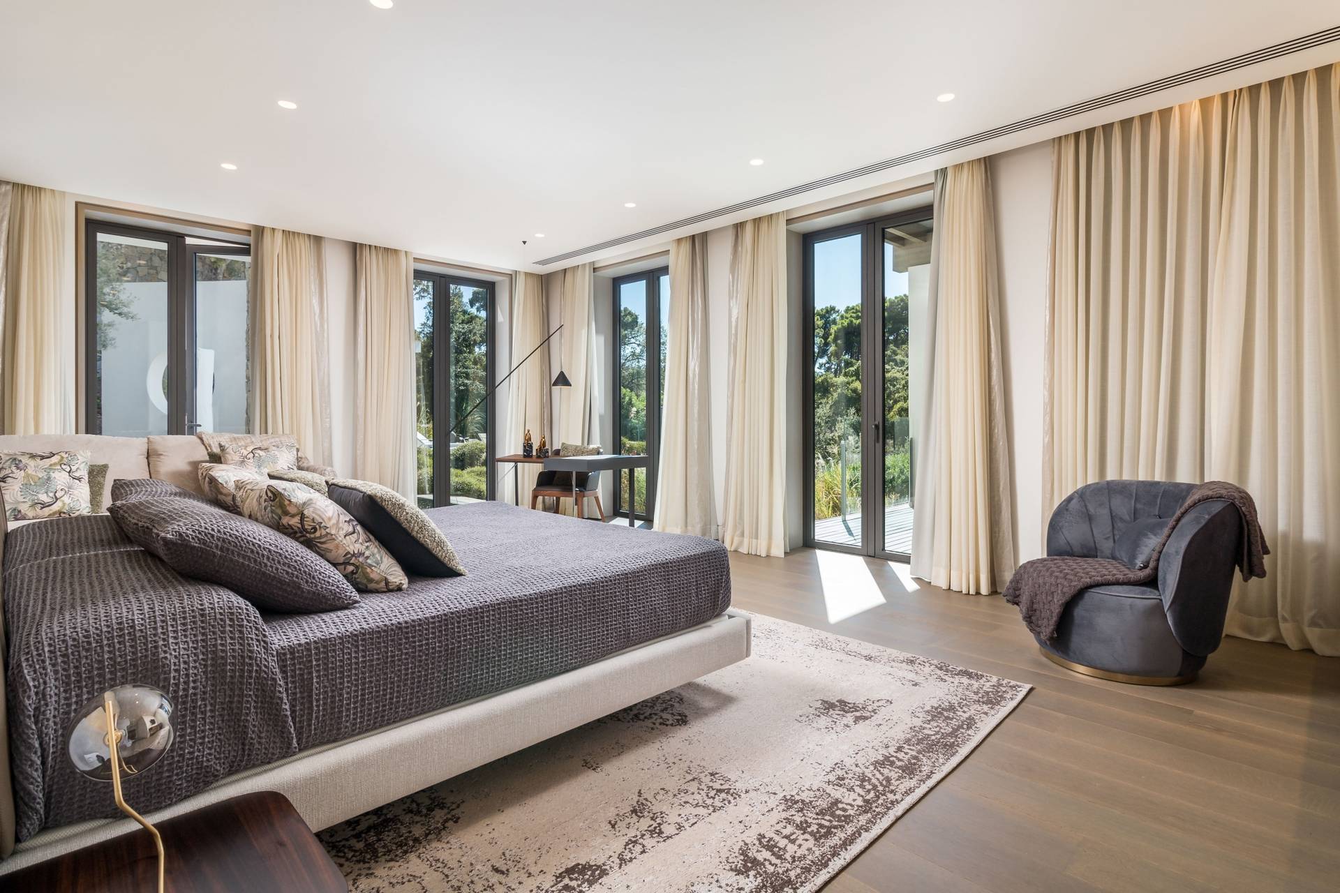 De 750 m2 grote villa heeft 4 slaapkamers met eigen badkamer, een volledig uitgeruste keuken, eetkamer, woonkamer, studeerkamer, speelkamer en thuisbioscoop.