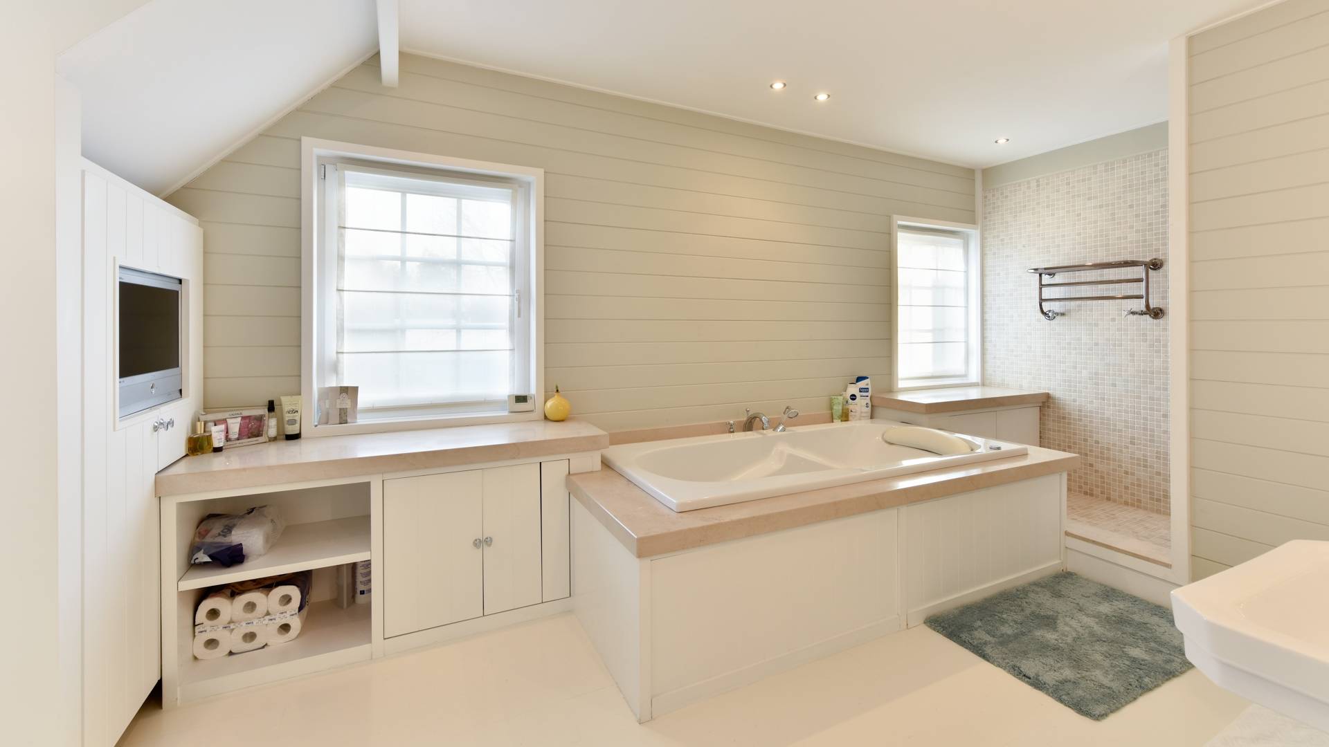 De master bedroom beschikt over een zonnig terras met prachtig zicht op de tuin. Complete badkamer met jacuzzi, inloopdouche, dubbele lavabo en toilet. Dressing. 2e Badkamer met ligbad en lavabo. Afzonderlijk toilet. Technisch lokaal.