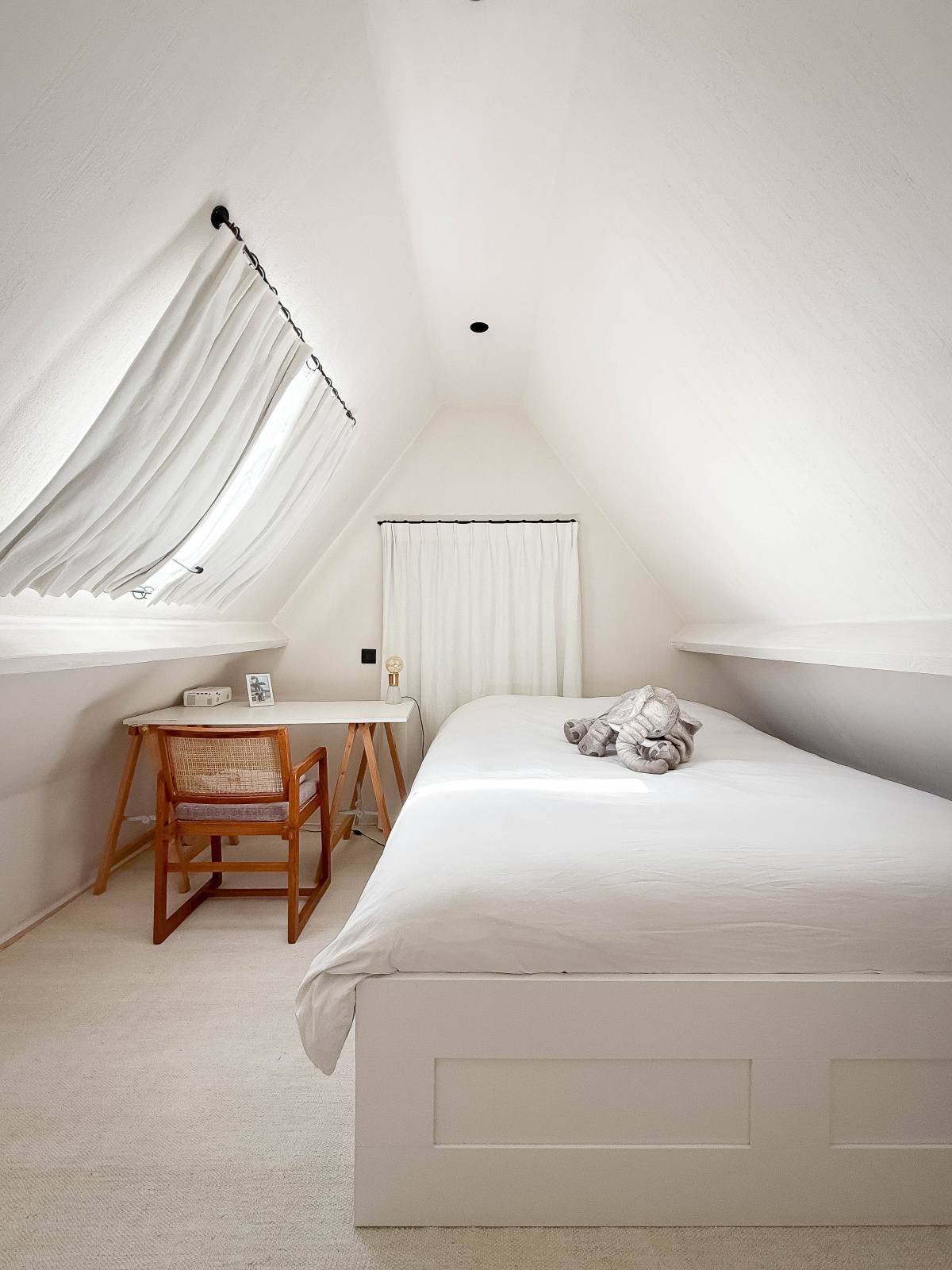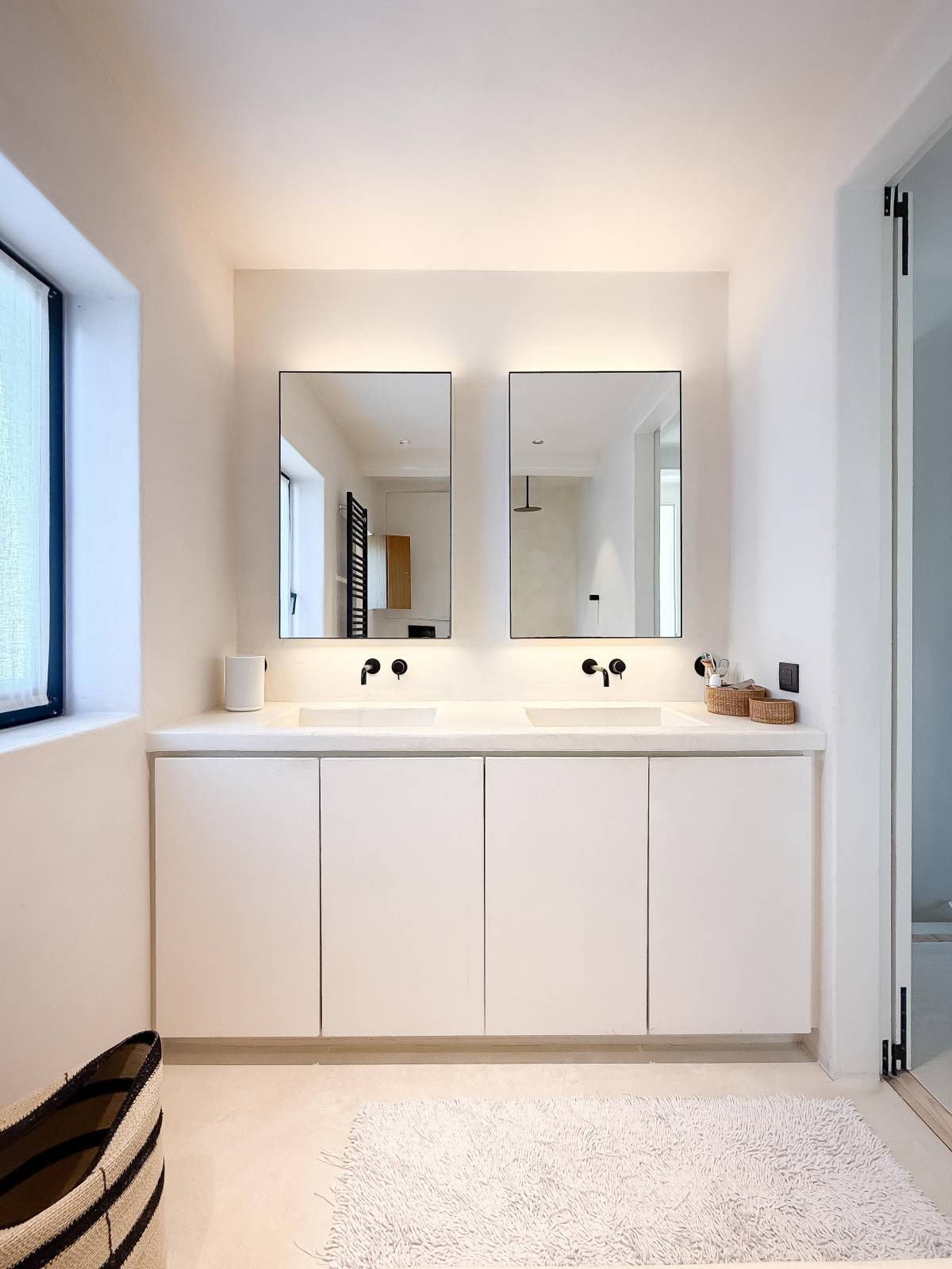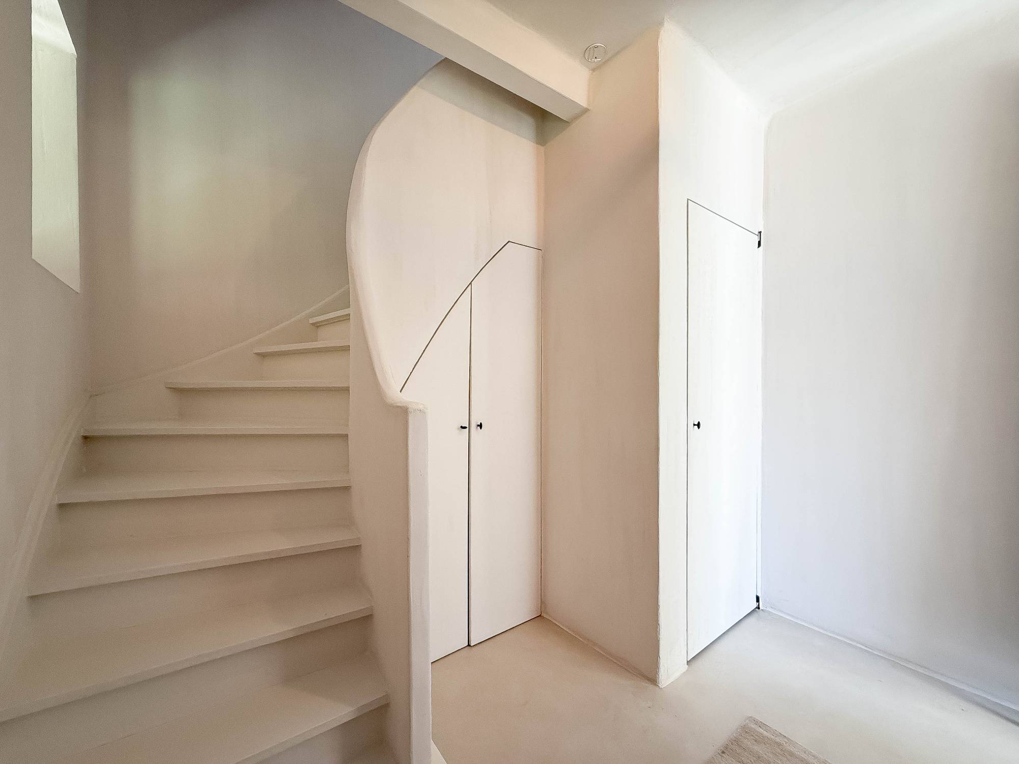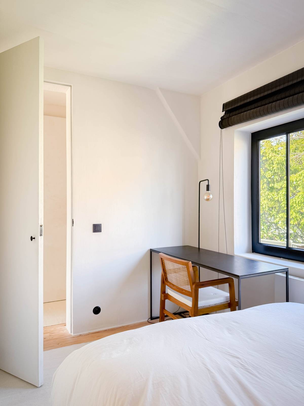 Op de eerste verdieping bevinden zich drie volwaardige slaapkamers. De stijlvolle badkamer beschikt over een dubbele wastafel, een ligbad/douche en een toilet, allemaal afgewerkt in onderhoudsvriendelijke beton ciré. Eén van de slaapkamers geniet bovendien van een eigen en suite douchekamer, ideaal voor gasten of tieners. De tweede verdieping biedt ruimte aan een vierde slaapkamer, voorzien van ingemaakte kasten.