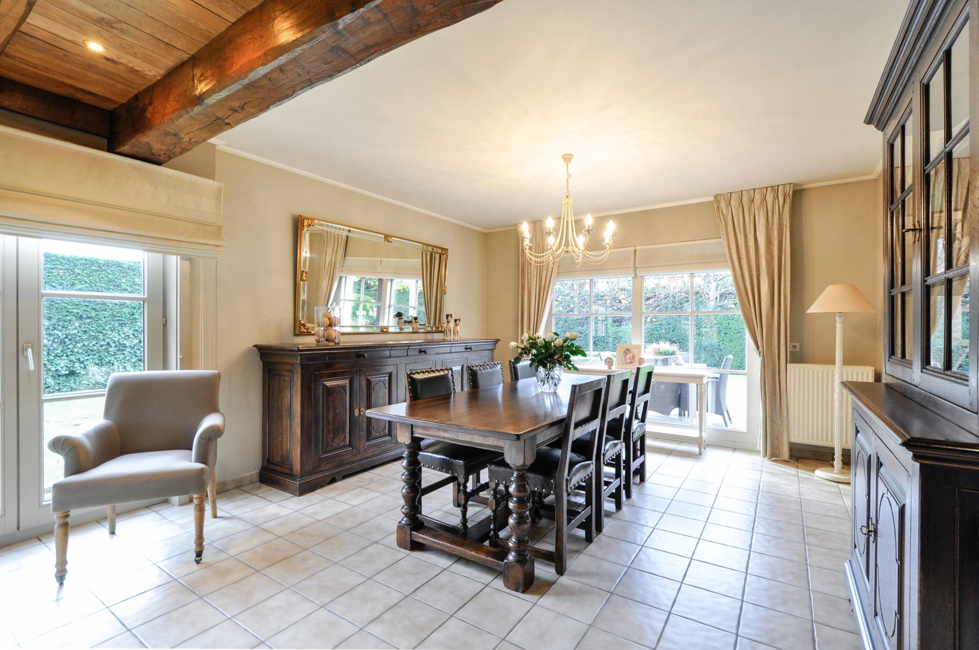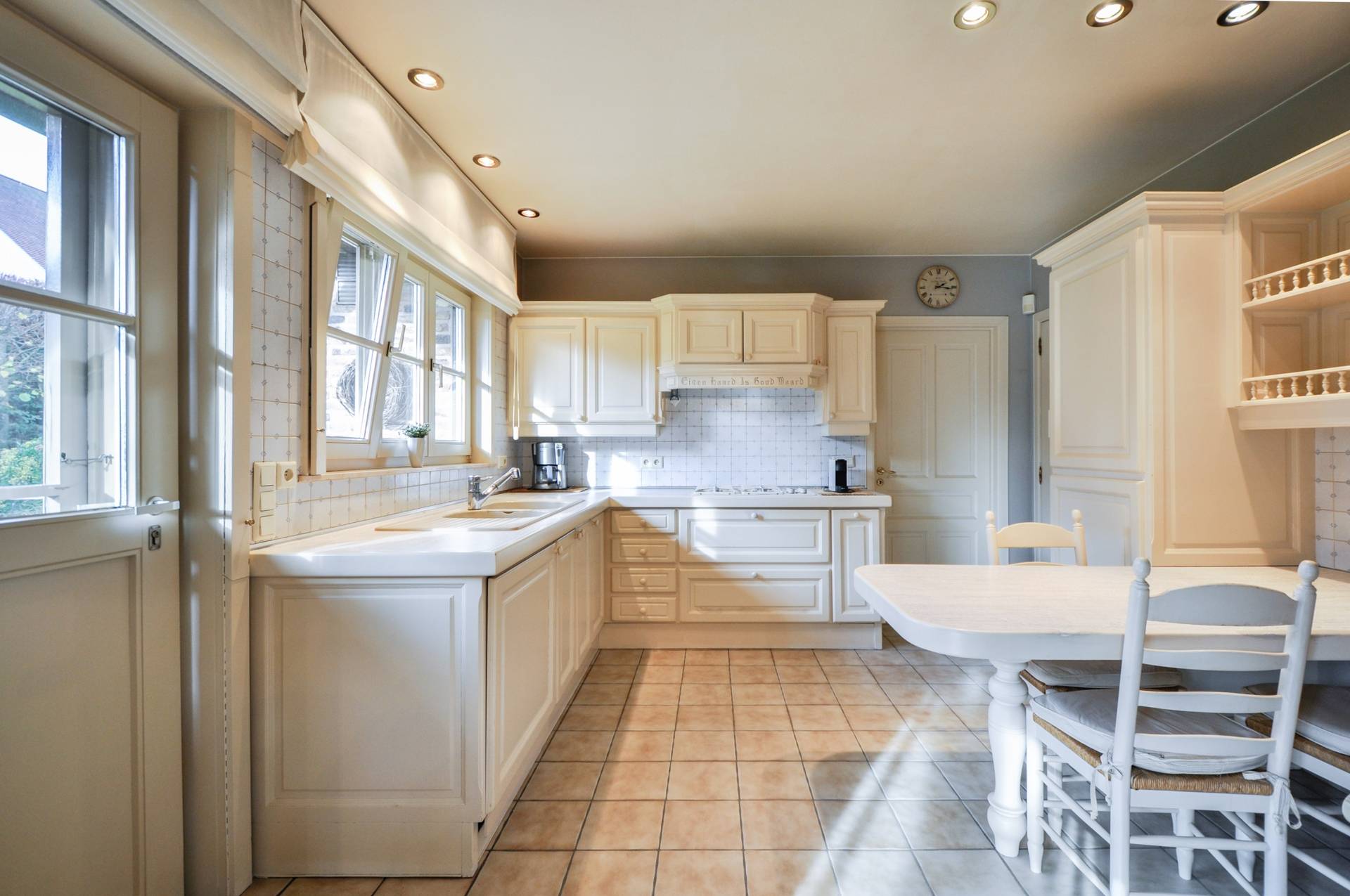 Samenstelling: Royale inkomhall met gastentoilet en vestiaire. Aangename woonkamer met open haard. Gezellige eetkamer die uitgeeft op een perfect georiënteerde, en goed onderhouden tuin. Lichtrijke, afzonderlijke keuken met ontbijthoek. Aansluitend ruime bijkeuken/wasplaats.