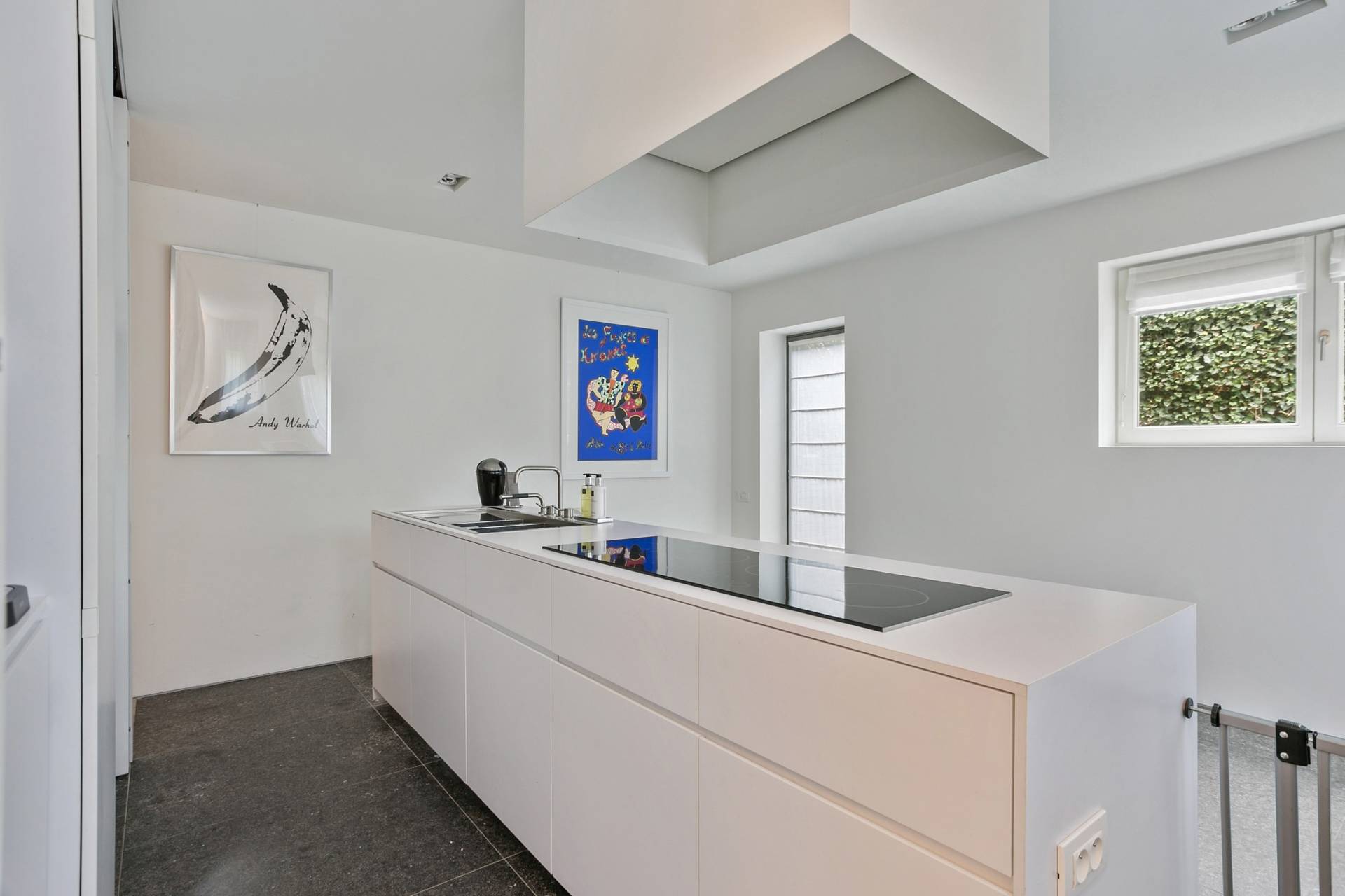 Lichtrijke woonkamer met aansluitend eetkamer. Luxueus ingerichte keuken, voorzien van alle moderne comfort.