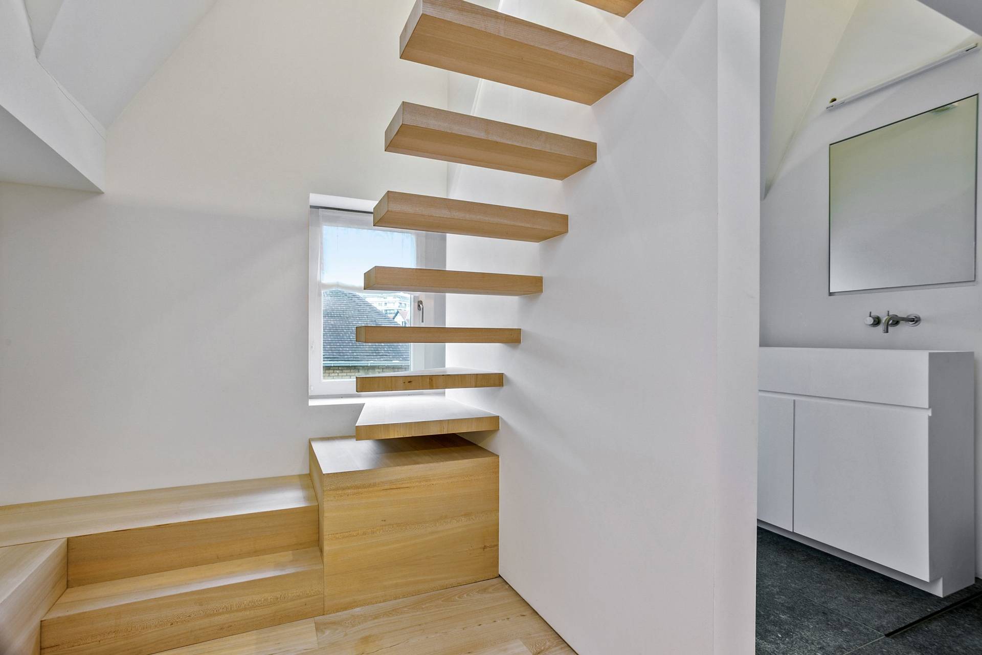Garage voor 1 auto en outdoor parking. In de kelderverdieping bevindt er zich een expositieruimte en een berging.